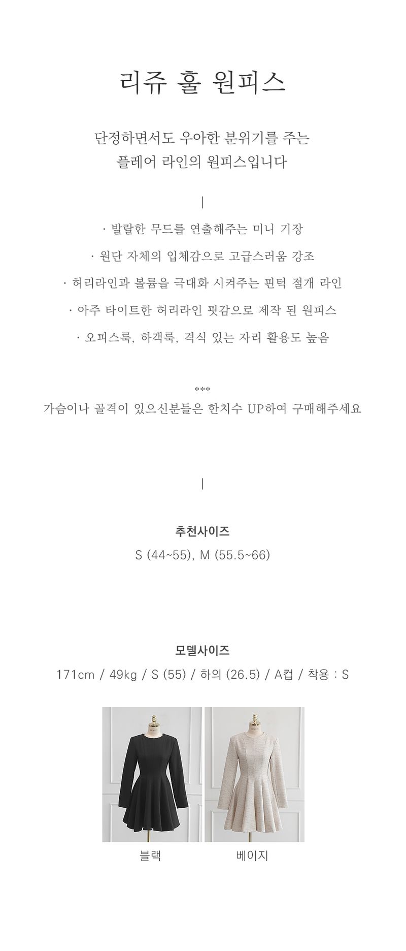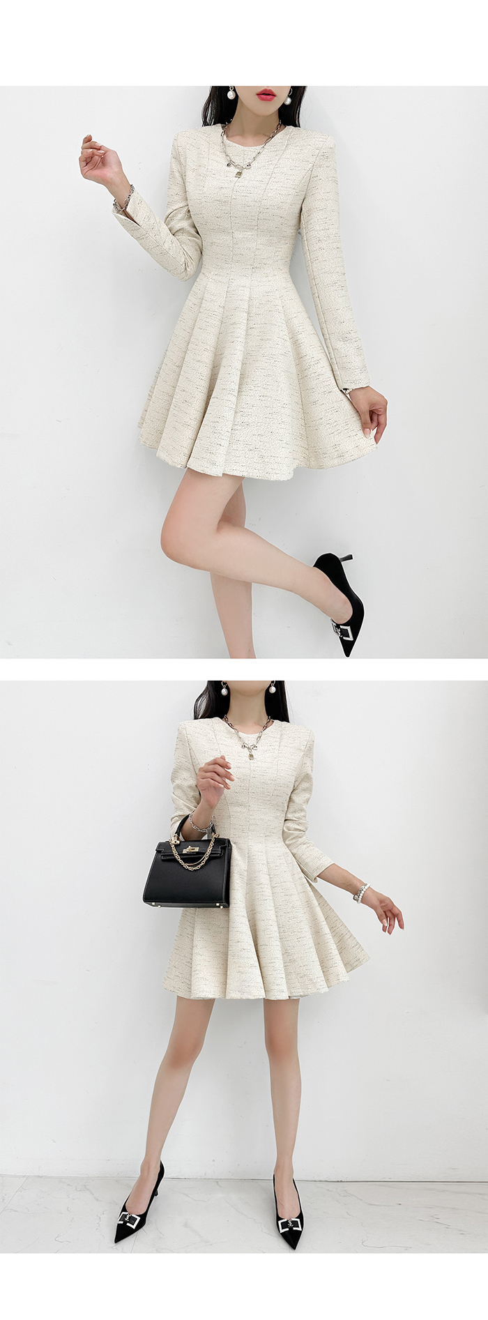 韓國製好鬼Elegant連身短裙(黑/米色)