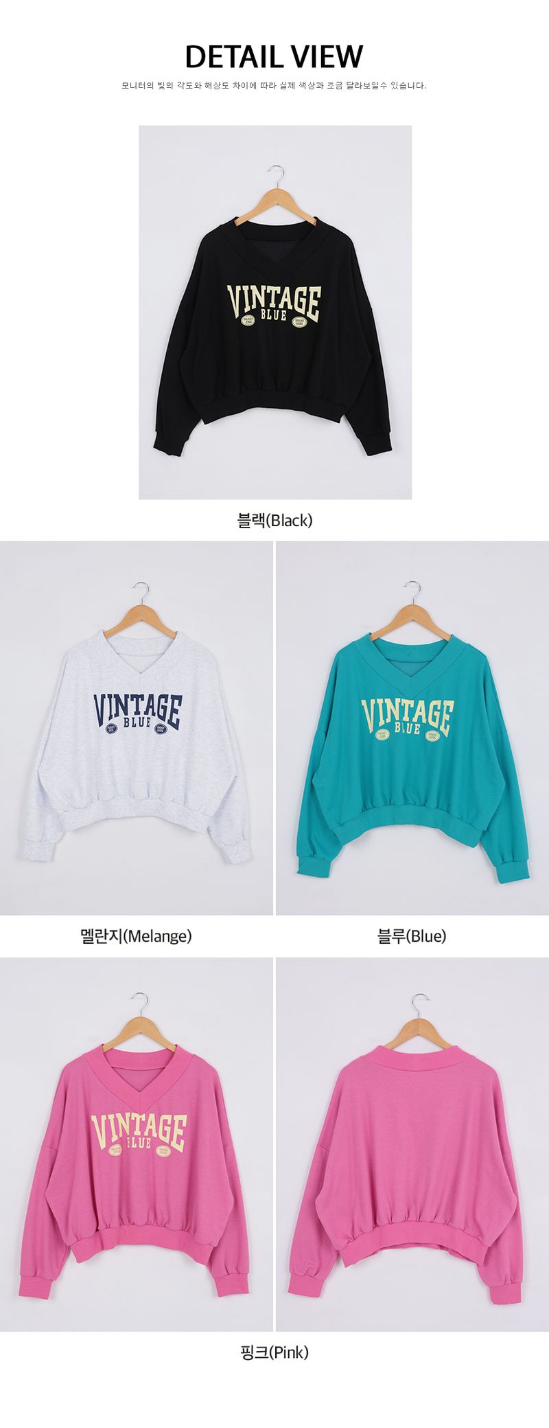 韓國製V領衞衣(黑/灰白/藍/粉紅)