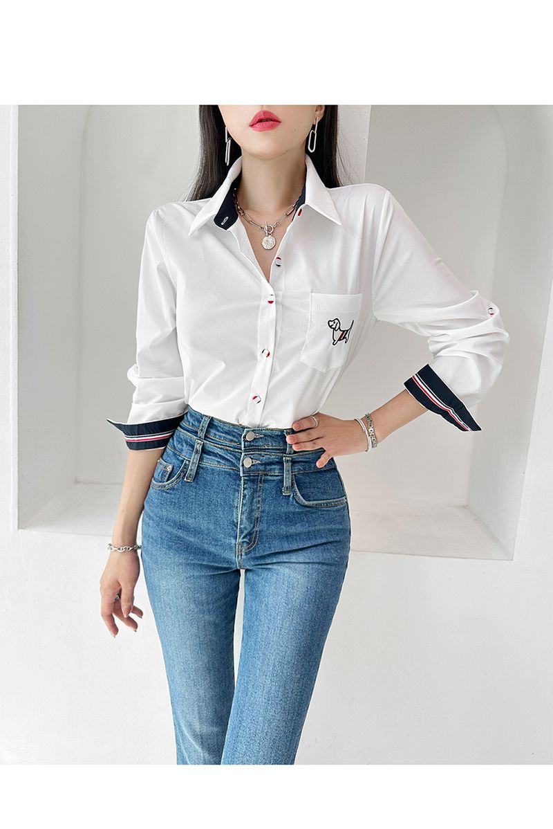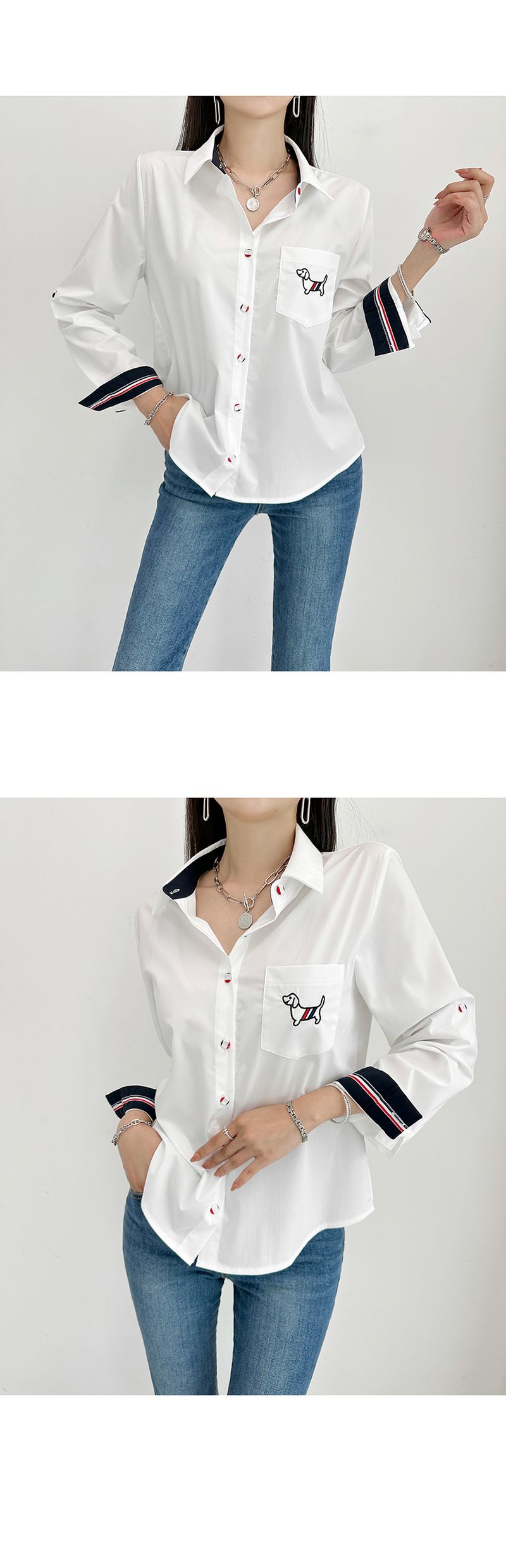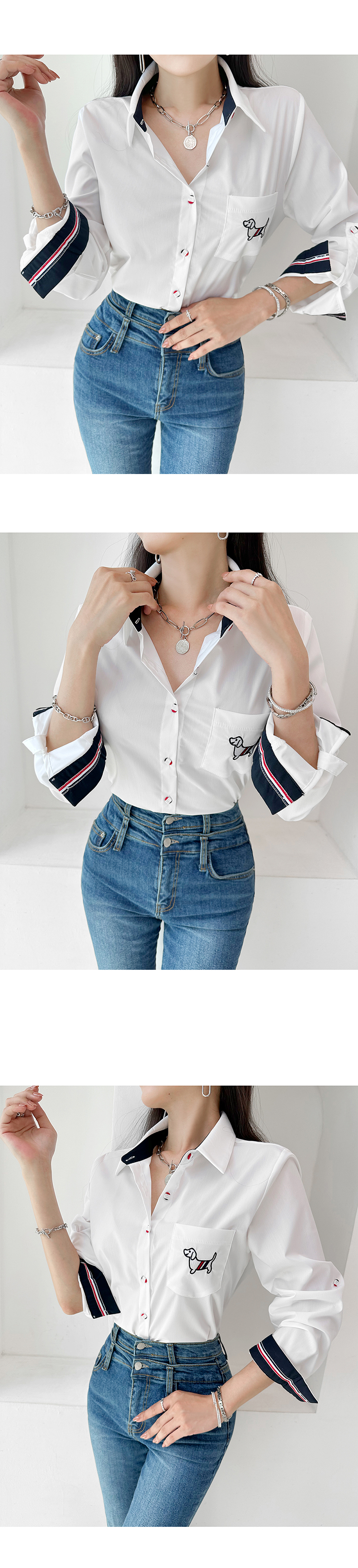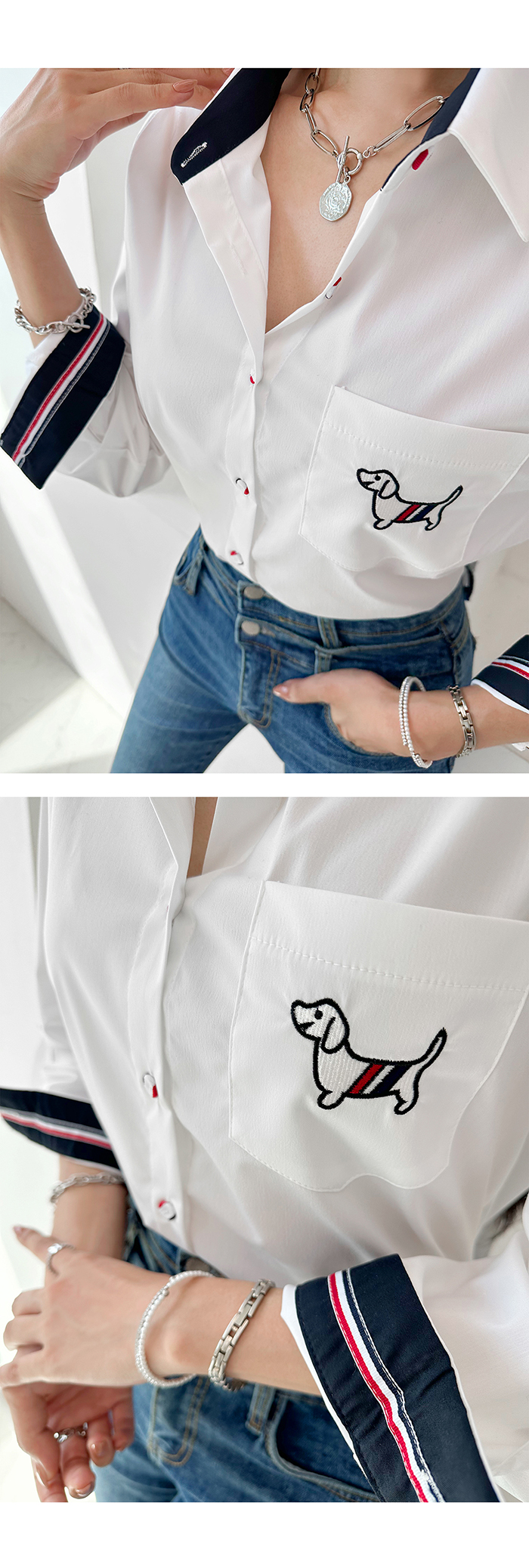 韓國製狗仔刺繡恤衫(藍/白/間條)