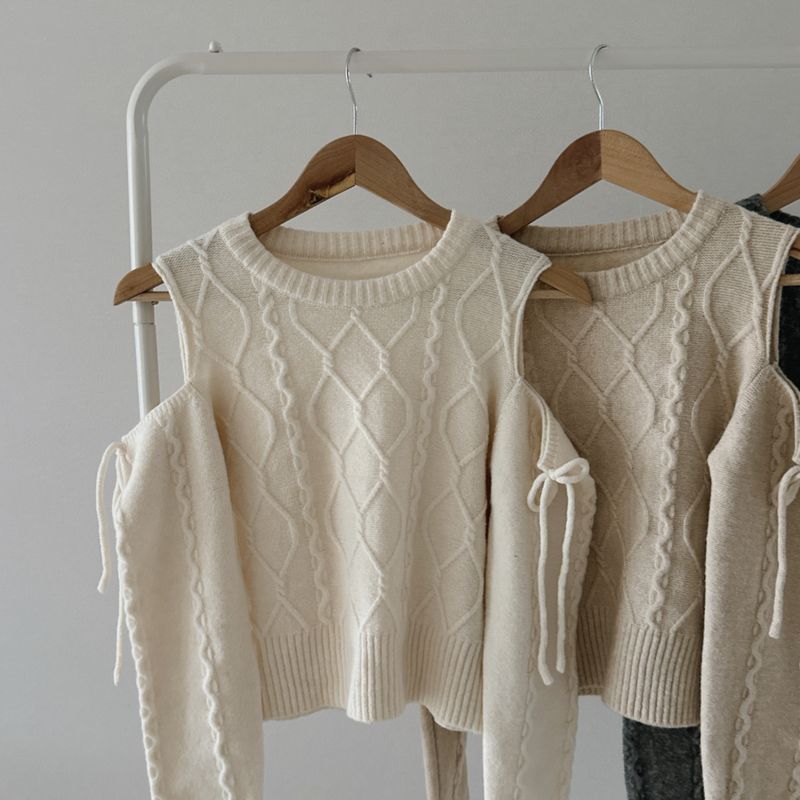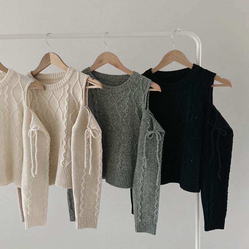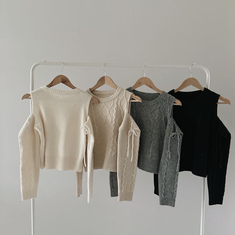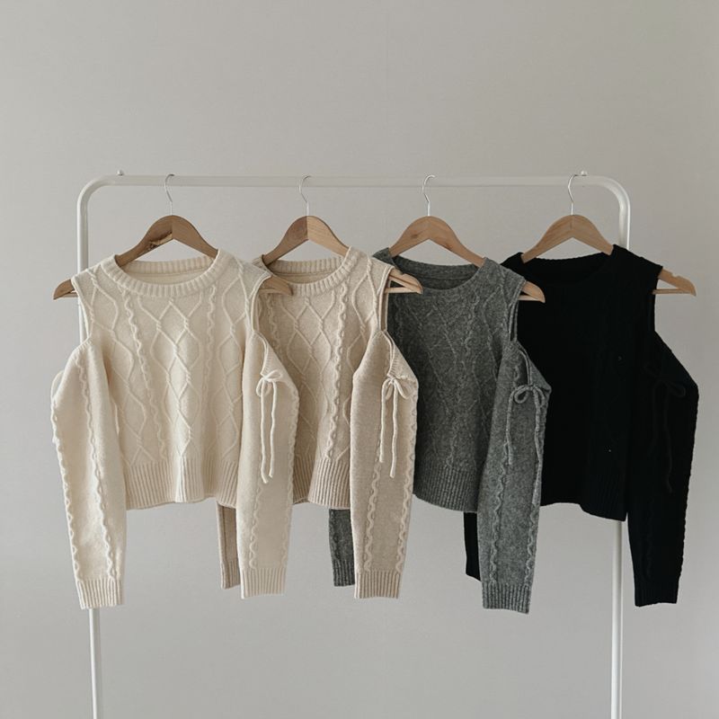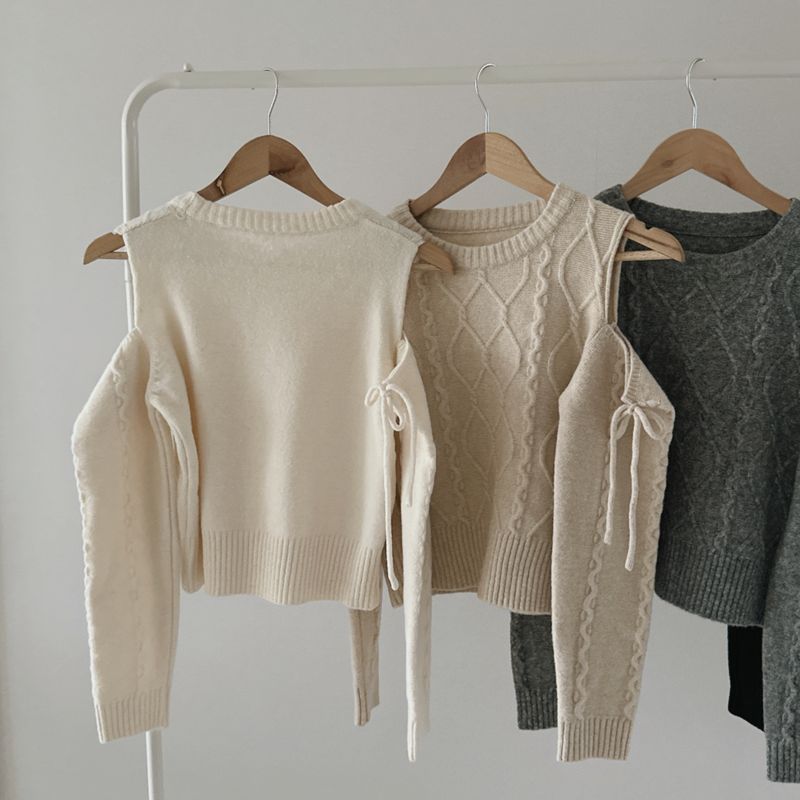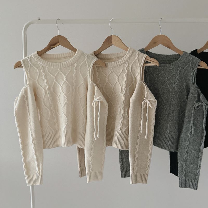 韓國製少少露肩針織衫(黑/白/米/灰)