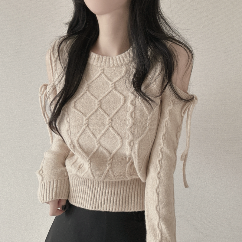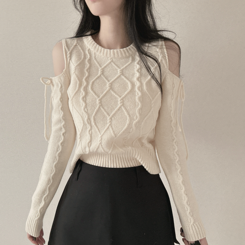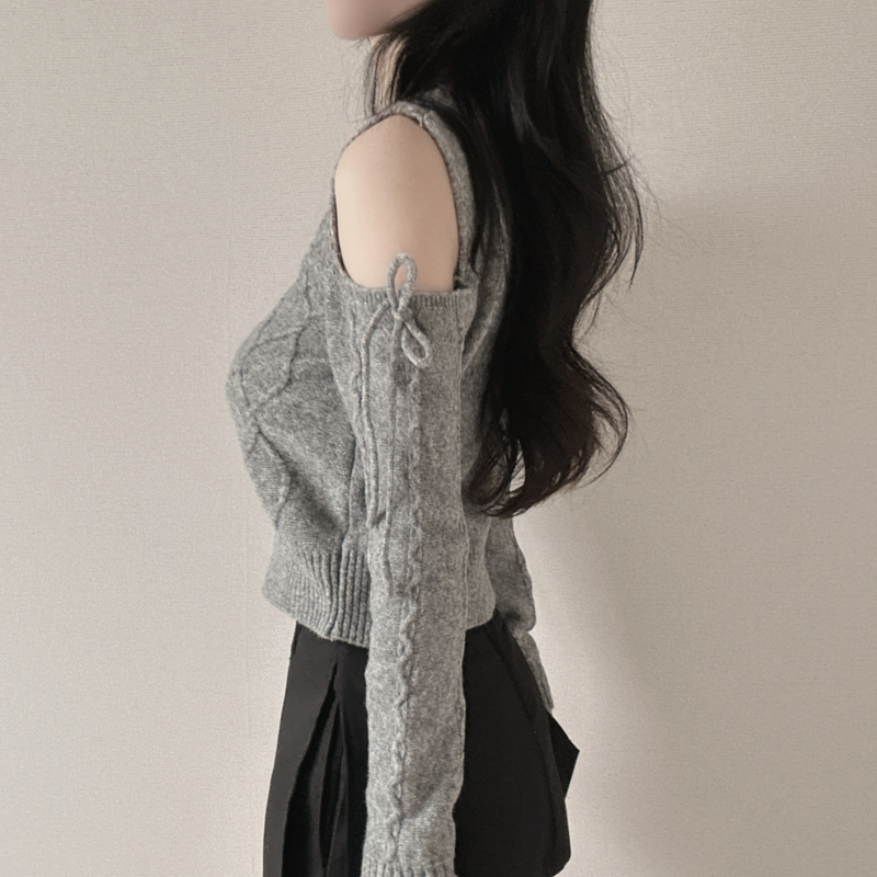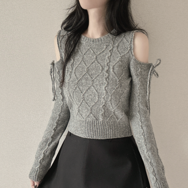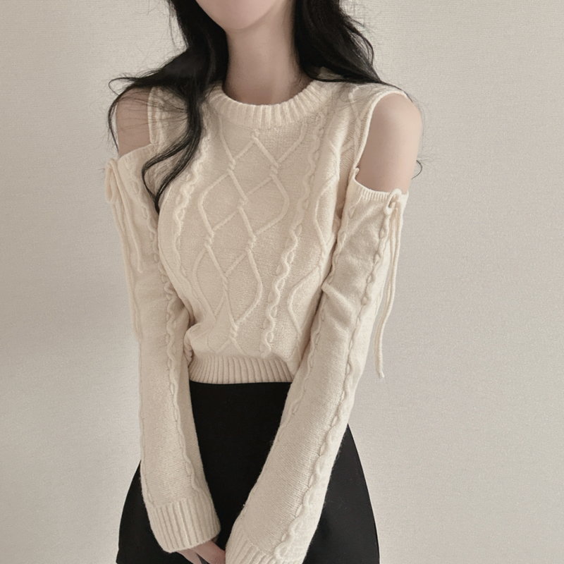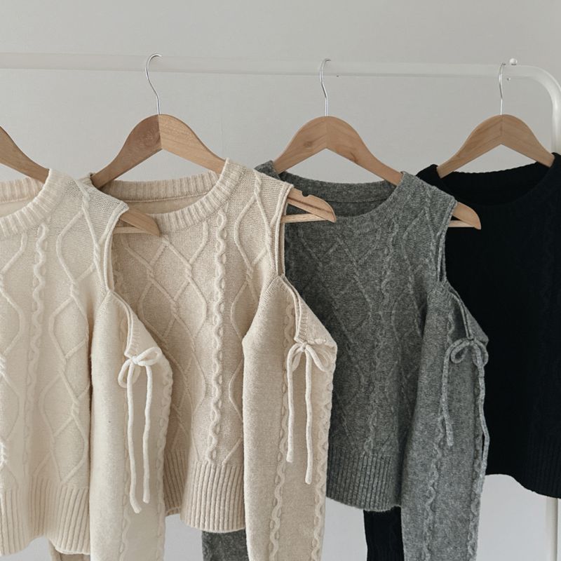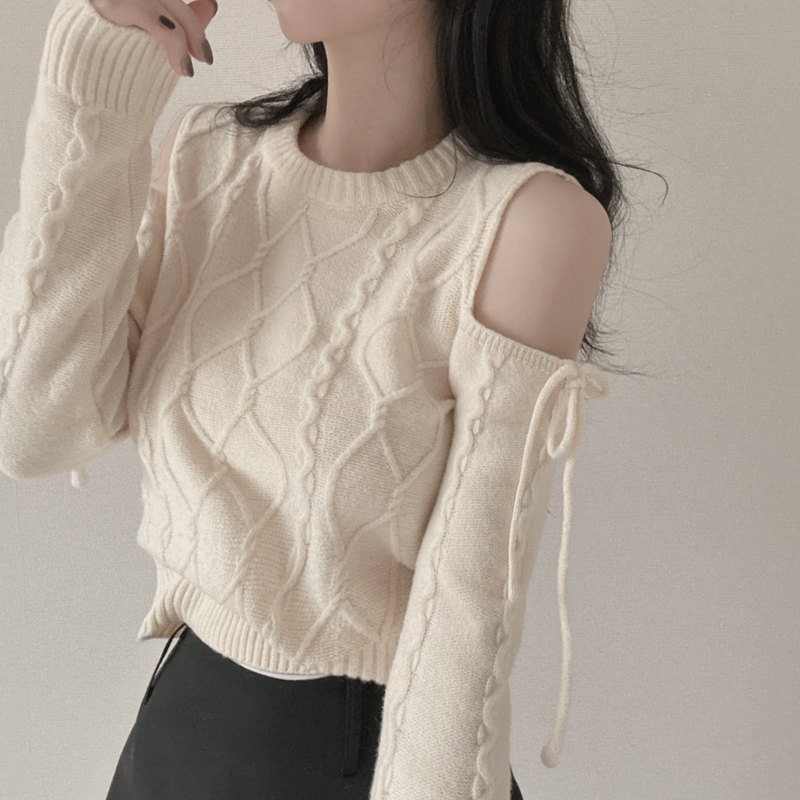 韓國製少少露肩針織衫(黑/白/米/灰)