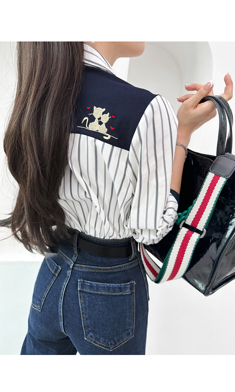 ✅特色恤衫,前面係搭帶設計,搭帶上面仲有"Cat"字刺繡✅後面膊頭位亦有貓貓制繡,標示你嘅貓奴身份