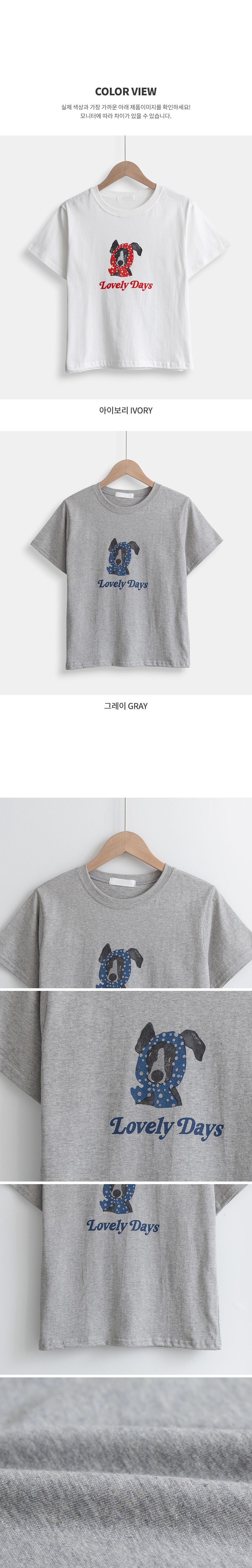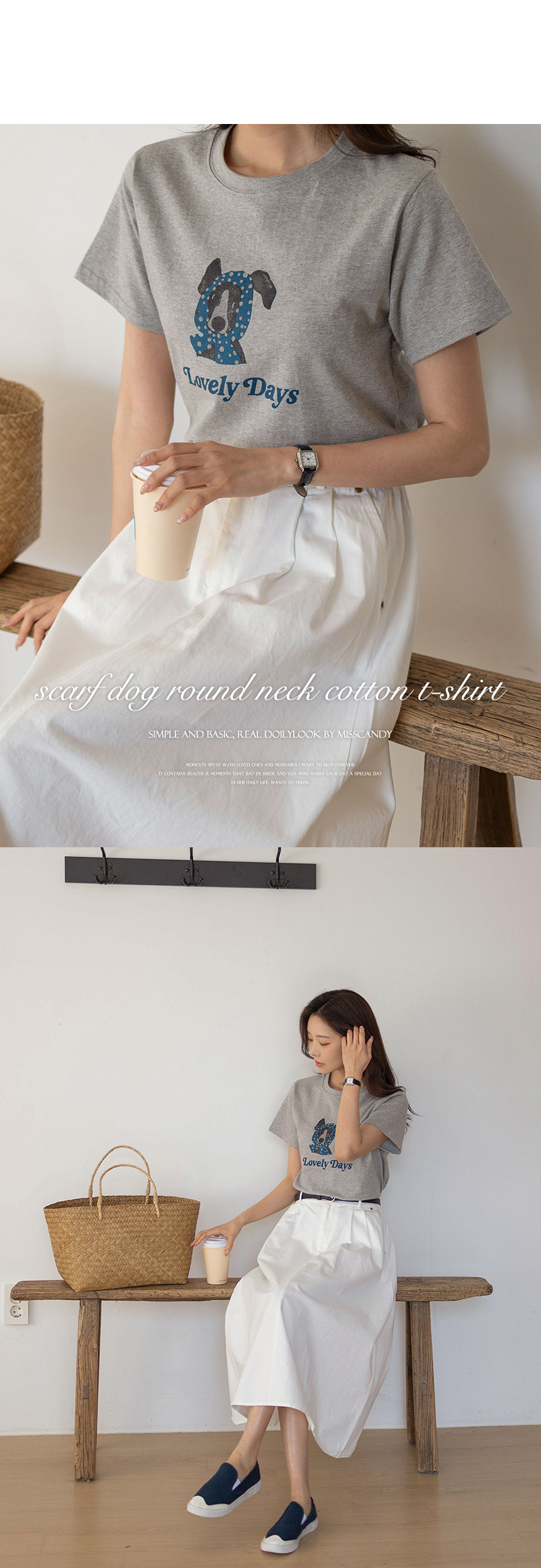 韓國製狗狗圖案圓領棉質T恤(灰/白)