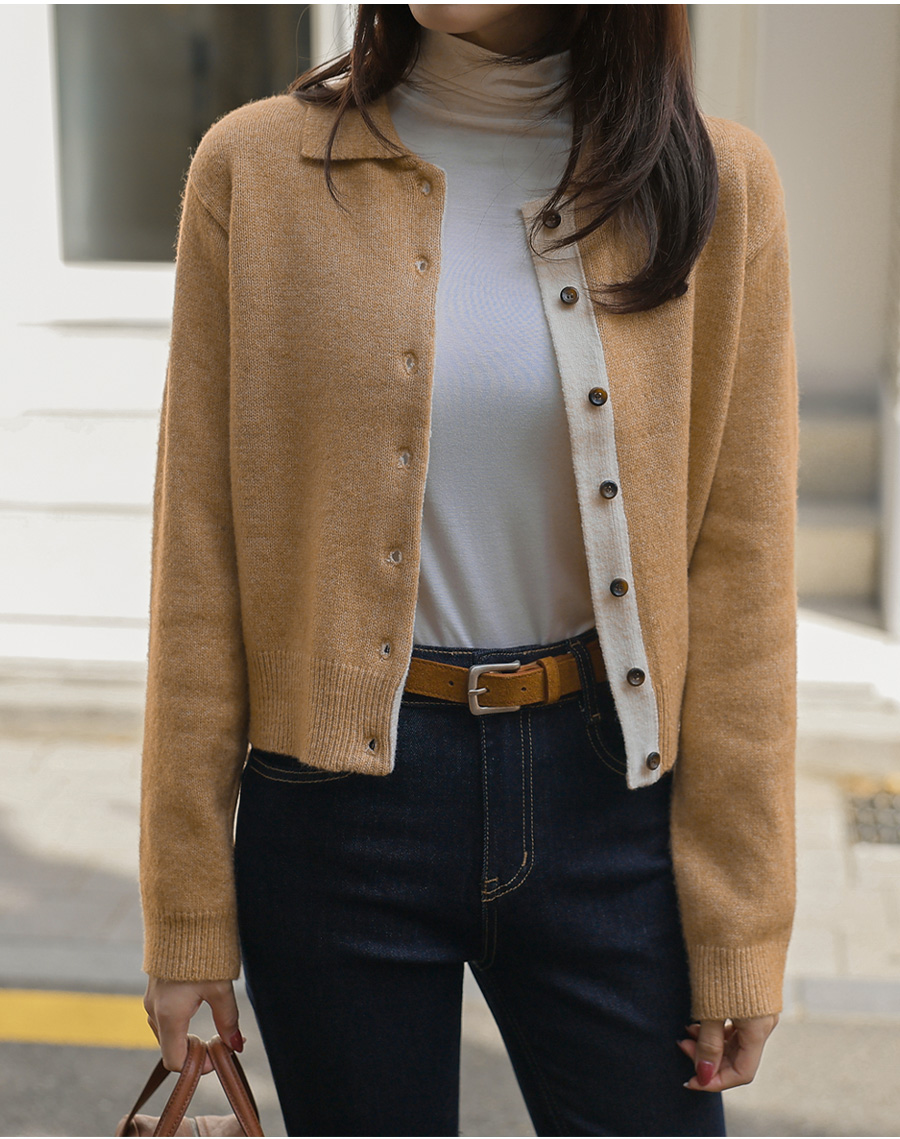 韓國製有領斯文羊毛外套(白/米/灰/啡/藍)