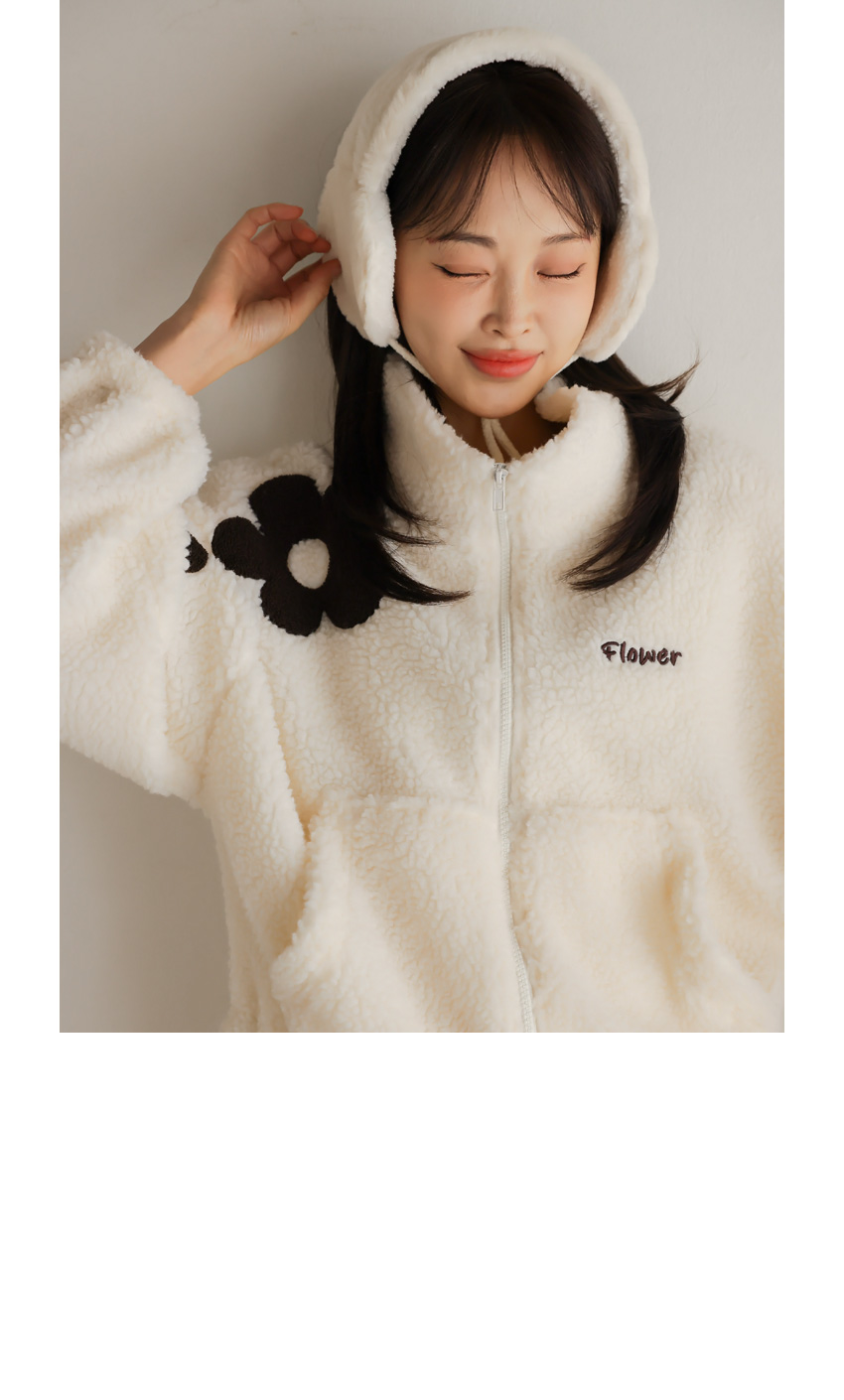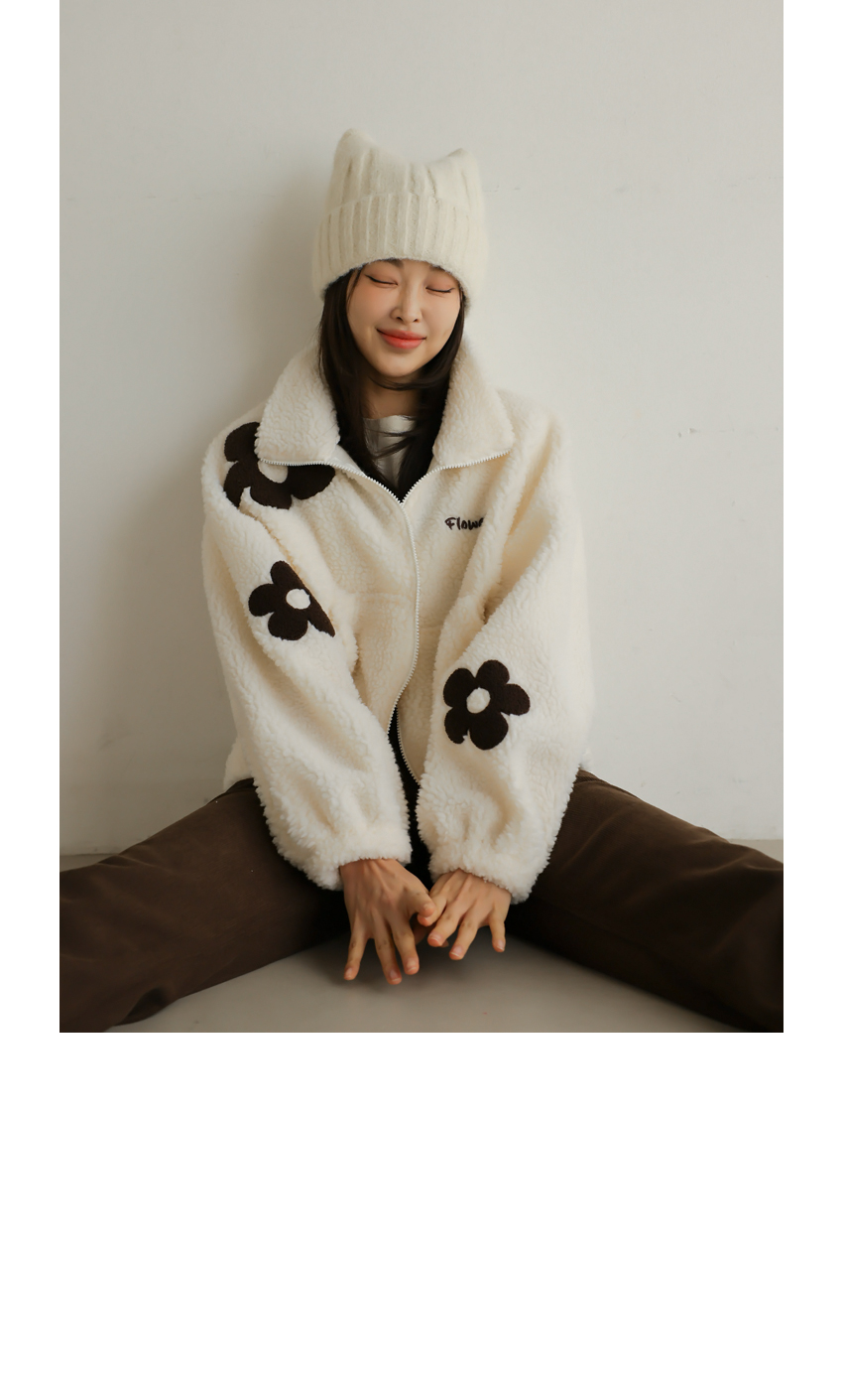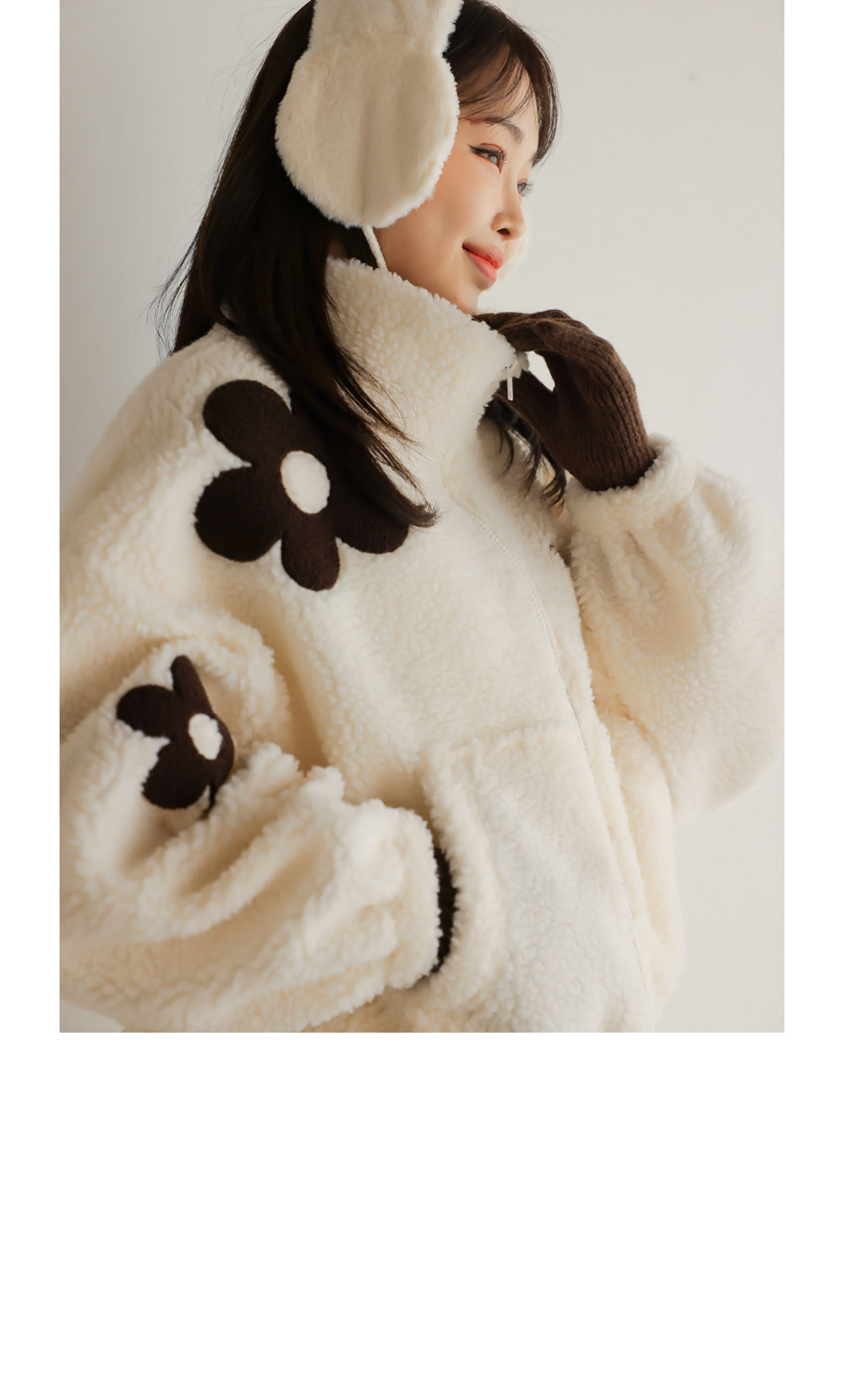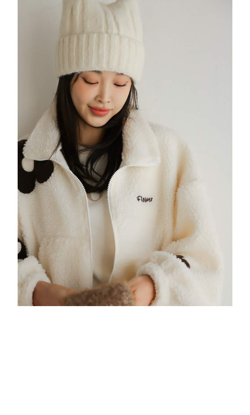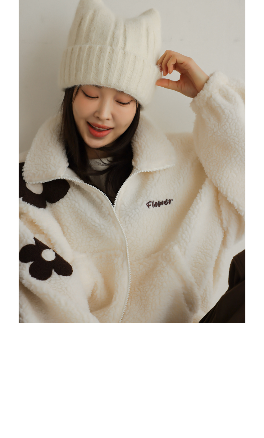韓國製大花花圖案Fleece拉鍊外套