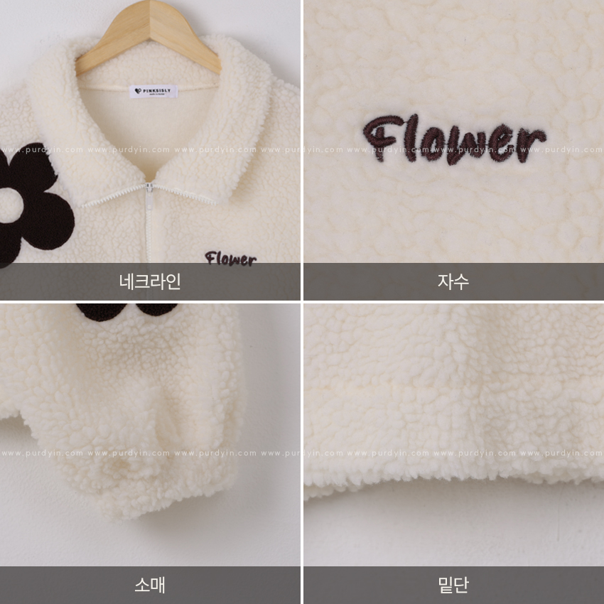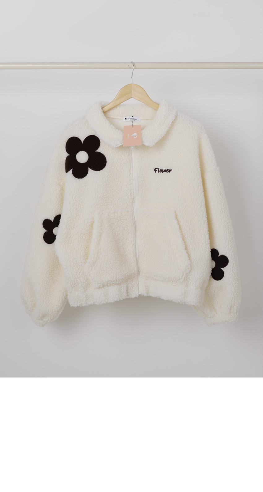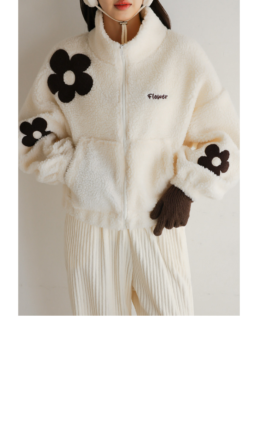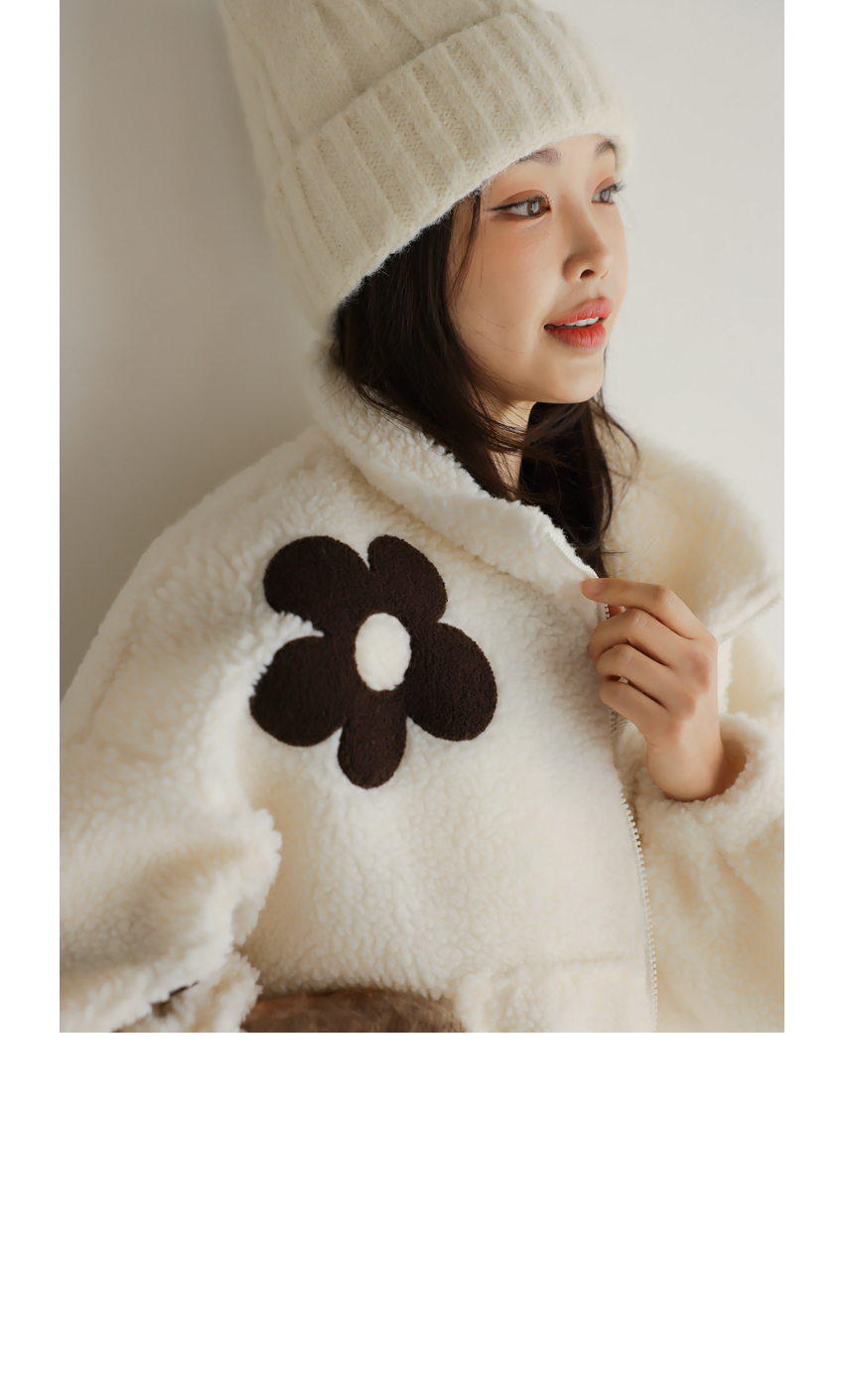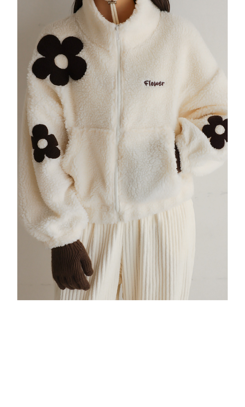 韓國製大花花圖案Fleece拉鍊外套