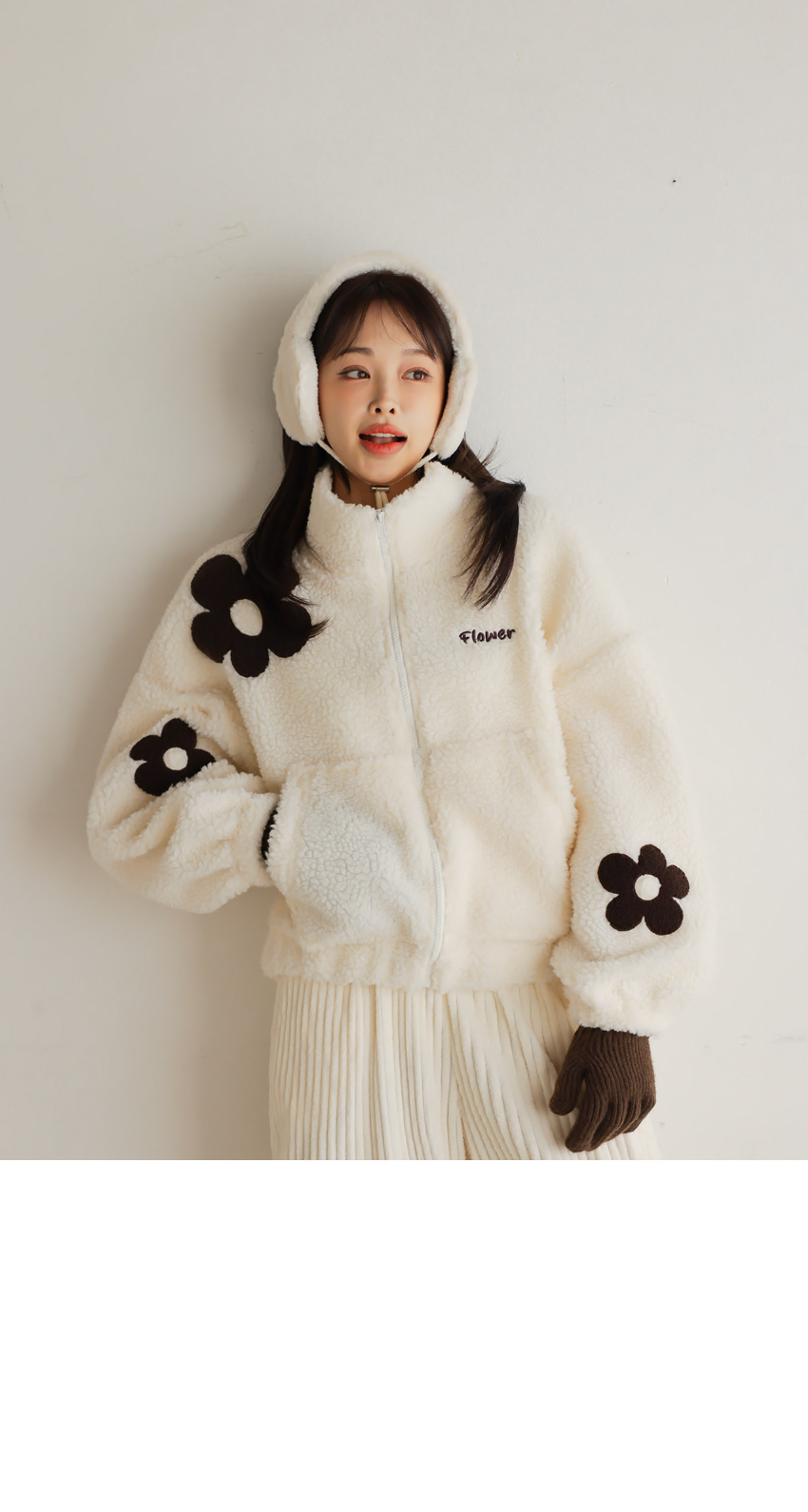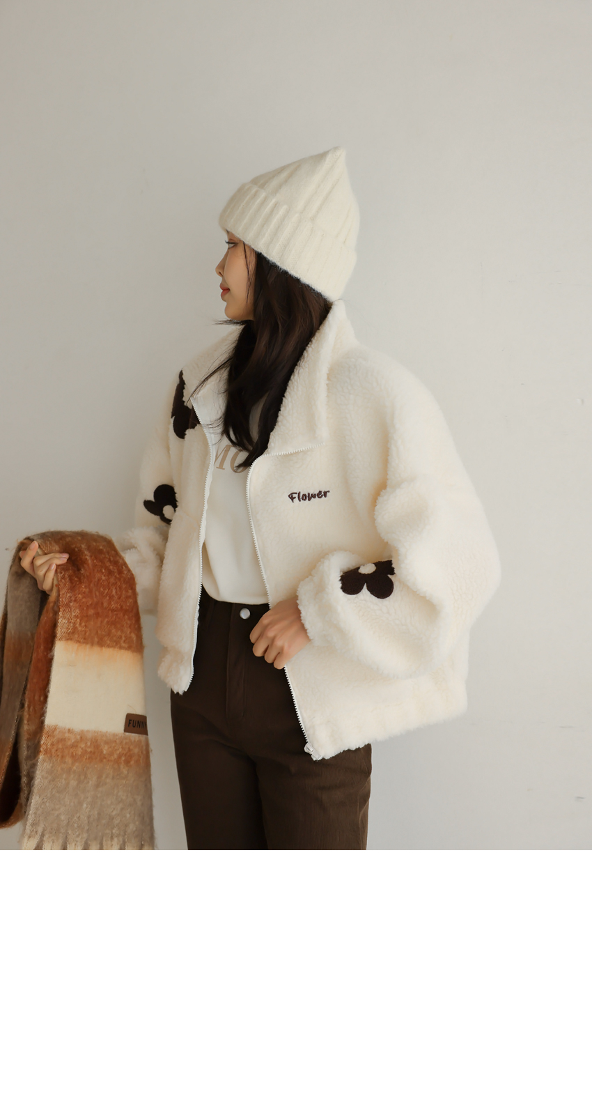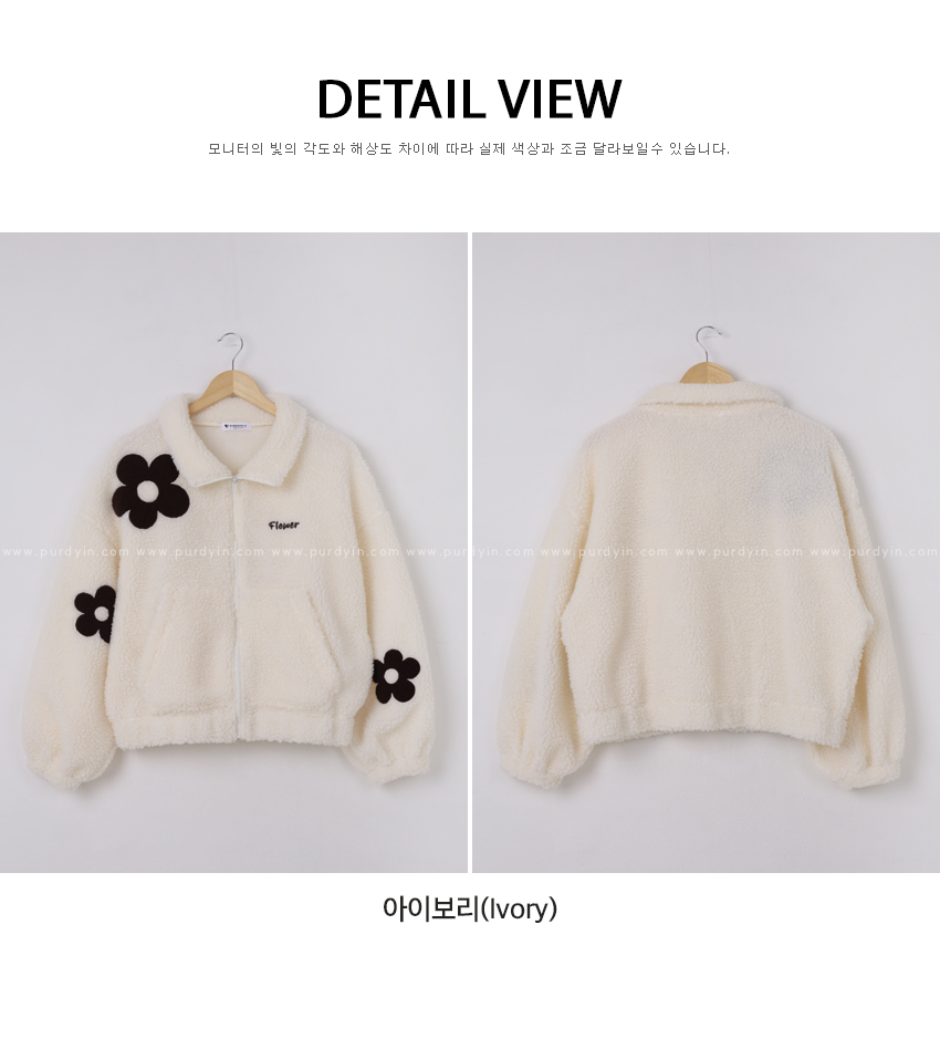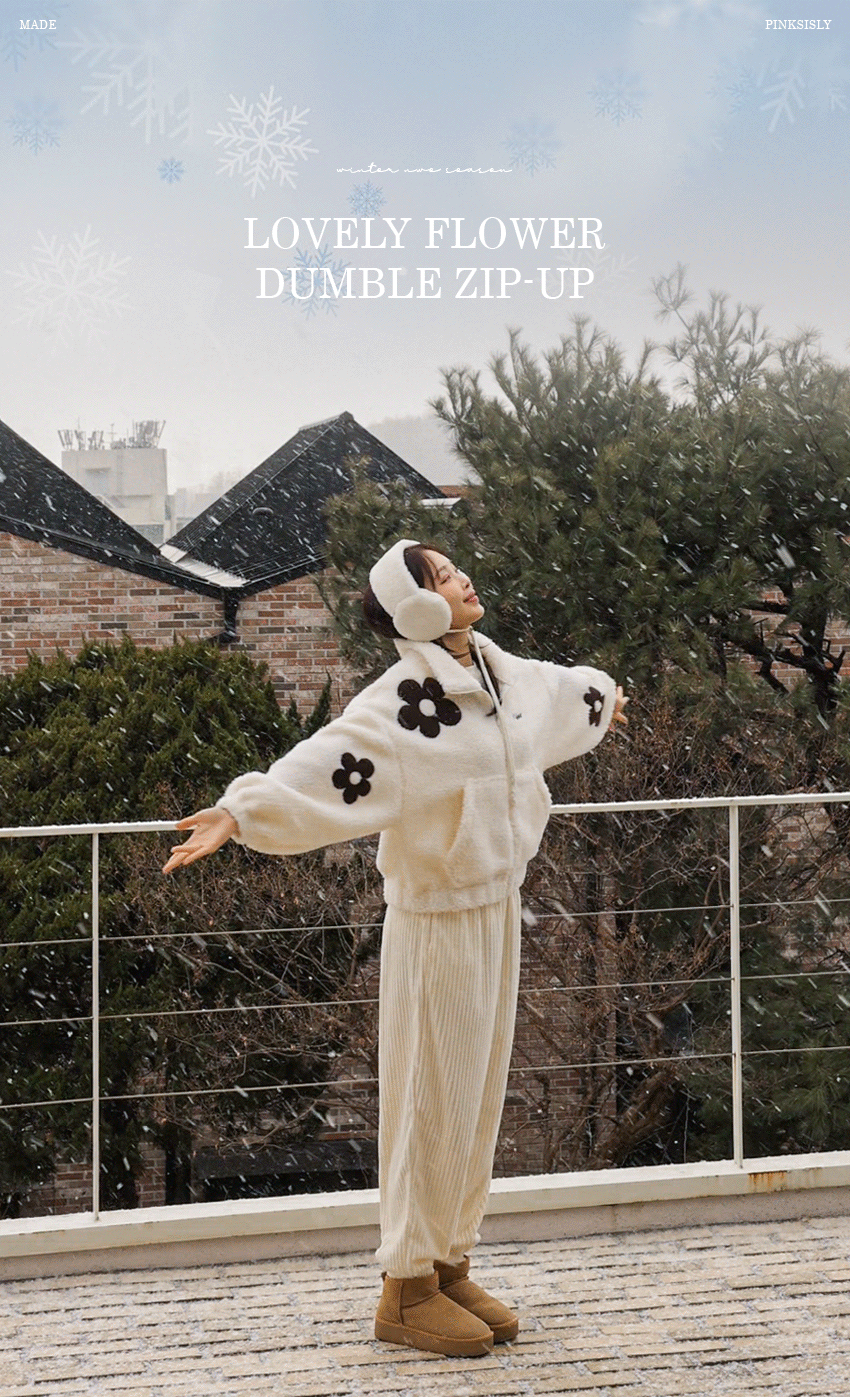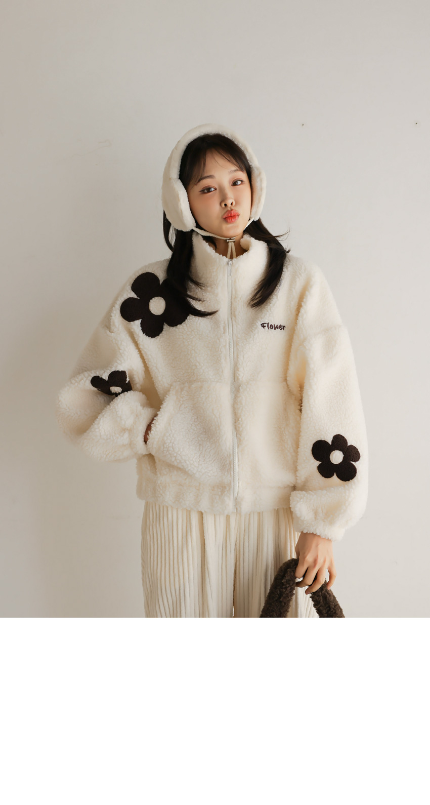 韓國製大花花圖案Fleece拉鍊外套