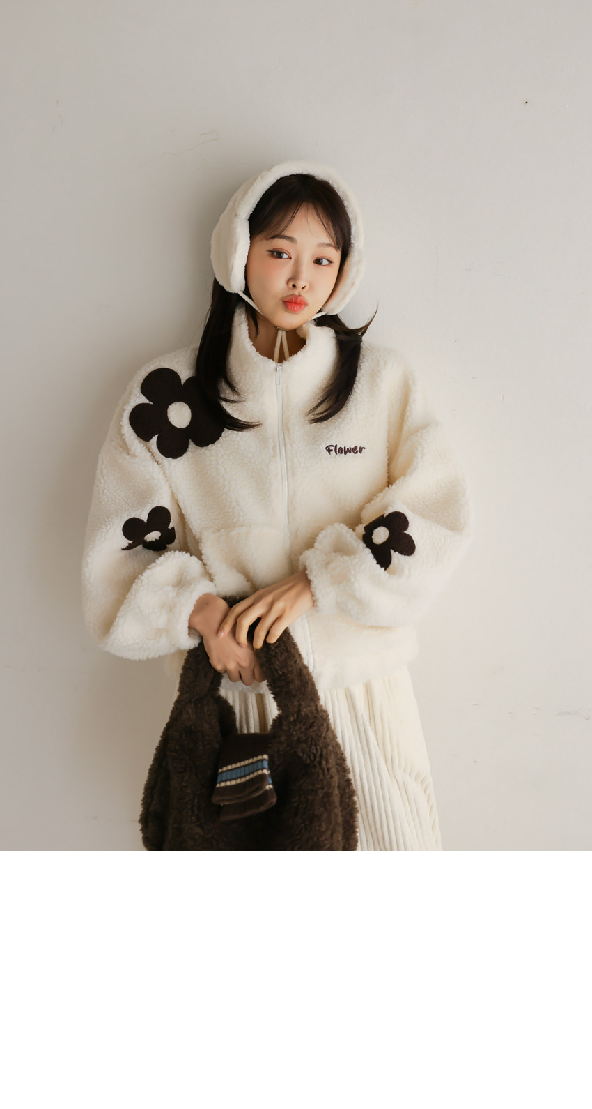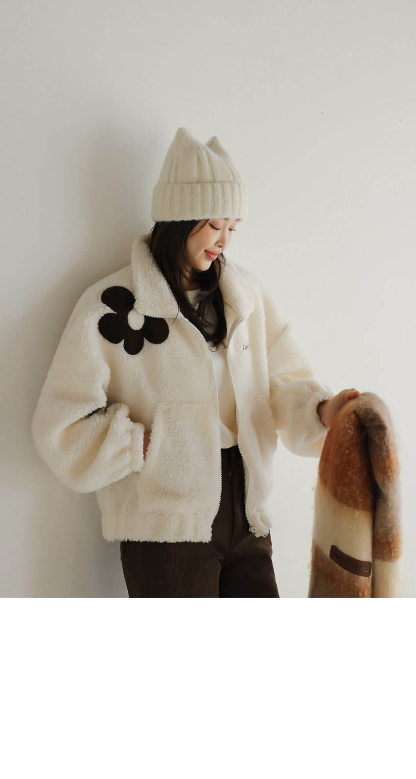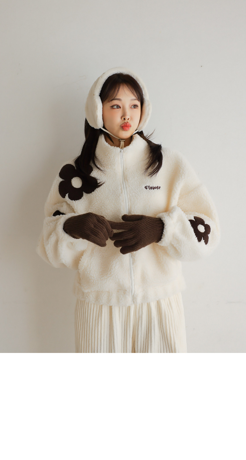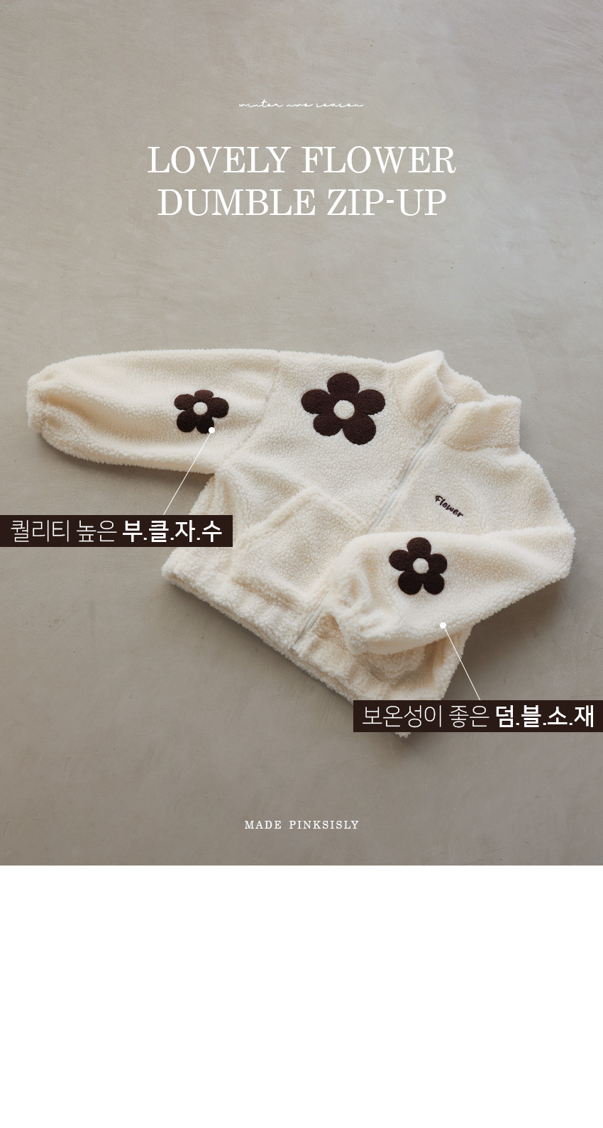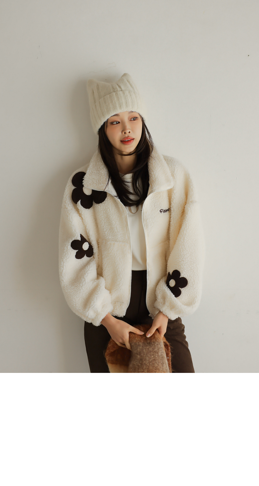 韓國製大花花圖案Fleece拉鍊外套