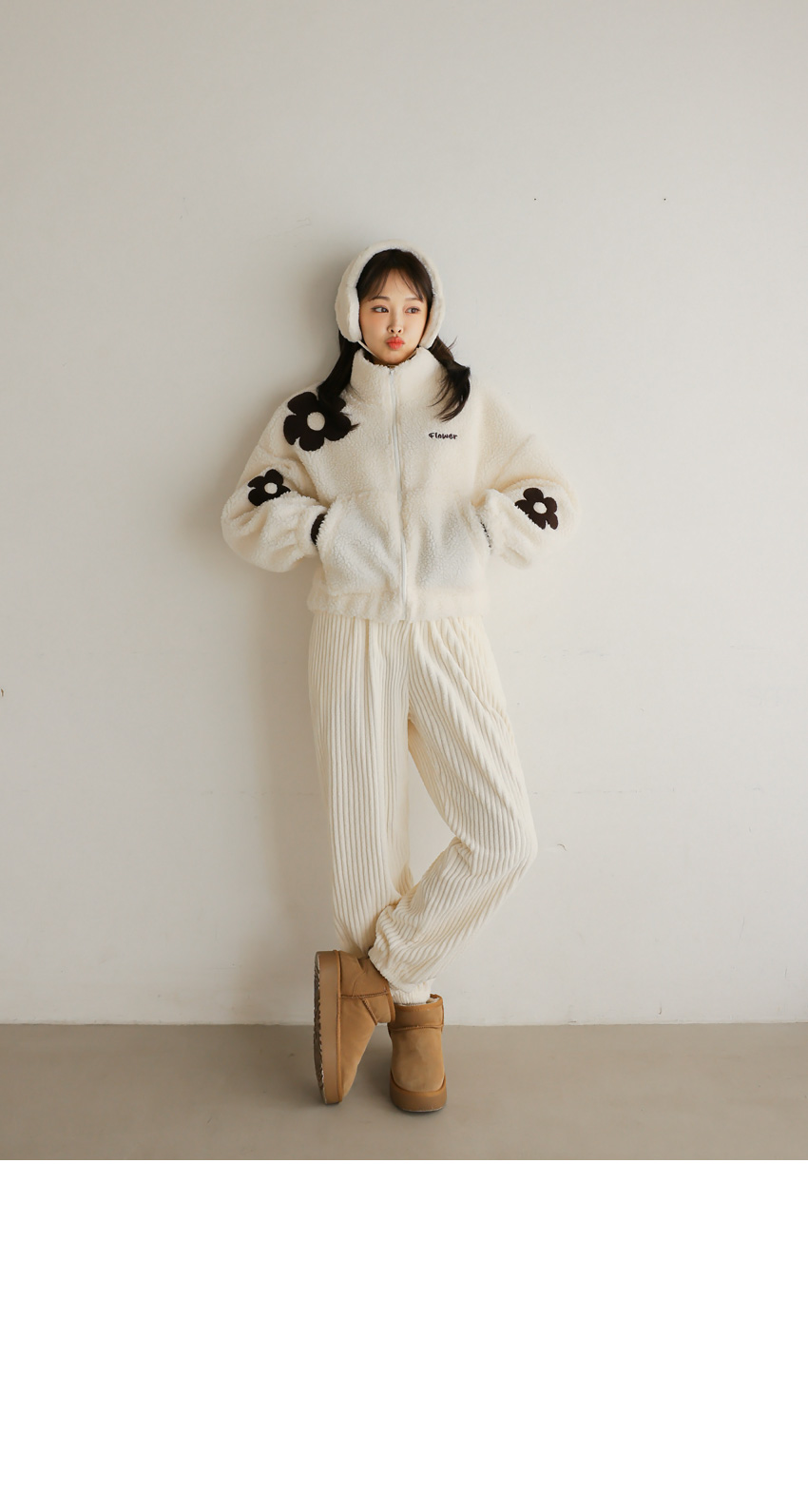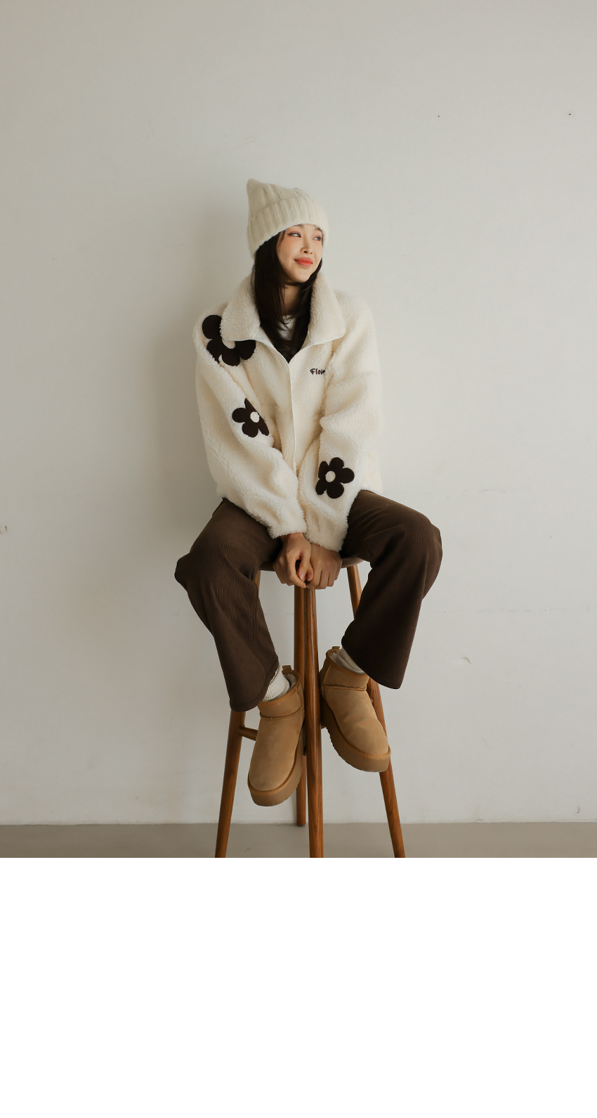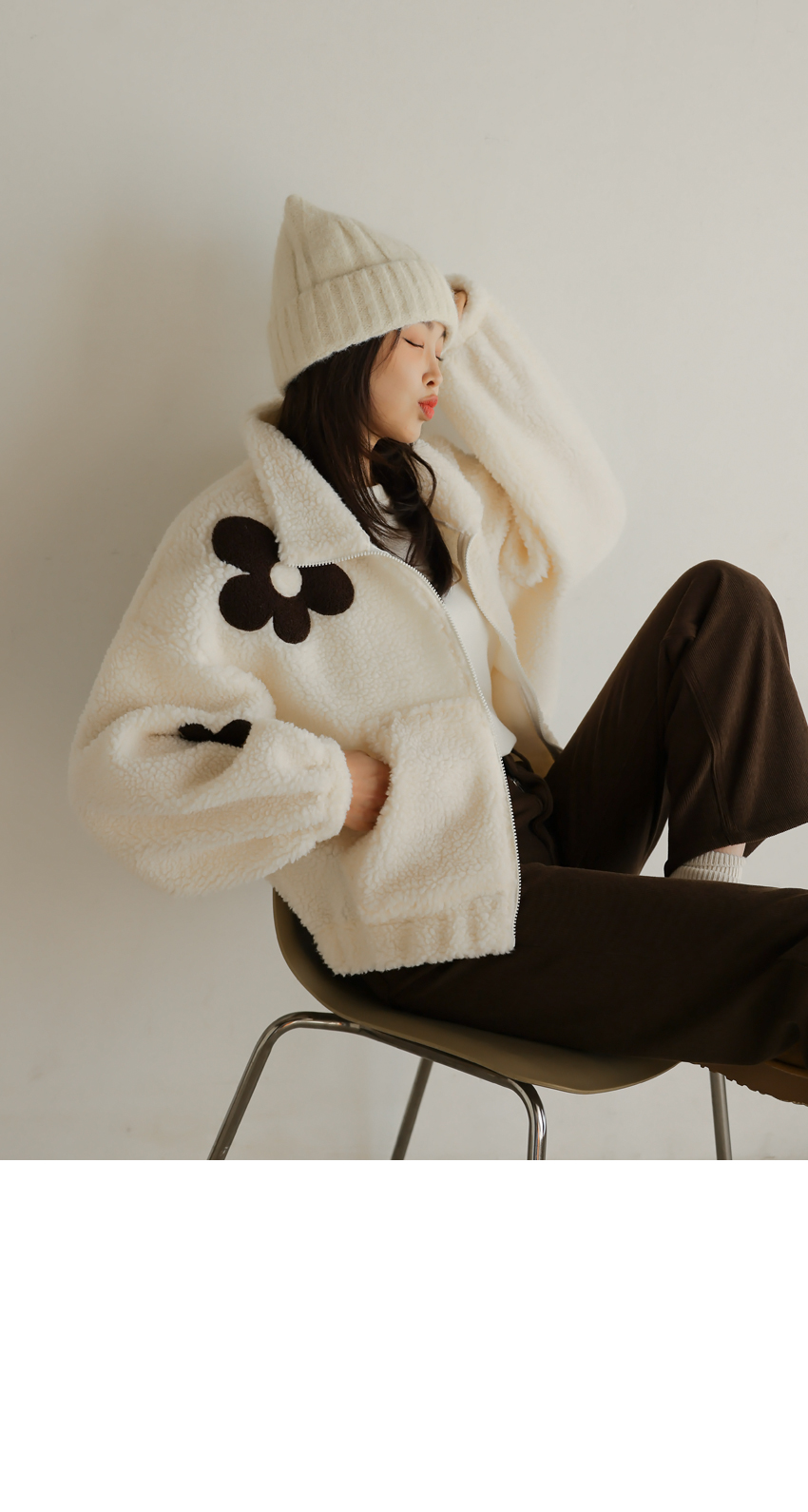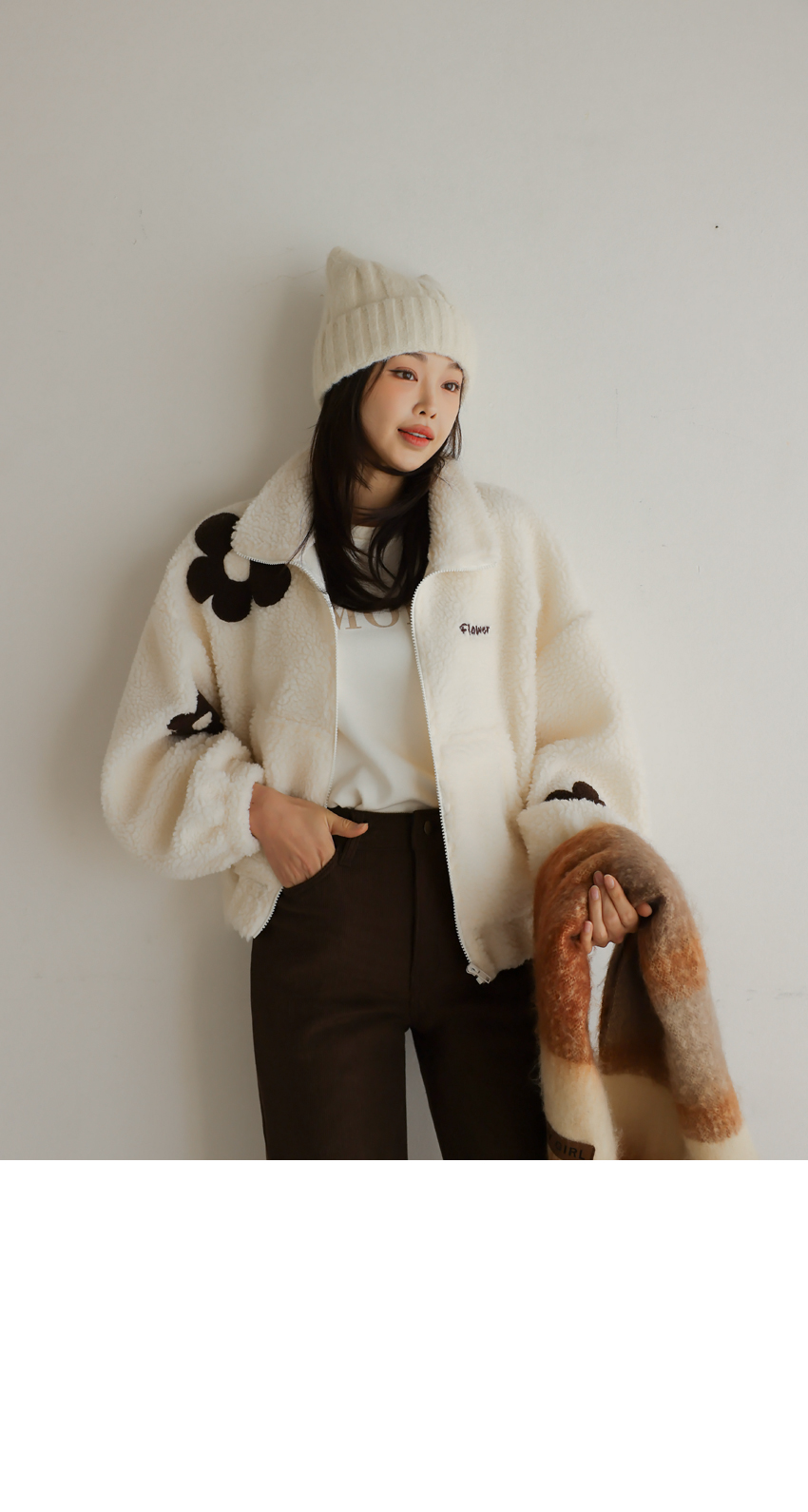 韓國製大花花圖案Fleece拉鍊外套