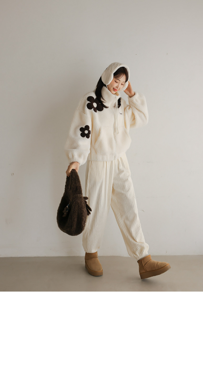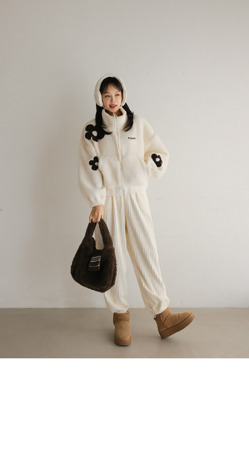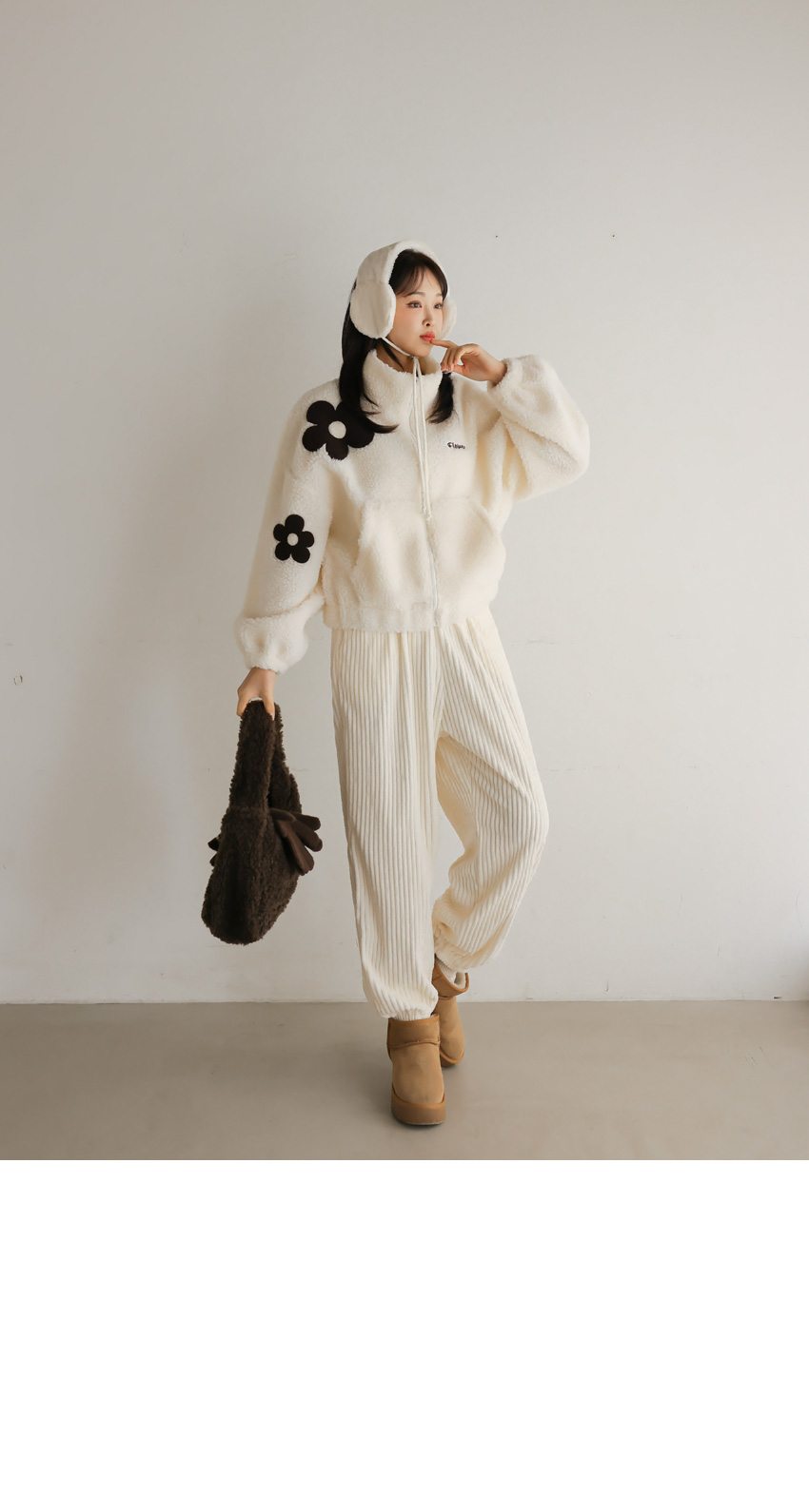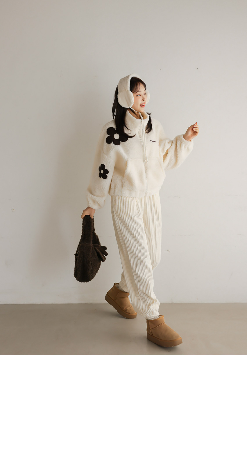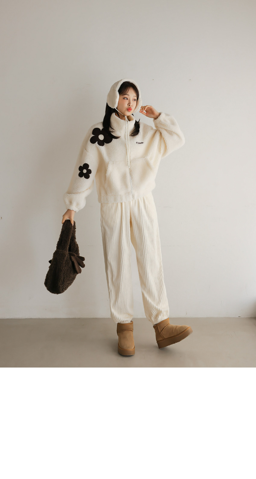 韓國製大花花圖案Fleece拉鍊外套