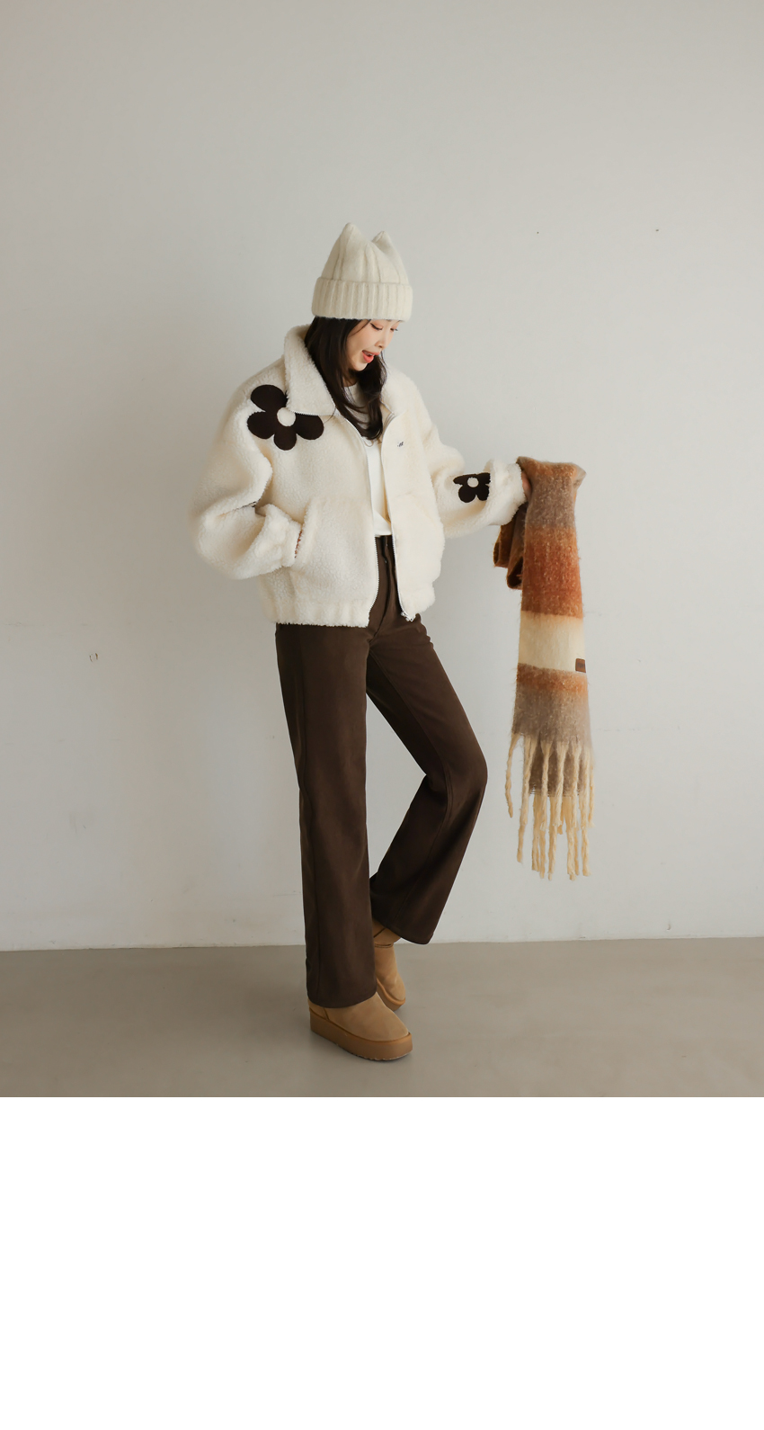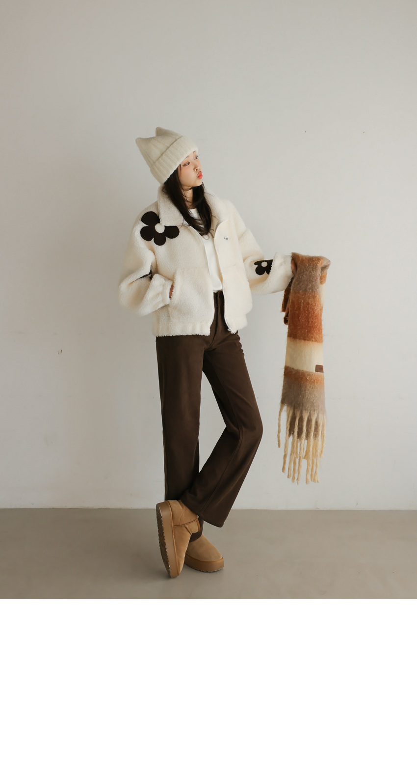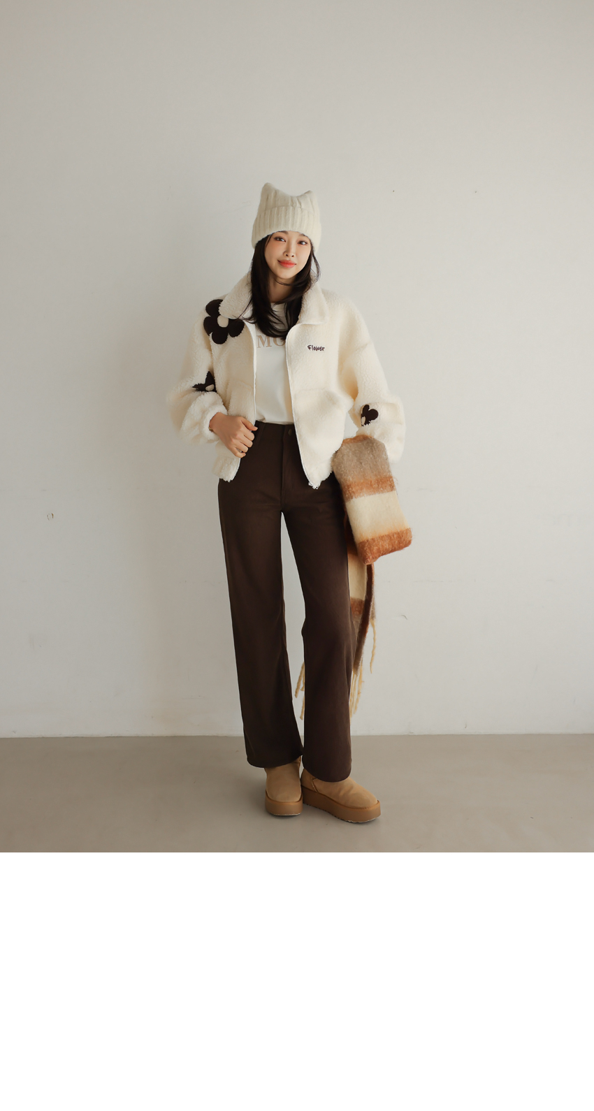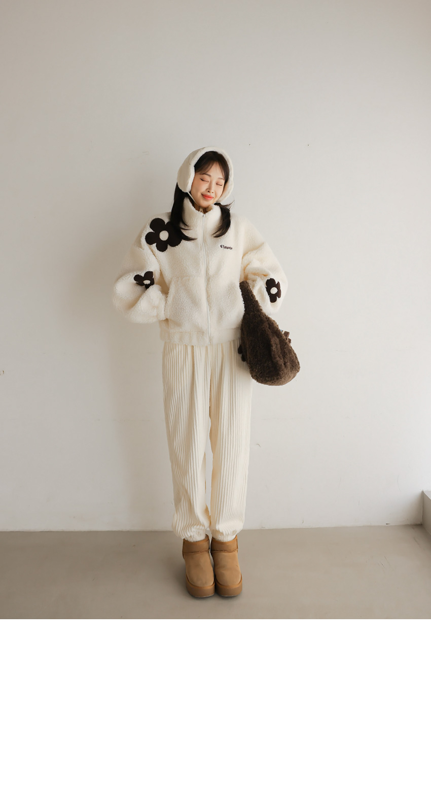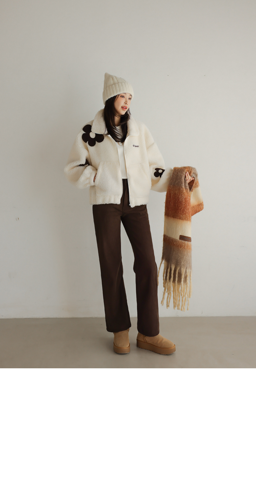 韓國製大花花圖案Fleece拉鍊外套