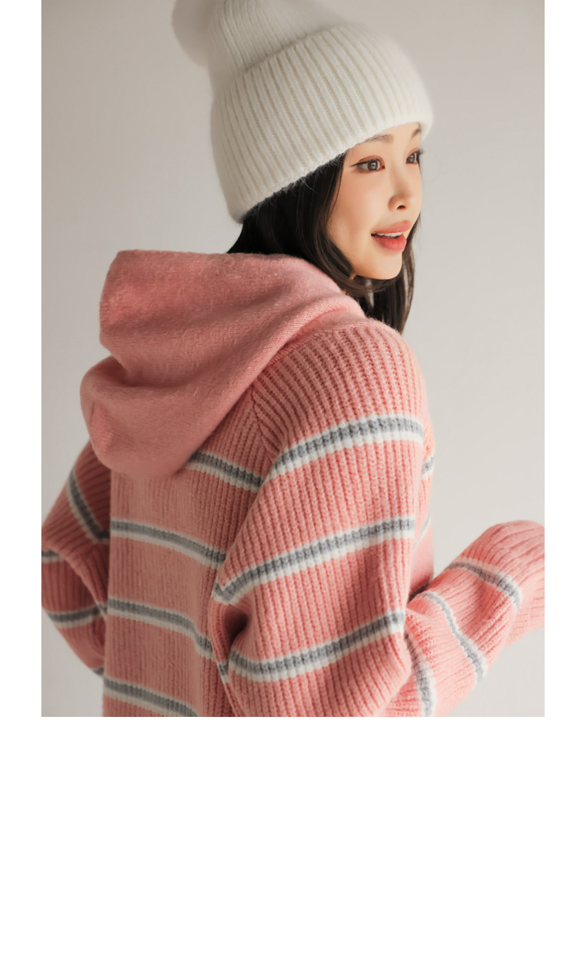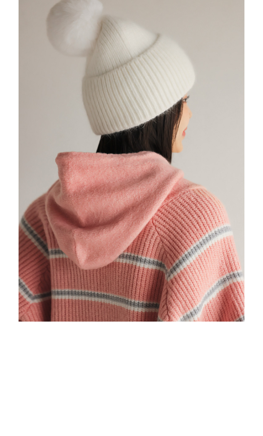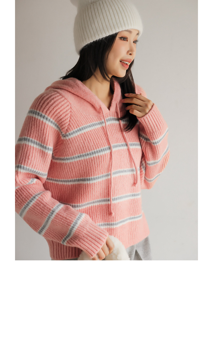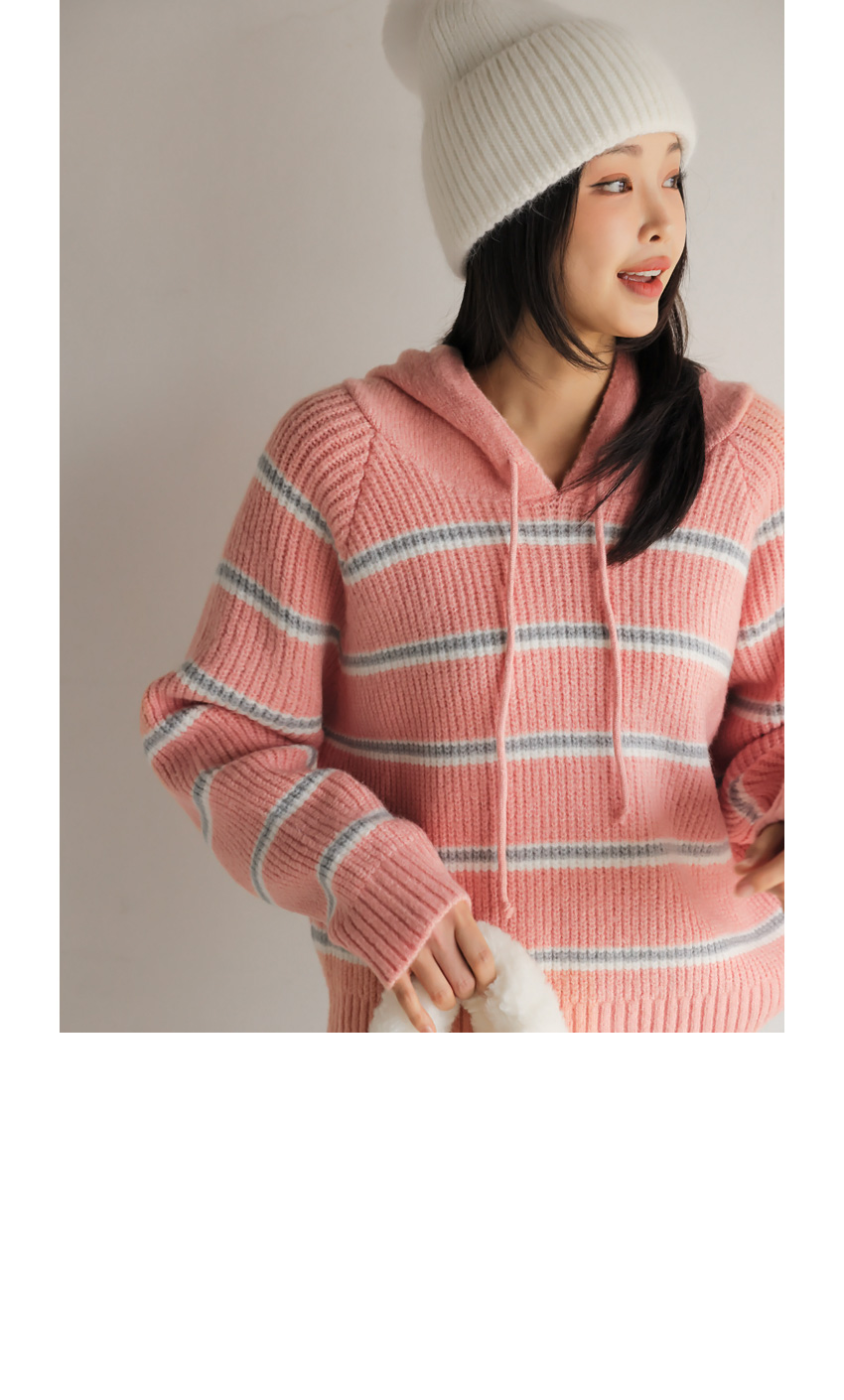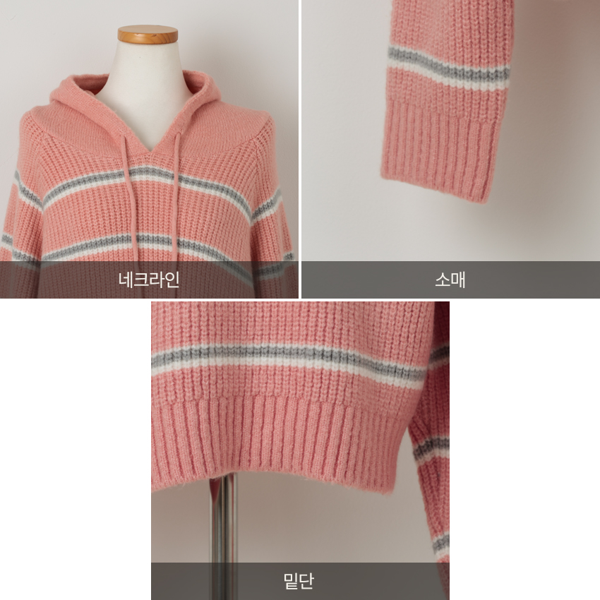 韓國製橫間針織Hoodie(白/粉紅/灰/綠/深藍)