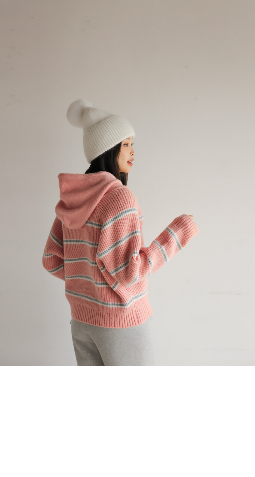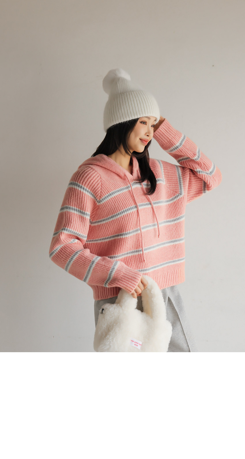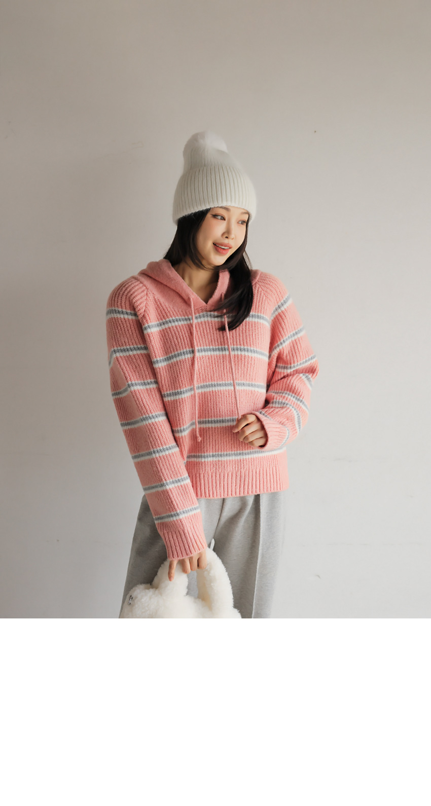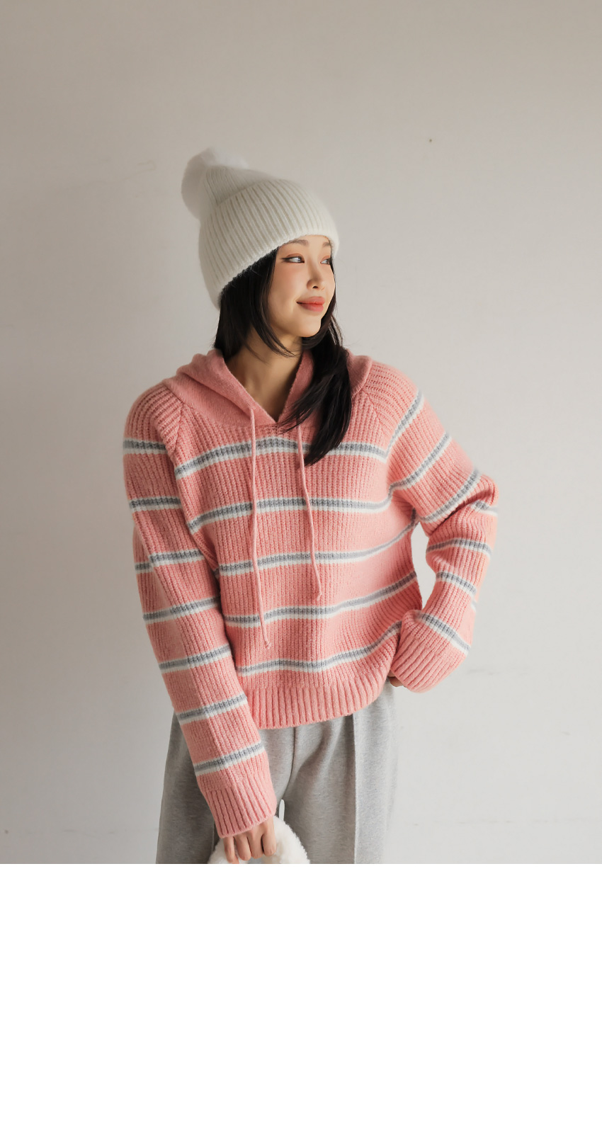 韓國製橫間針織Hoodie(白/粉紅/灰/綠/深藍)