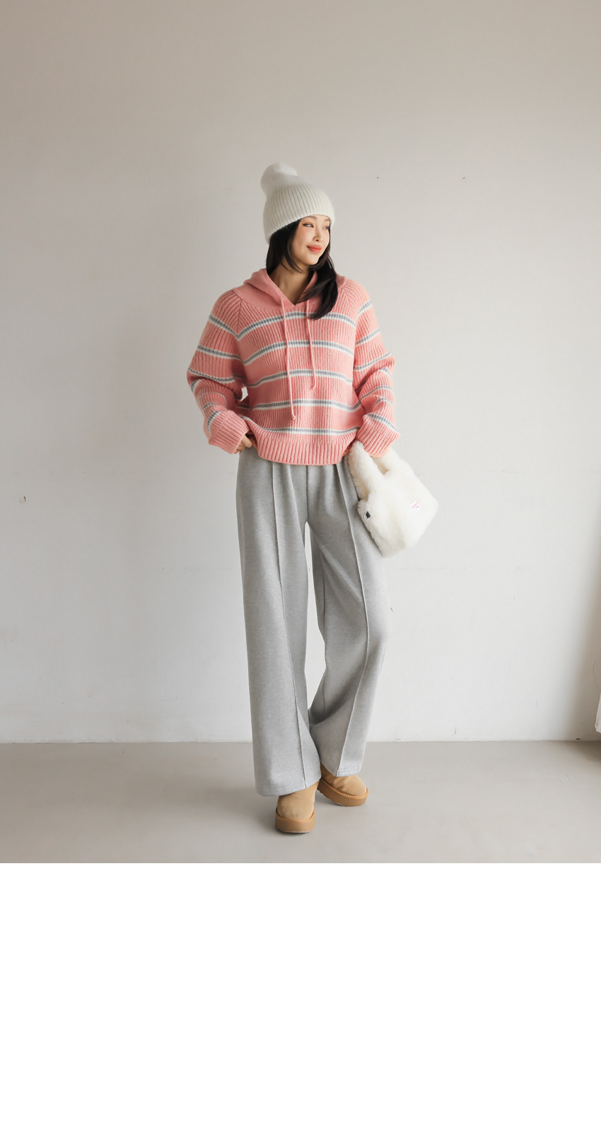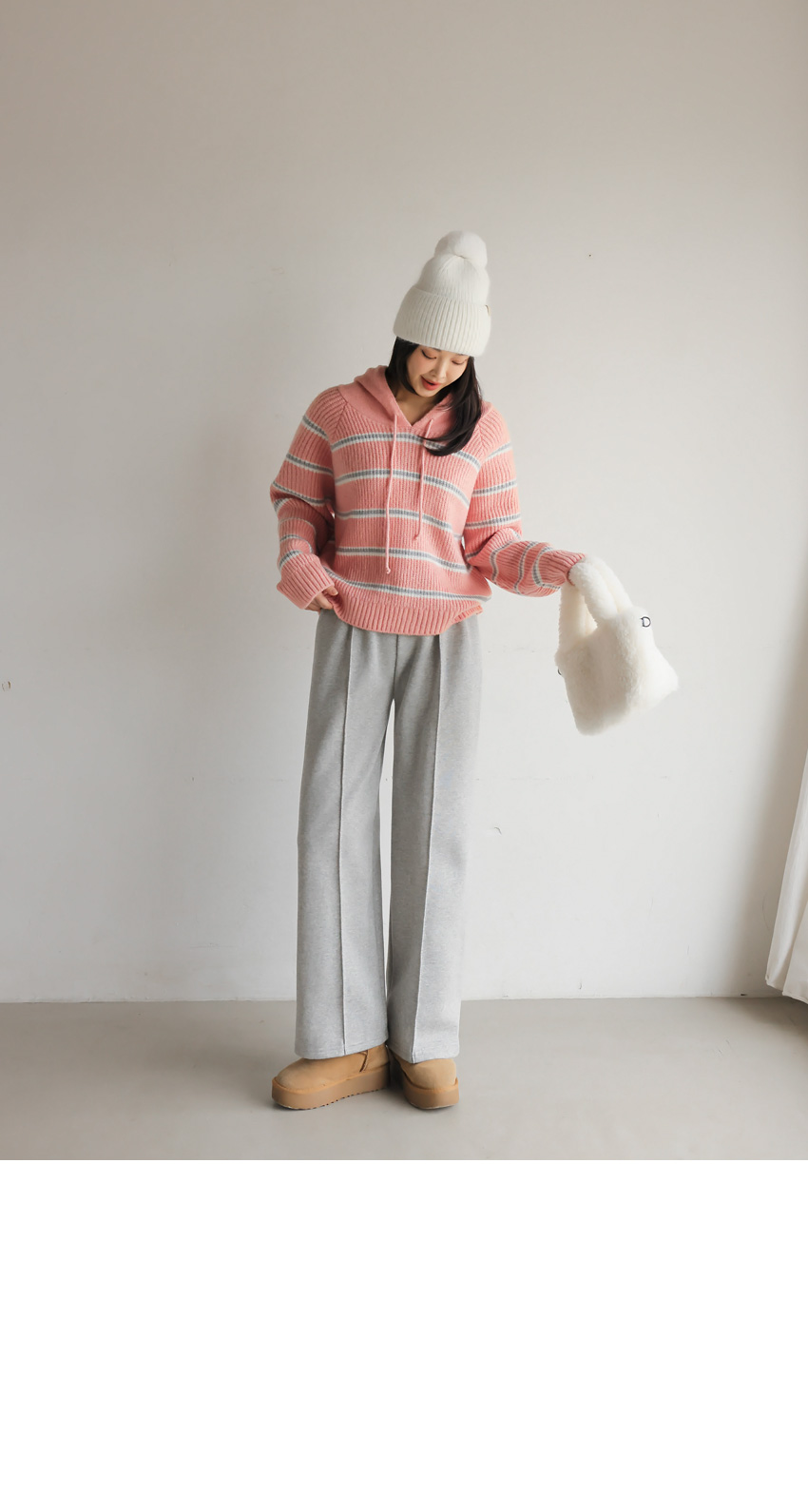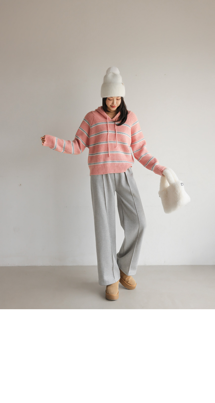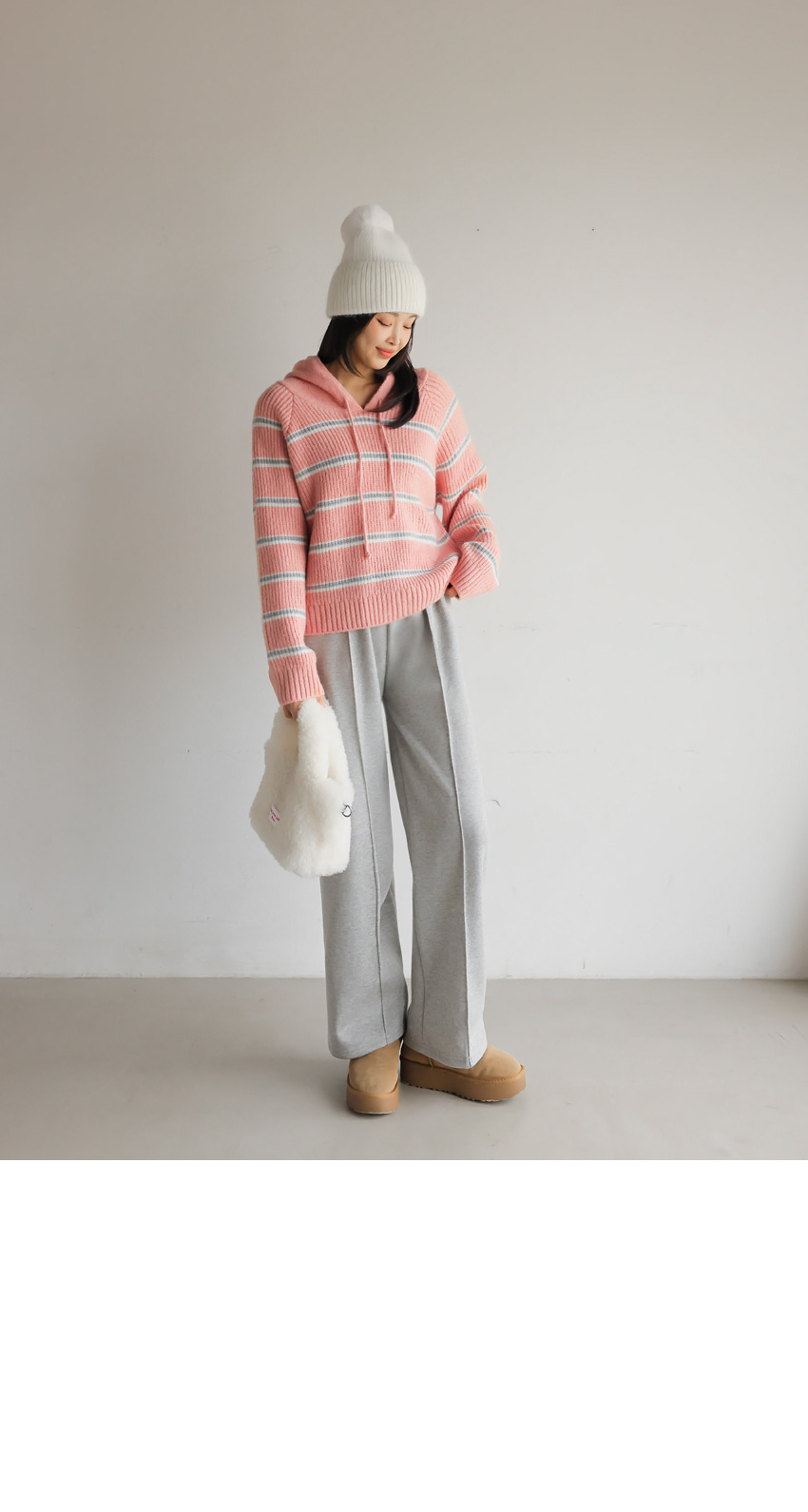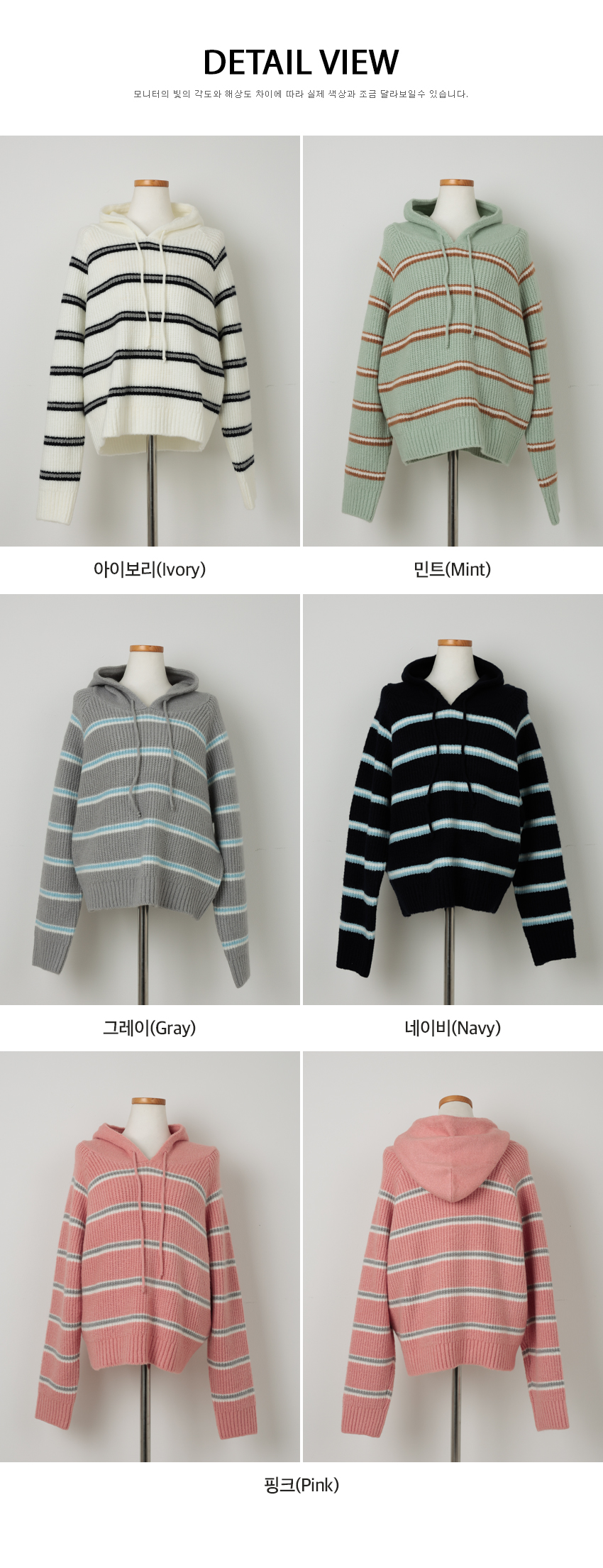 韓國製橫間針織Hoodie(白/粉紅/灰/綠/深藍)