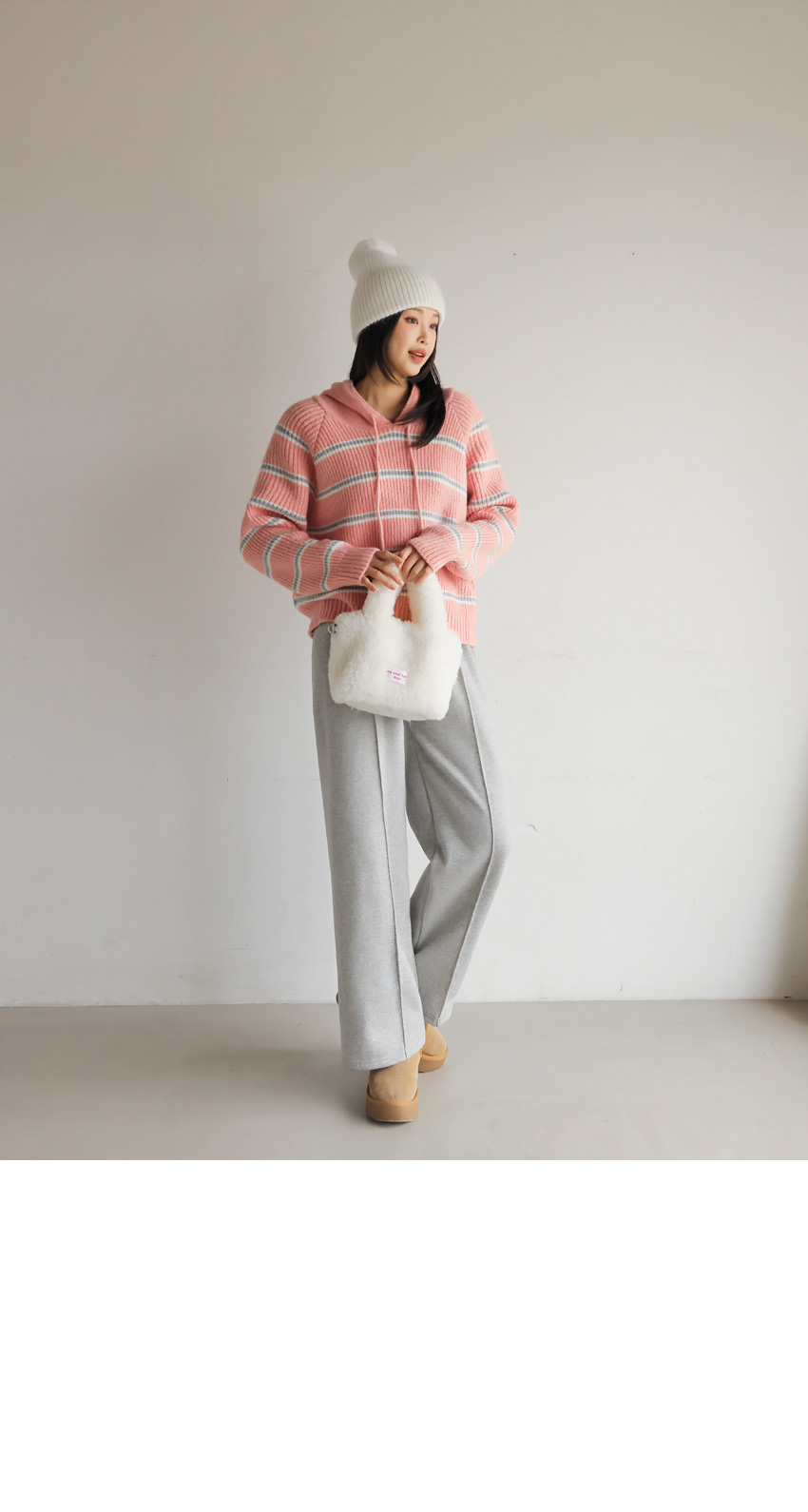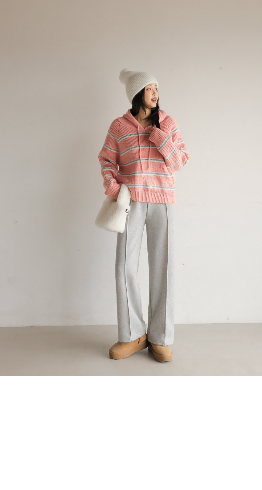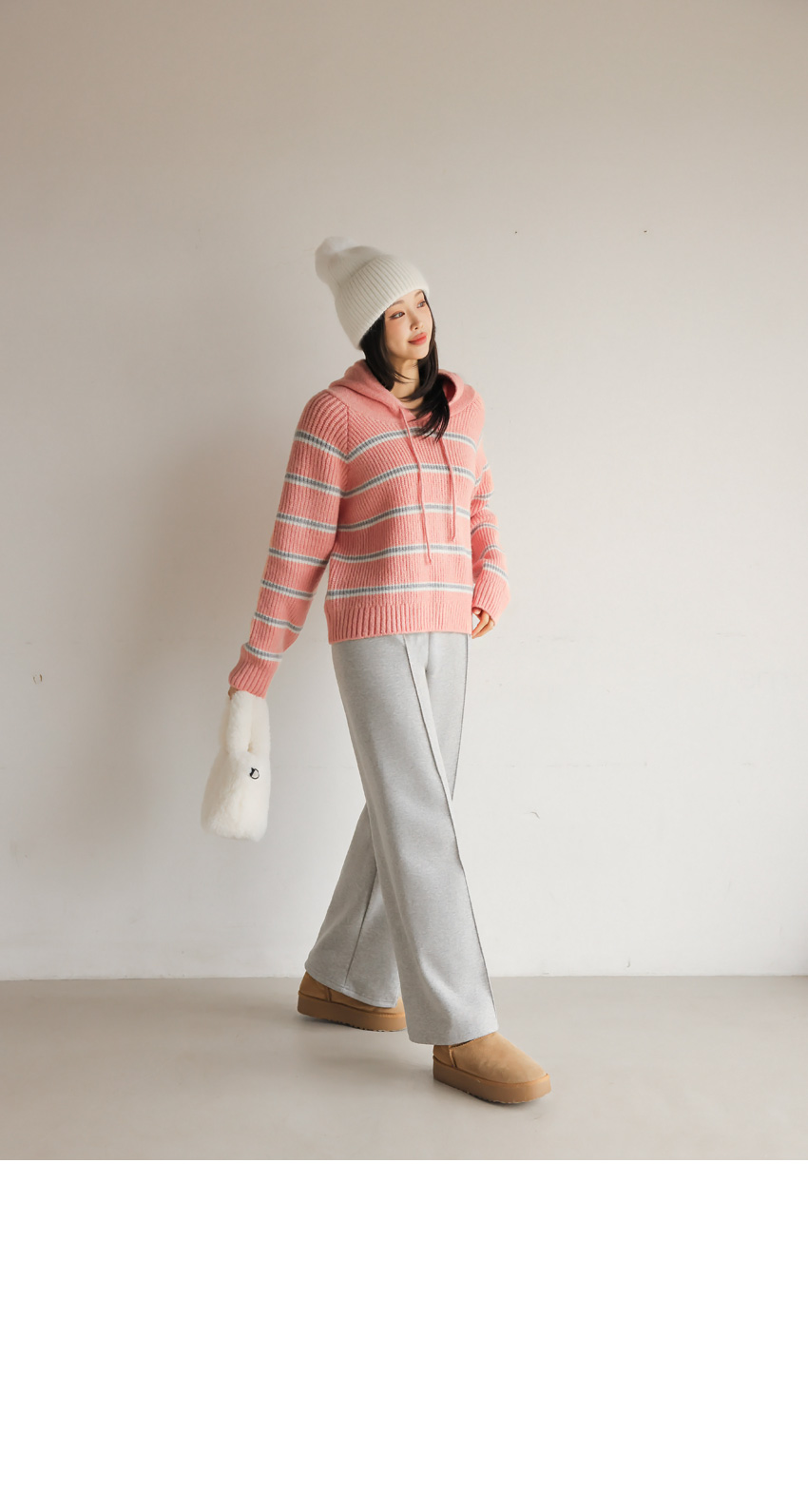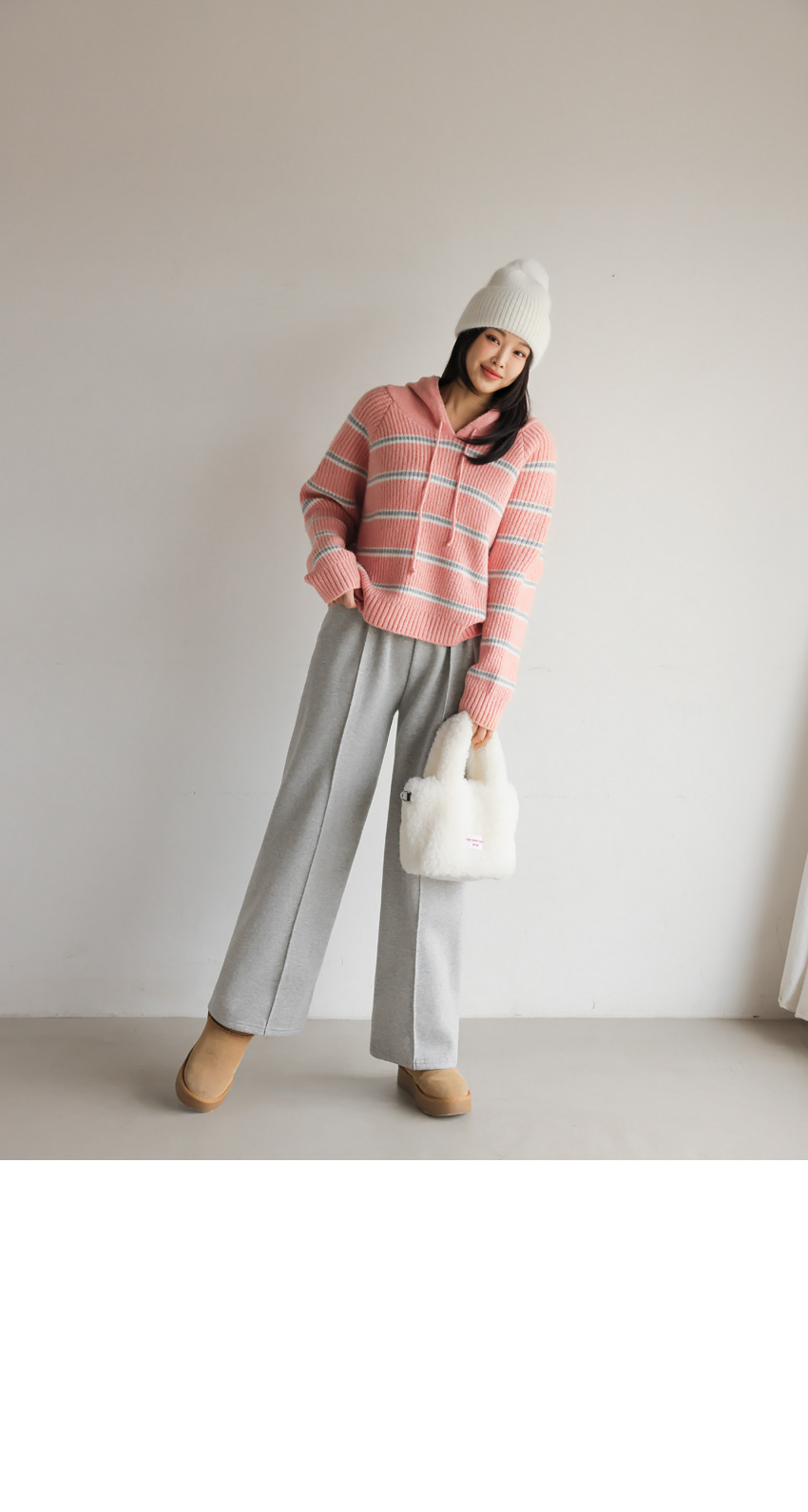 韓國製橫間針織Hoodie(白/粉紅/灰/綠/深藍)