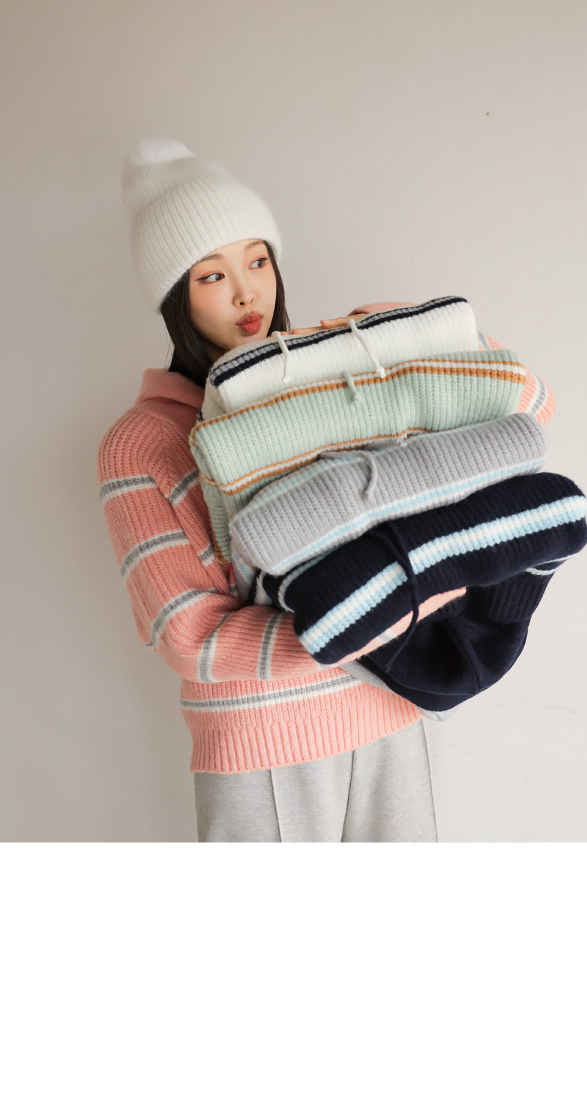 🎈韓國製橫間針織Hoodie(白/粉紅/灰/綠/深藍)🎈