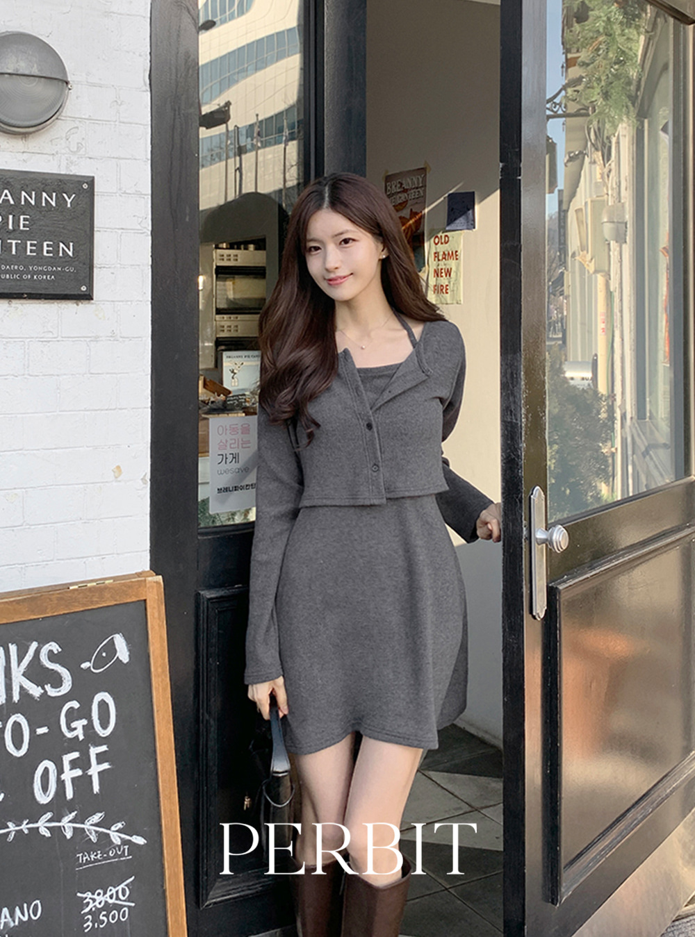 韓國製掛頸連身裙+外套套裝(黑/白/灰)