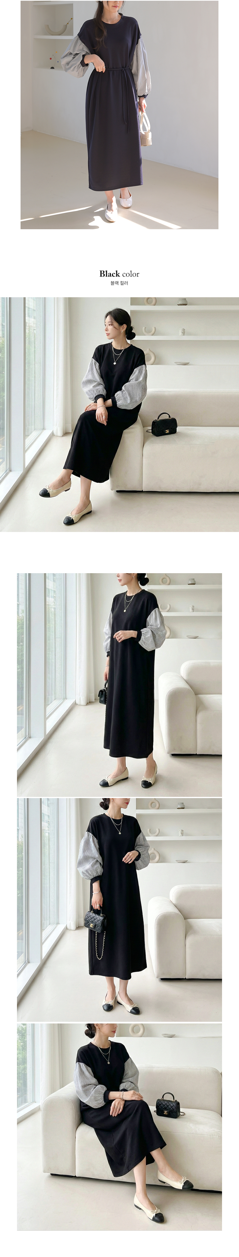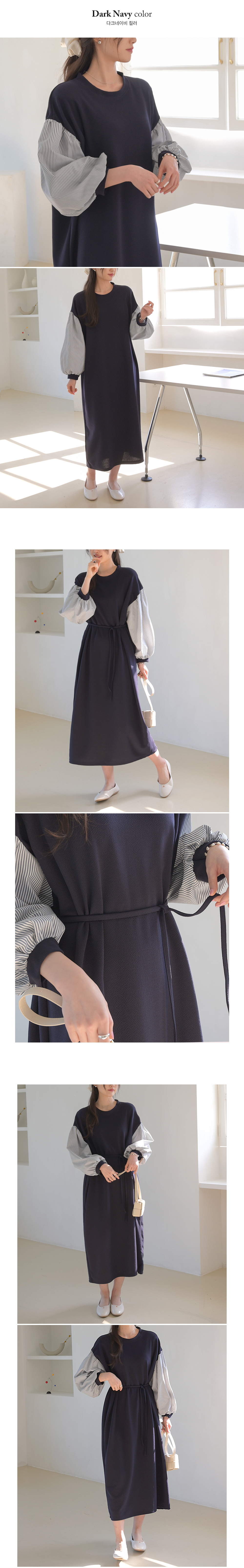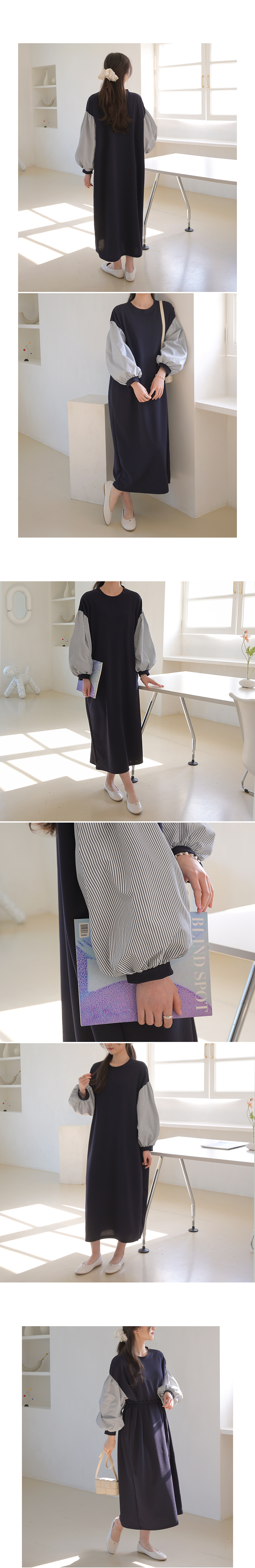 韓國製斯文大方連身長裙(黑/海軍藍)