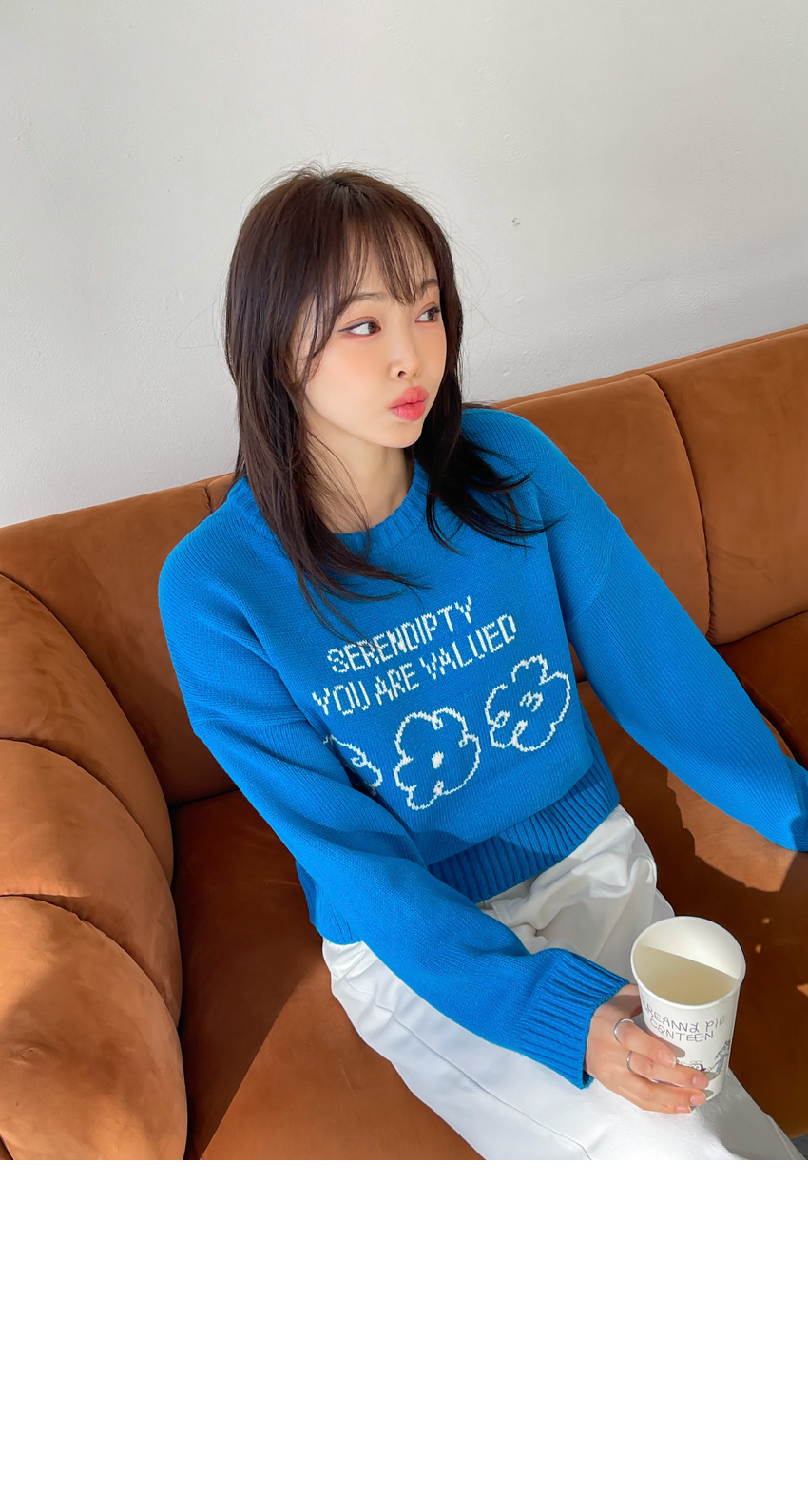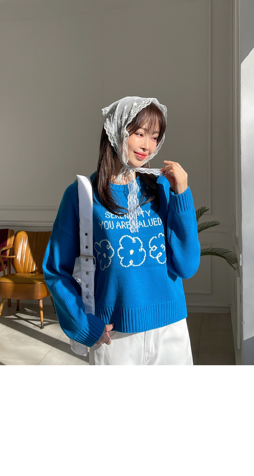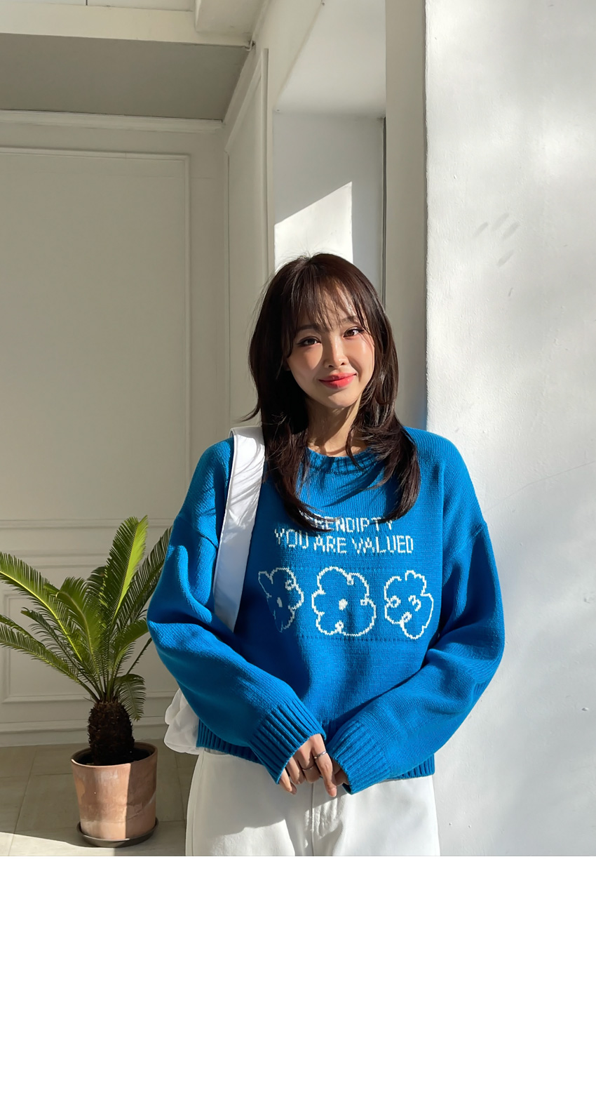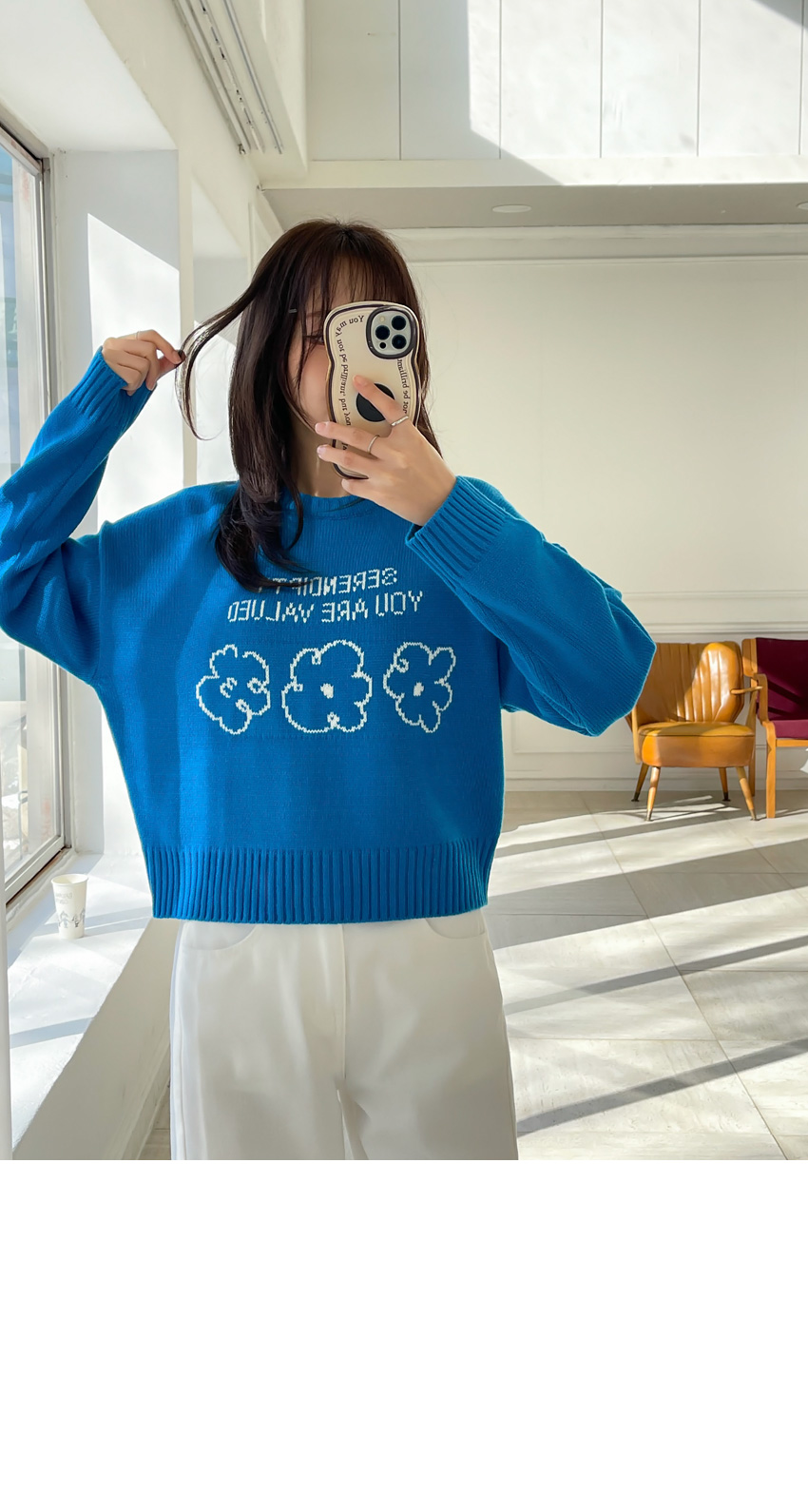 🎈韓國製簡潔花花圖案冷衫(藍/粉紅)🎈