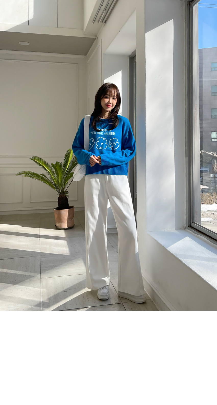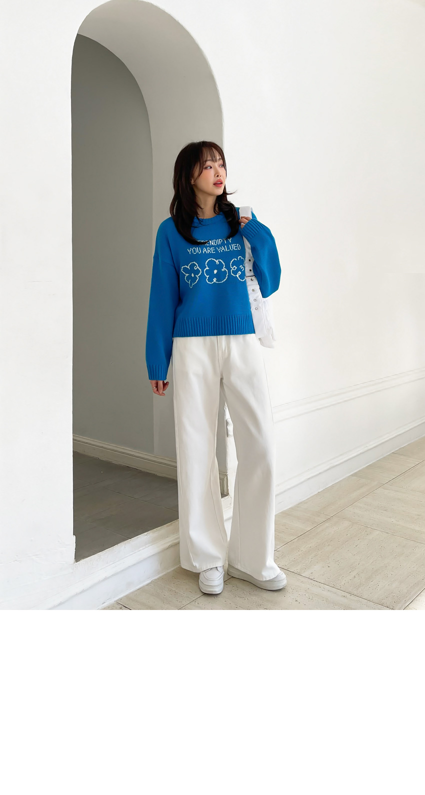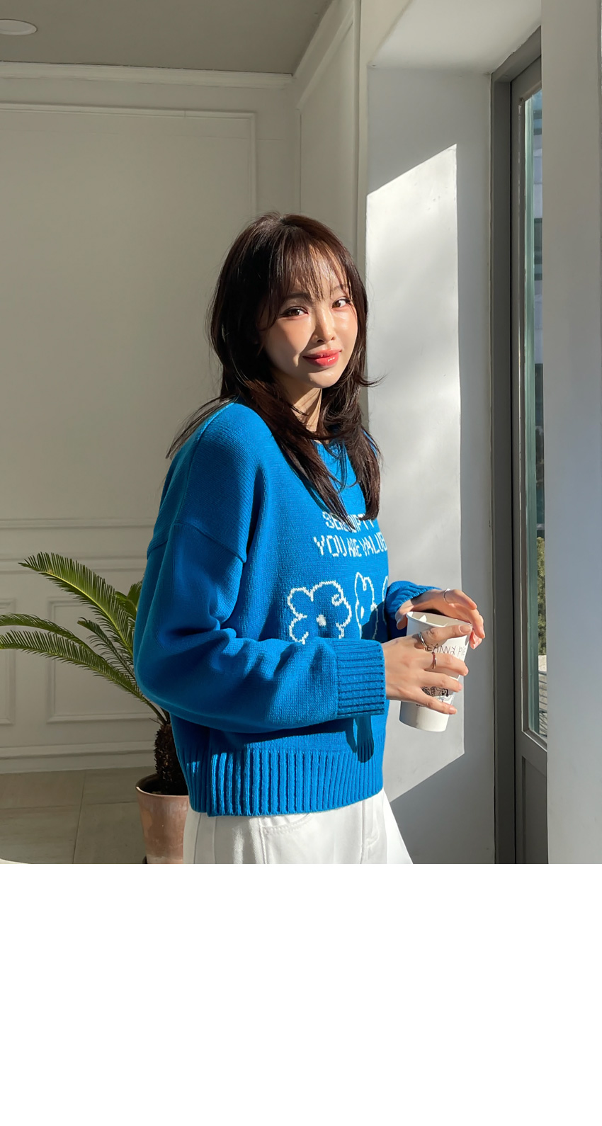🎈韓國製簡潔花花圖案冷衫(藍/粉紅)🎈