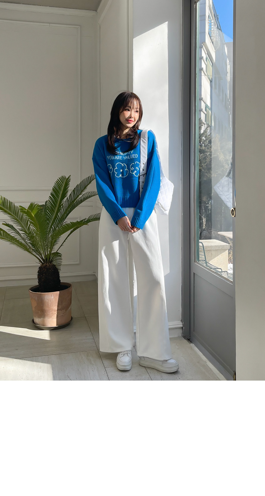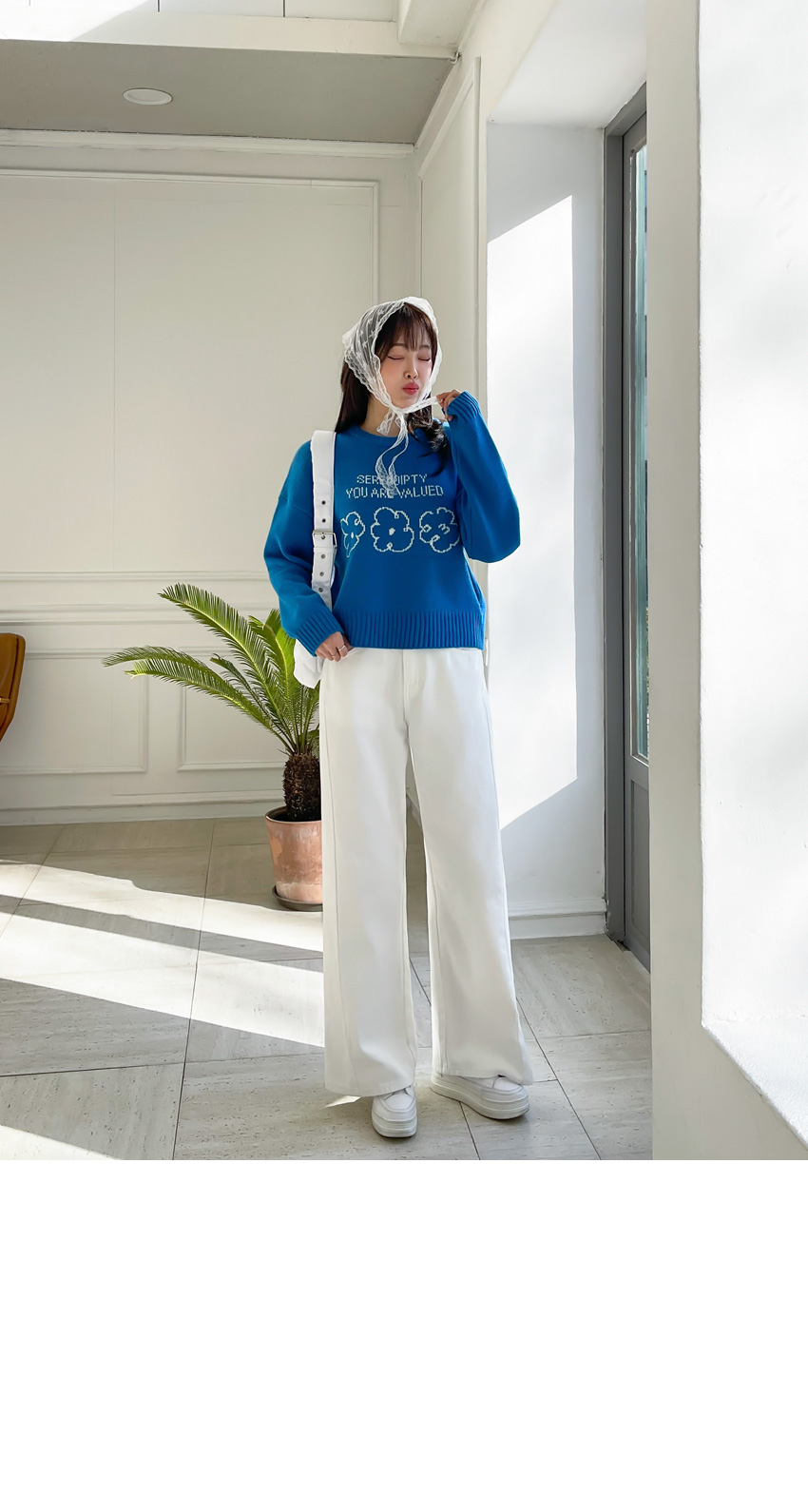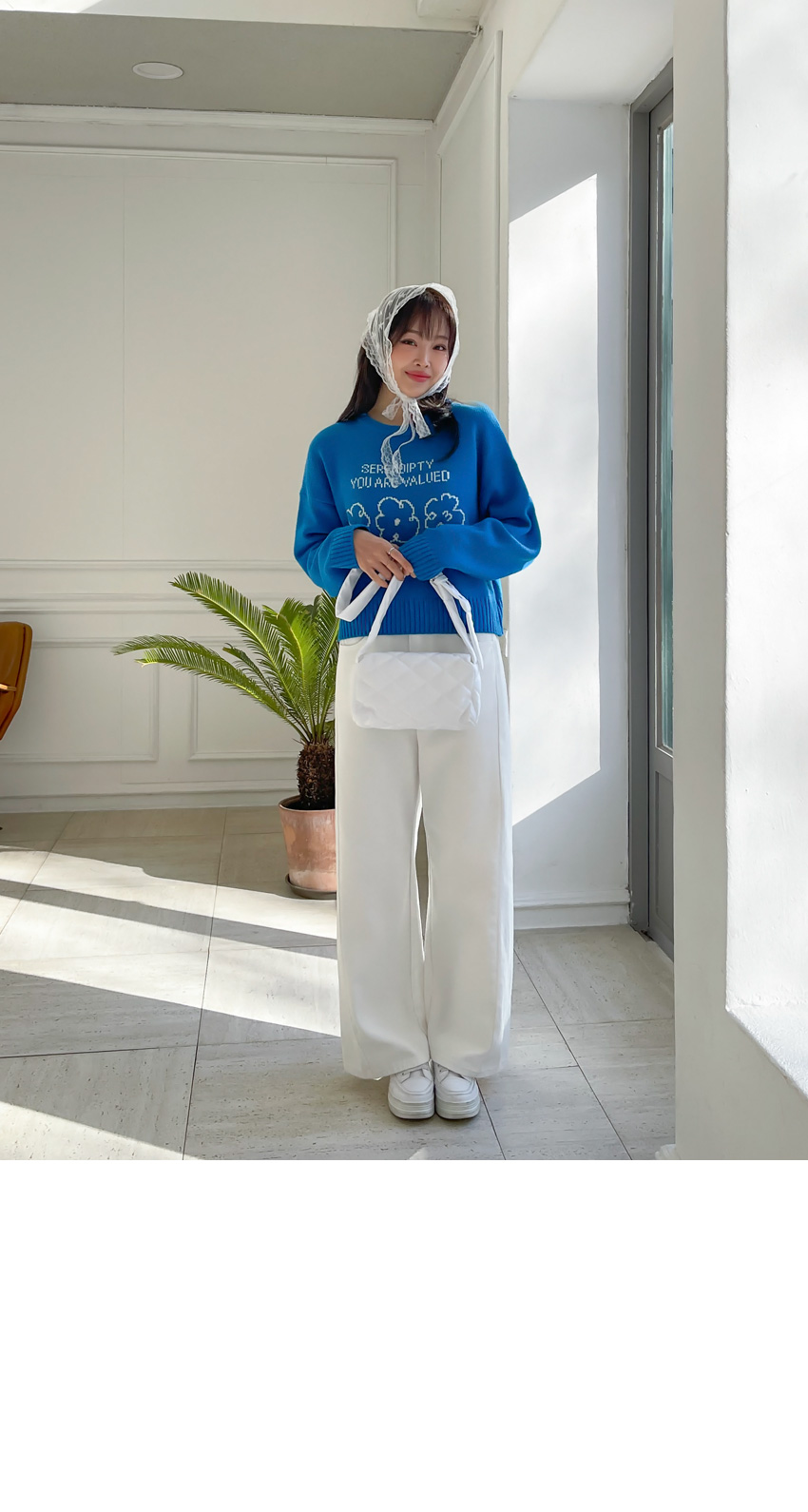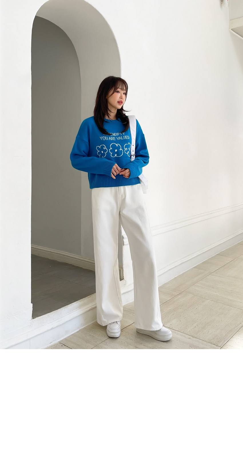🎈韓國製簡潔花花圖案冷衫(藍/粉紅)🎈