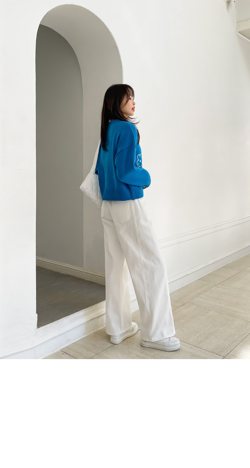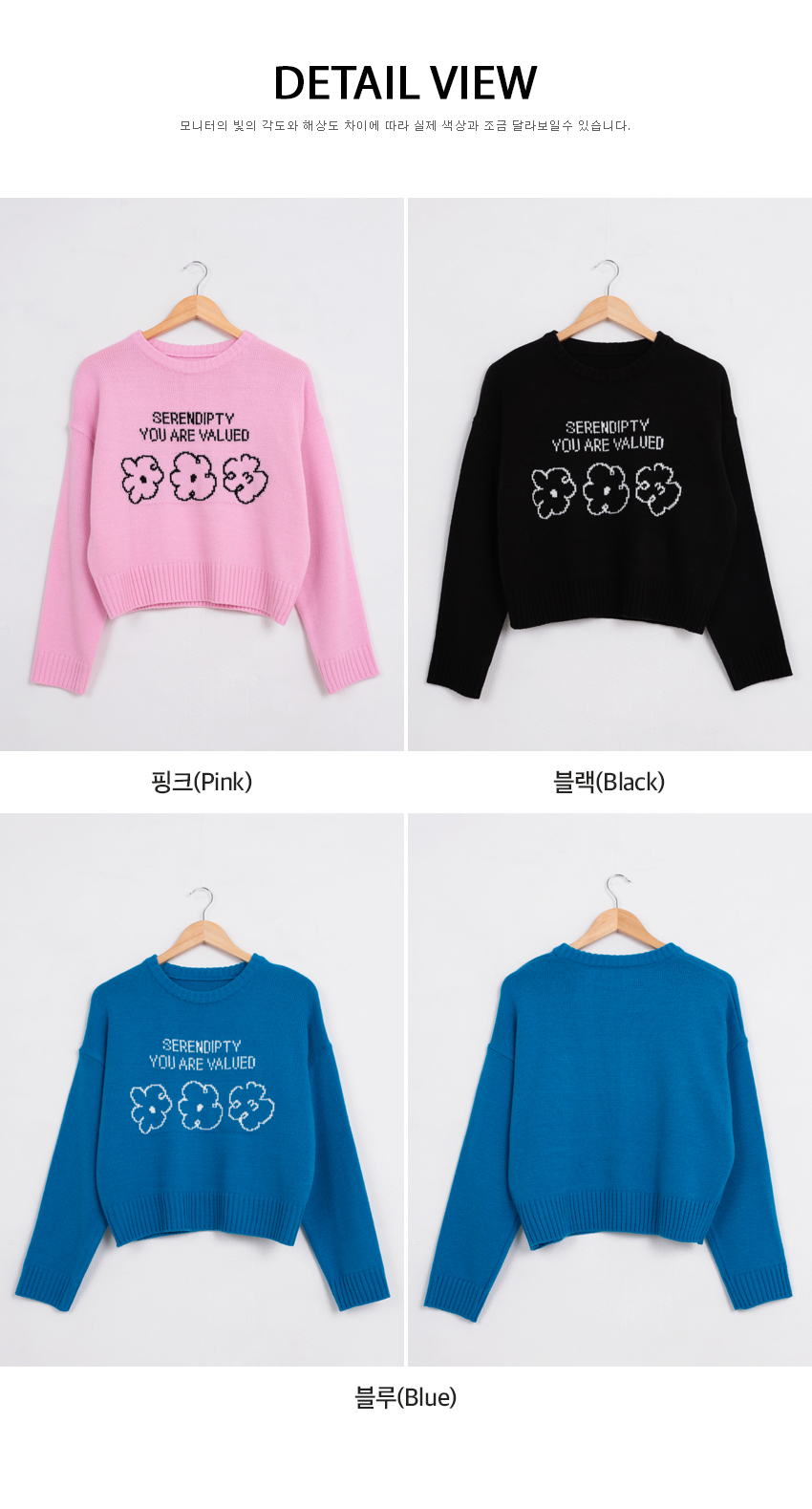 韓國製簡潔花花圖案冷衫(藍/粉紅)
