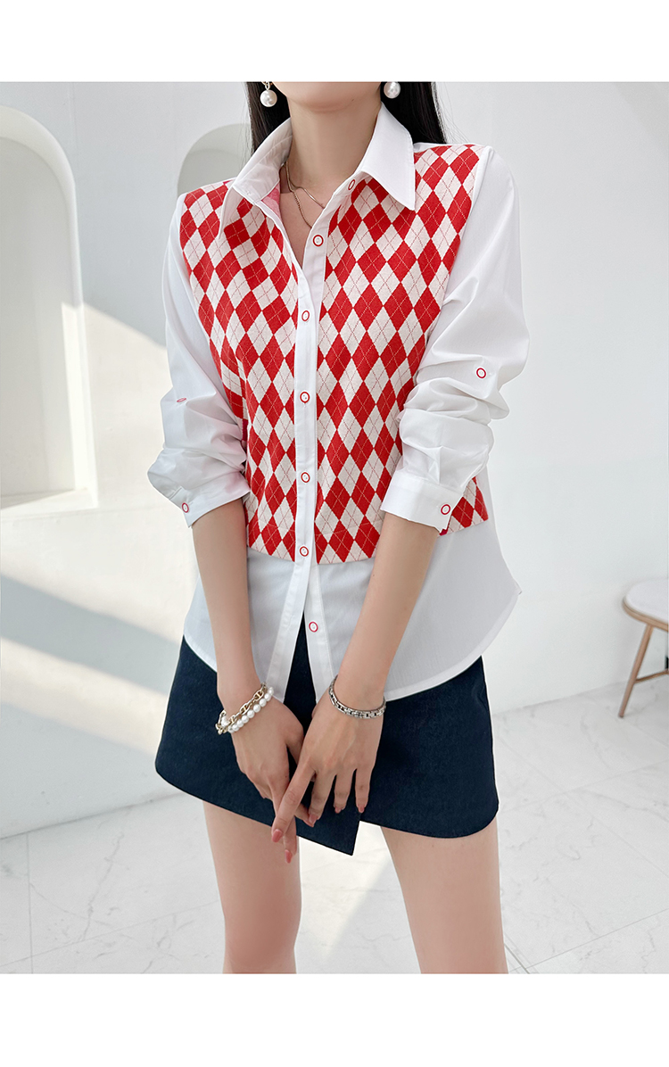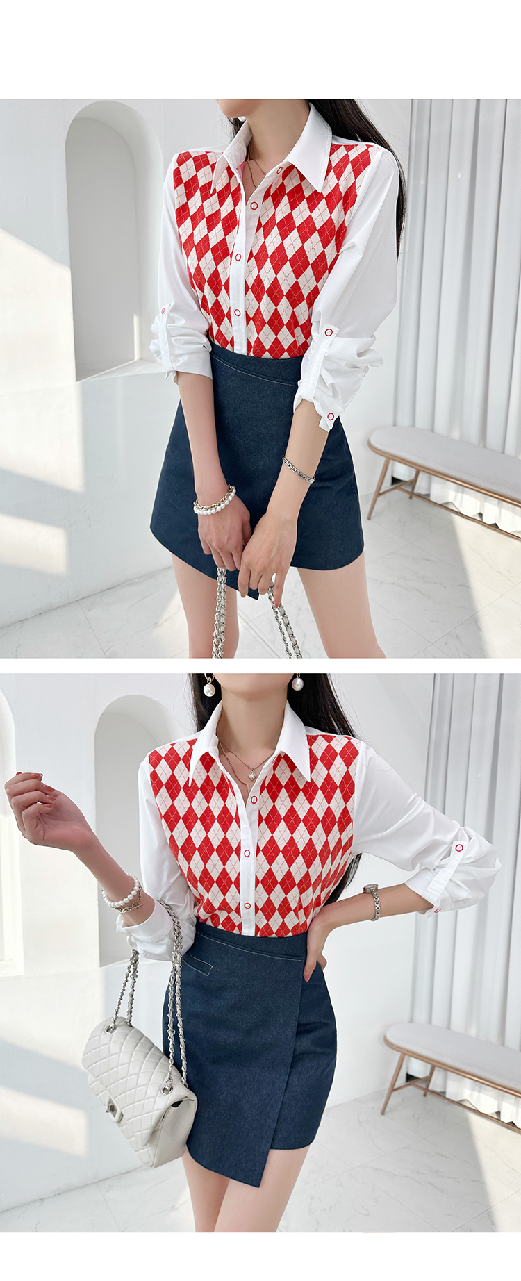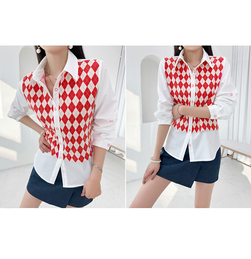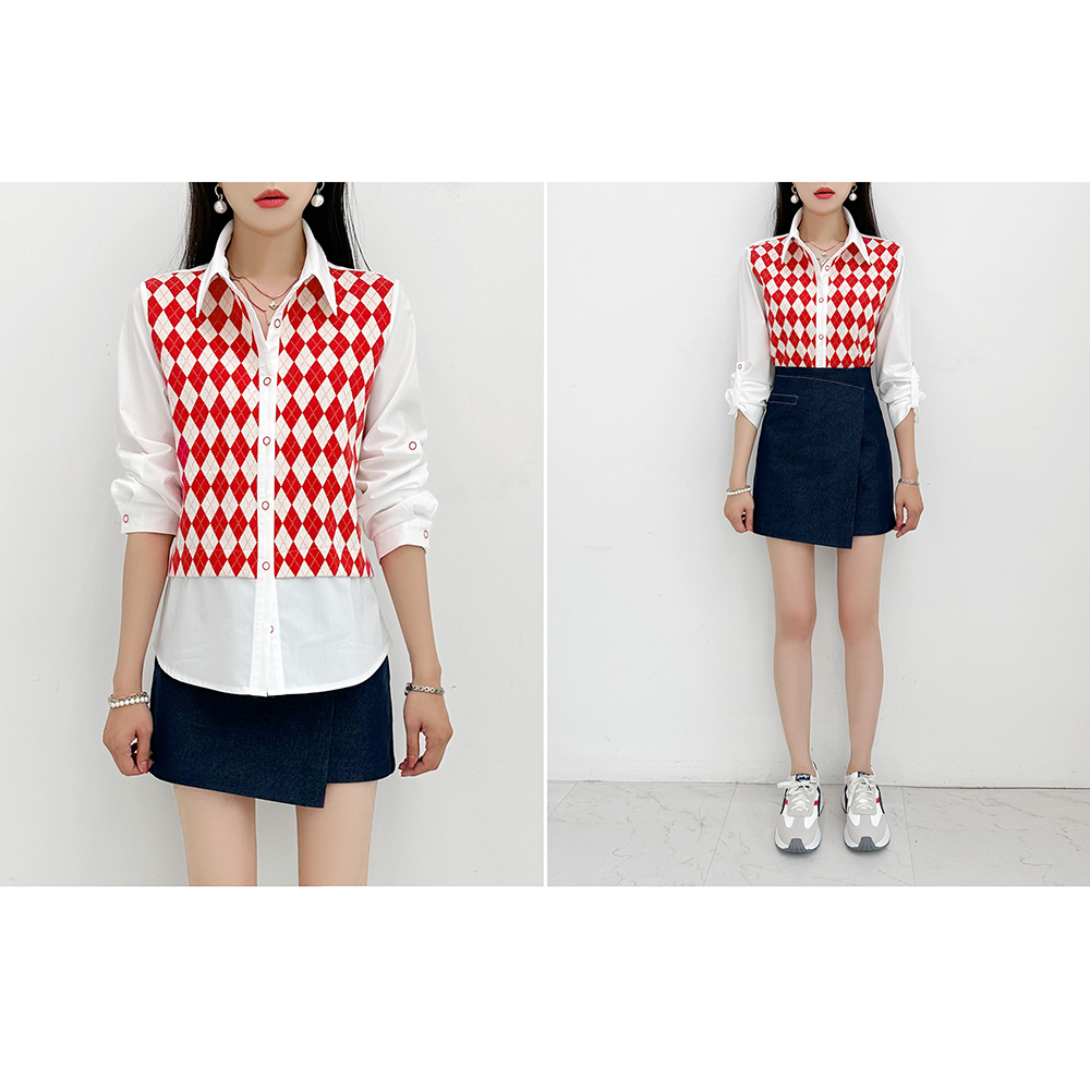 韓國製啤牌菱形pattern恤衫(白/天藍/粉紅)