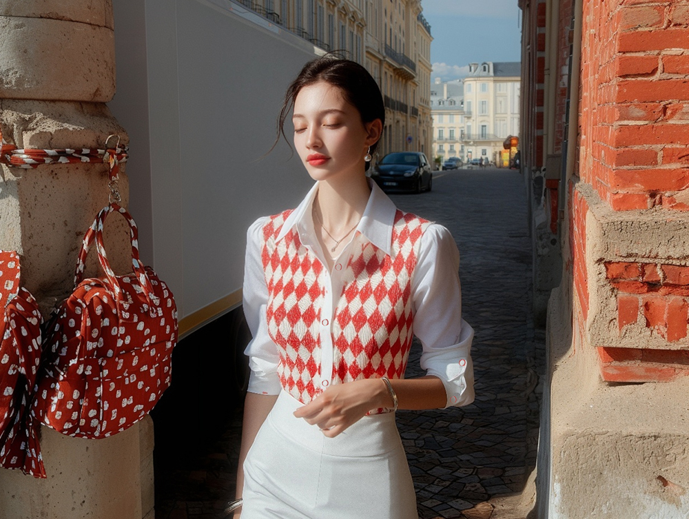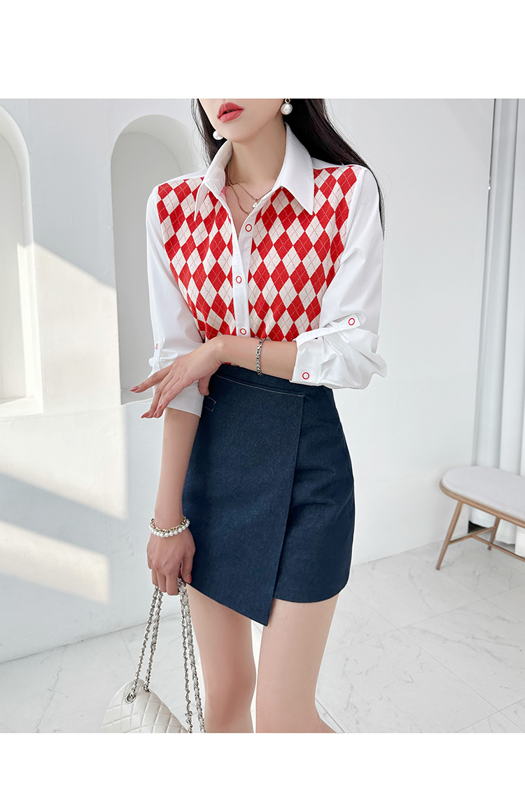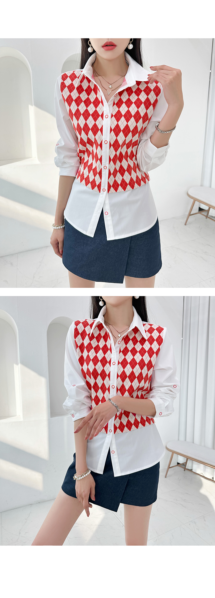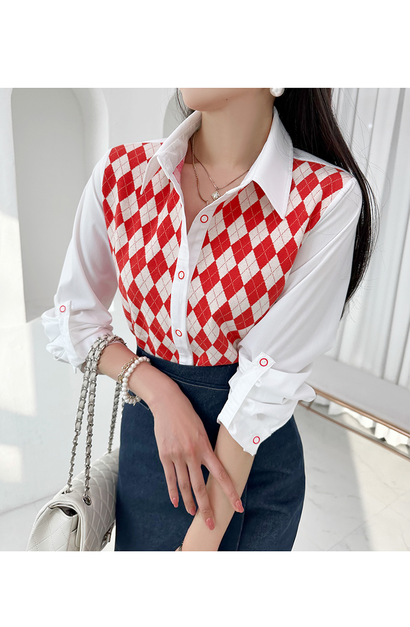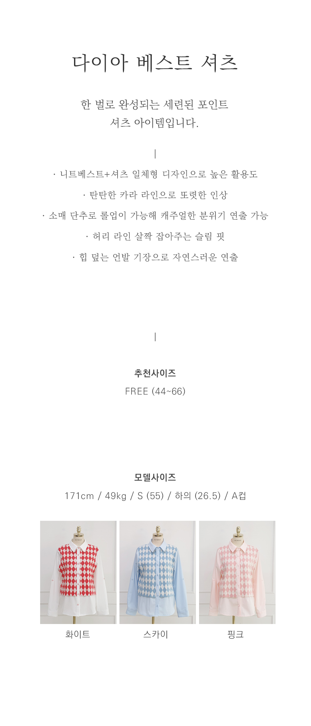 韓國製啤牌菱形pattern恤衫(白/天藍/粉紅)