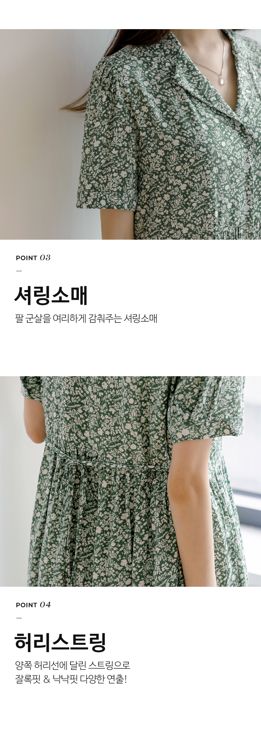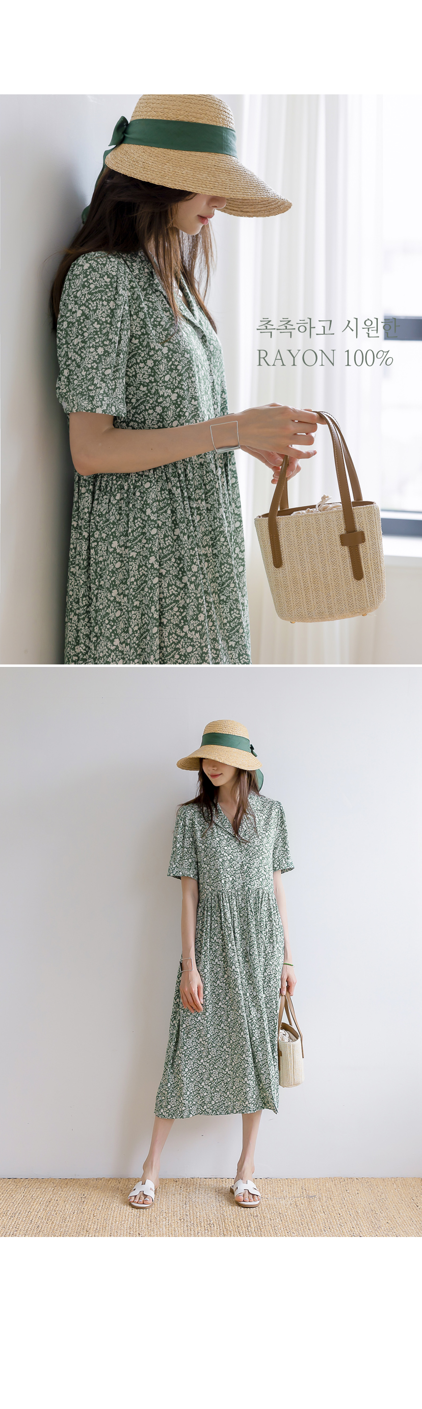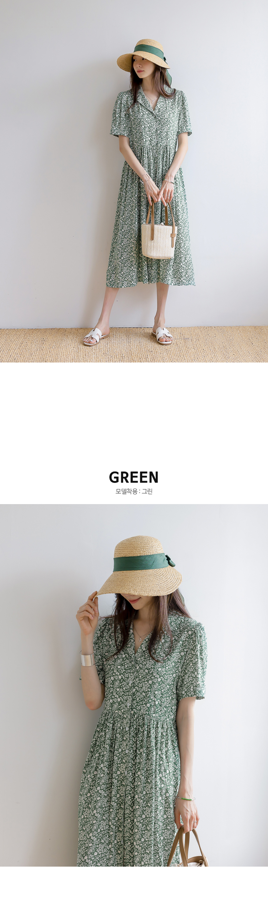 韓國製有衣領碎花夏日連身長裙(藍/綠)