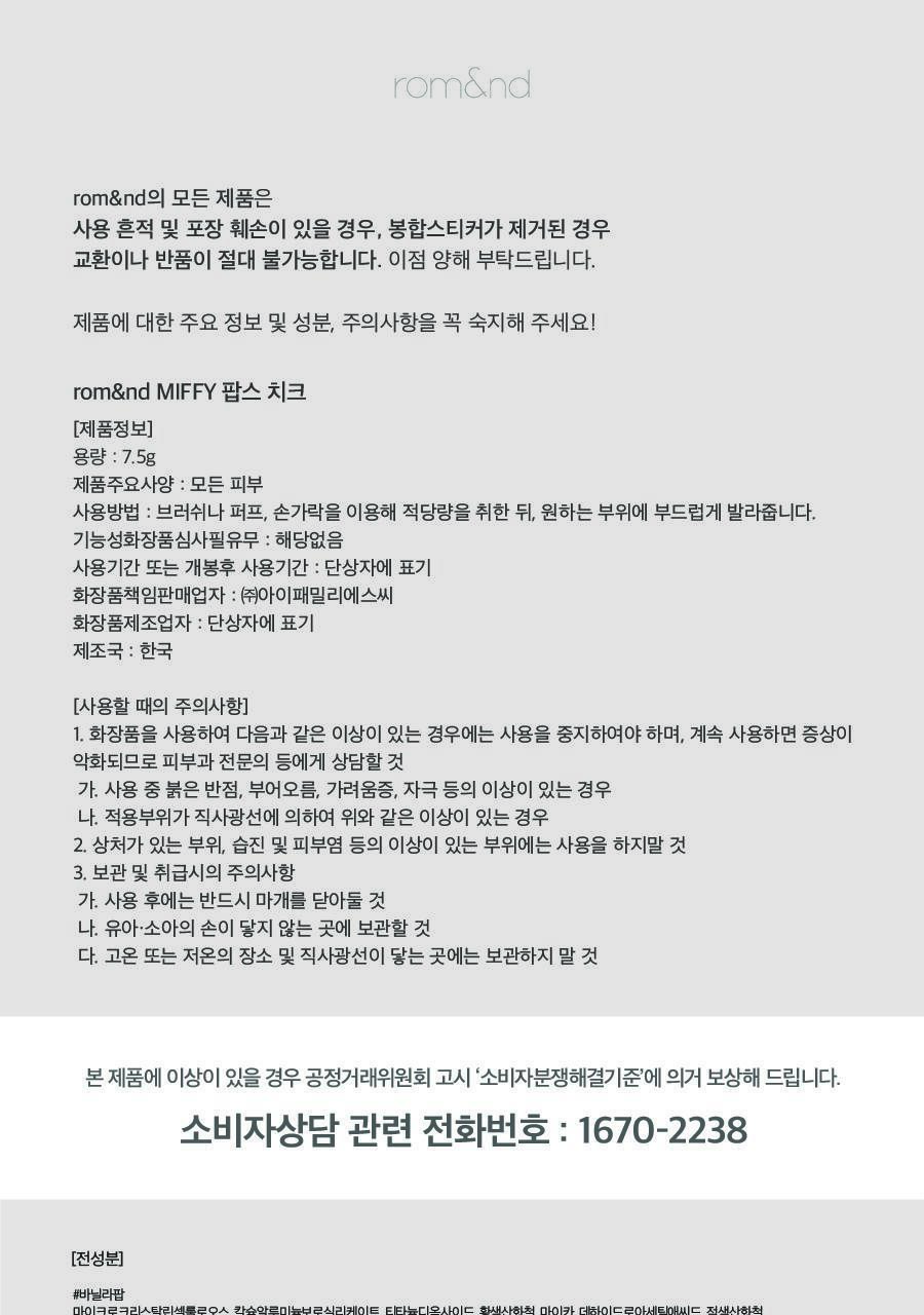 【限時優惠】韓國製Miffy x rom&nd胭脂