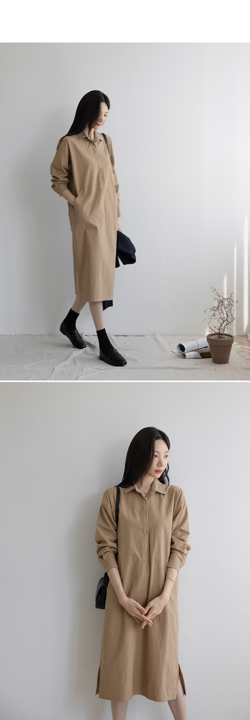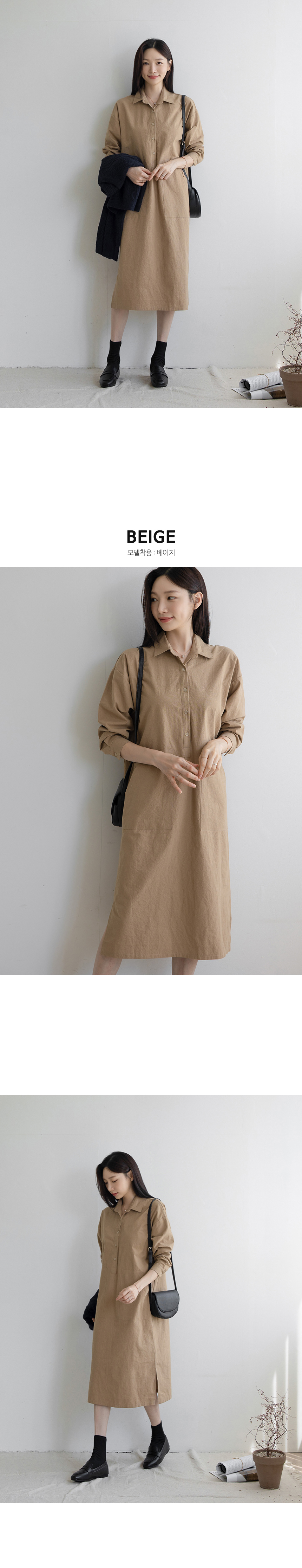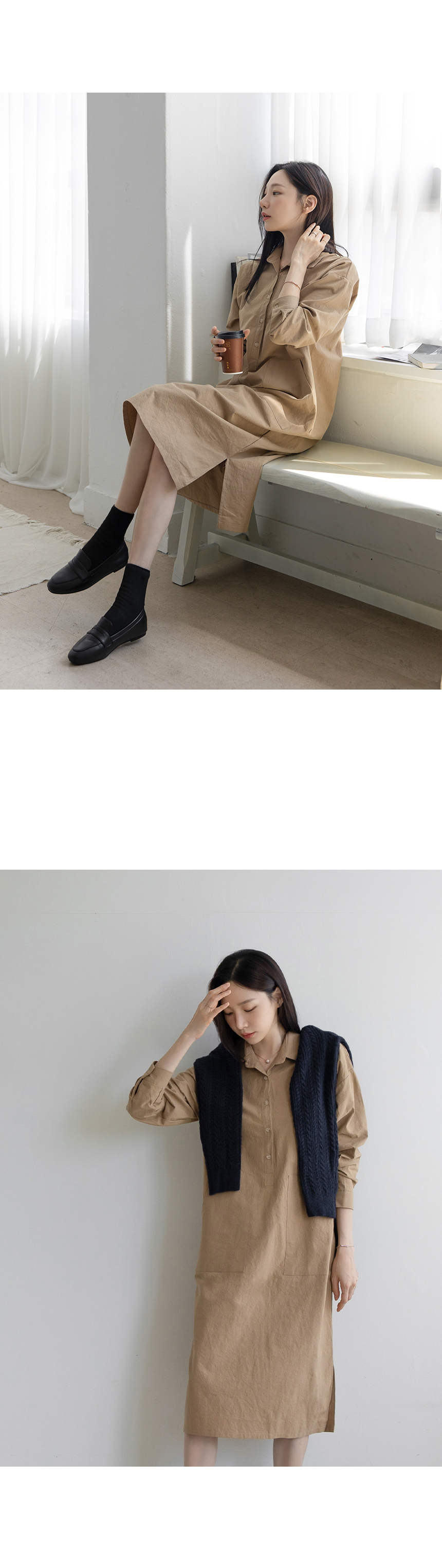 韓國製好啱返工斯文有插袋連身長裙(米/啡/藍)