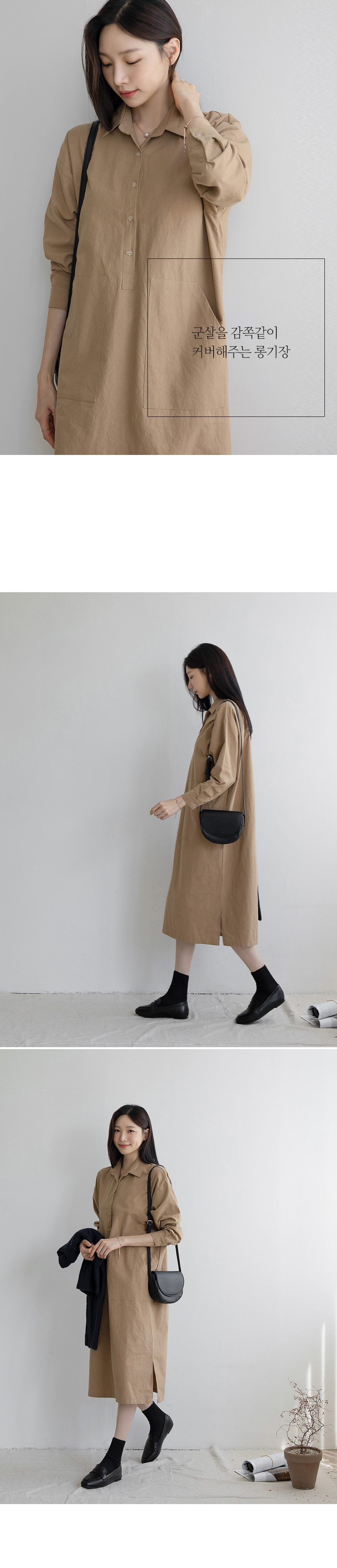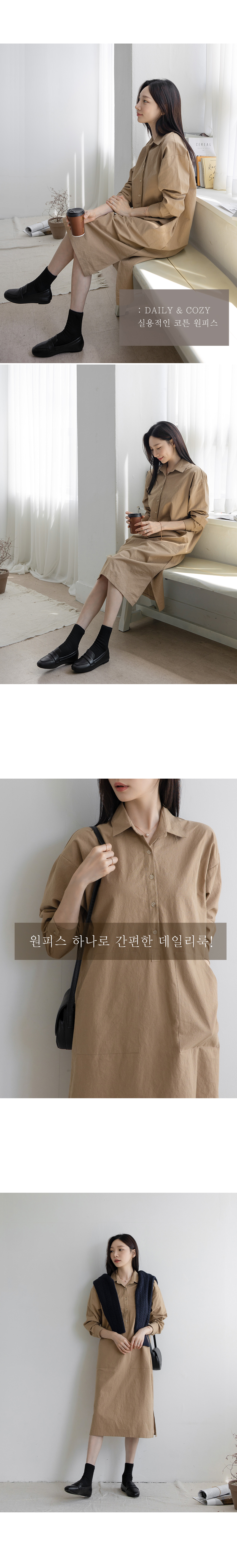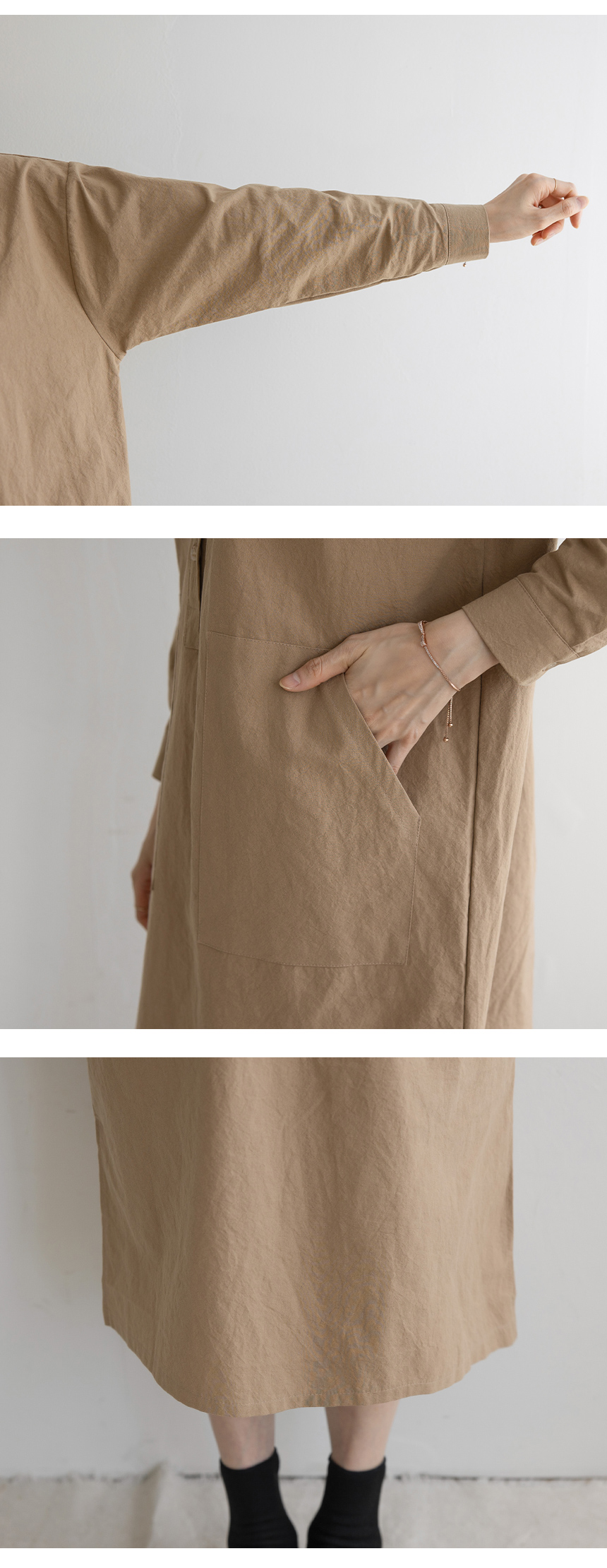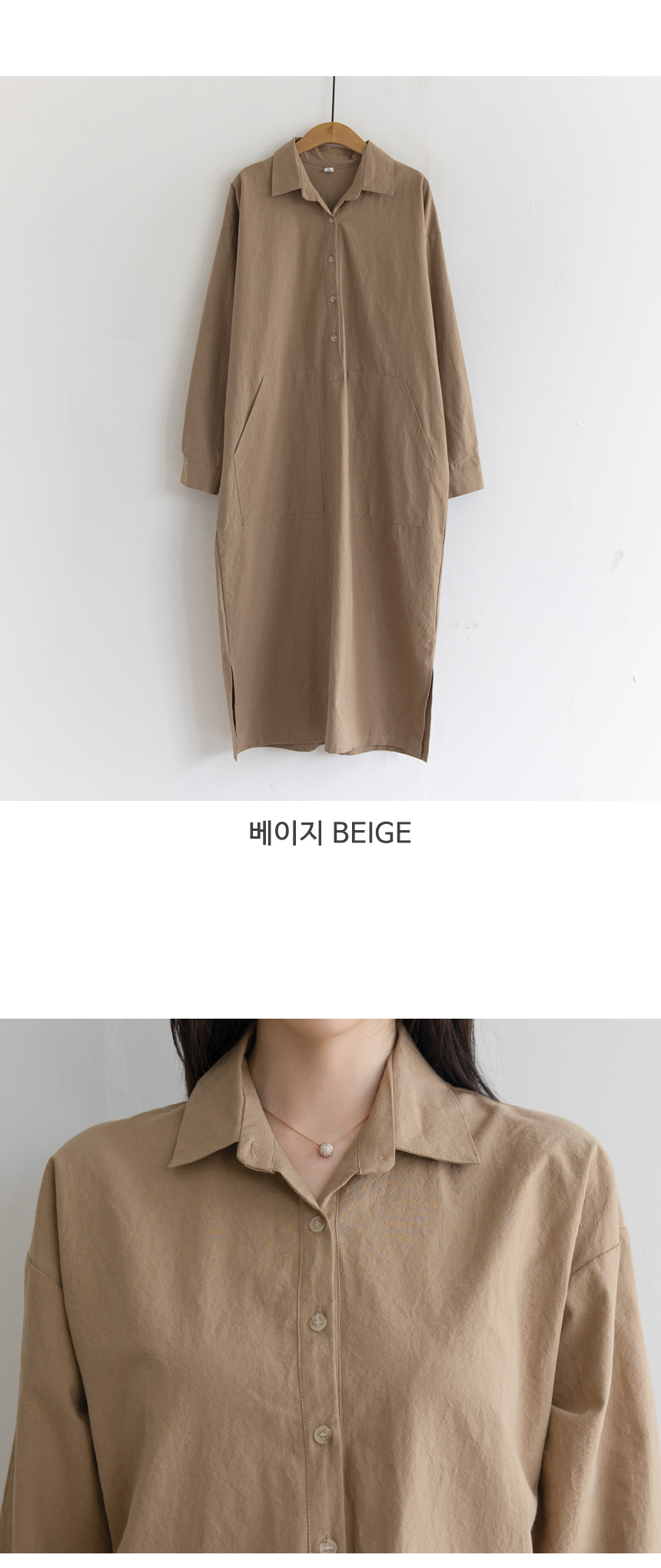 韓國製好啱返工斯文有插袋連身長裙(米/啡/藍)