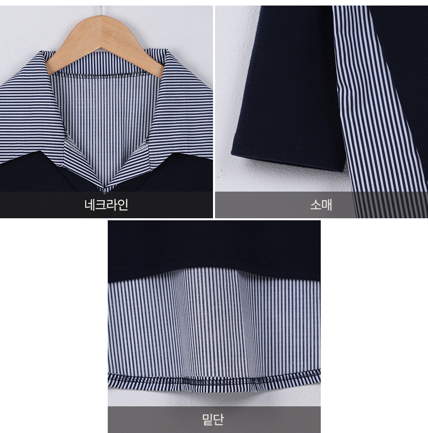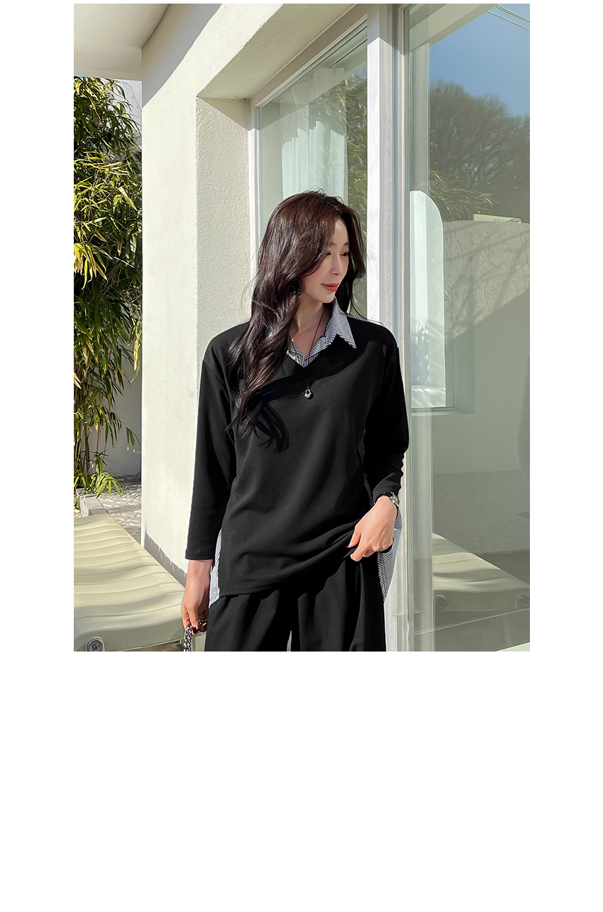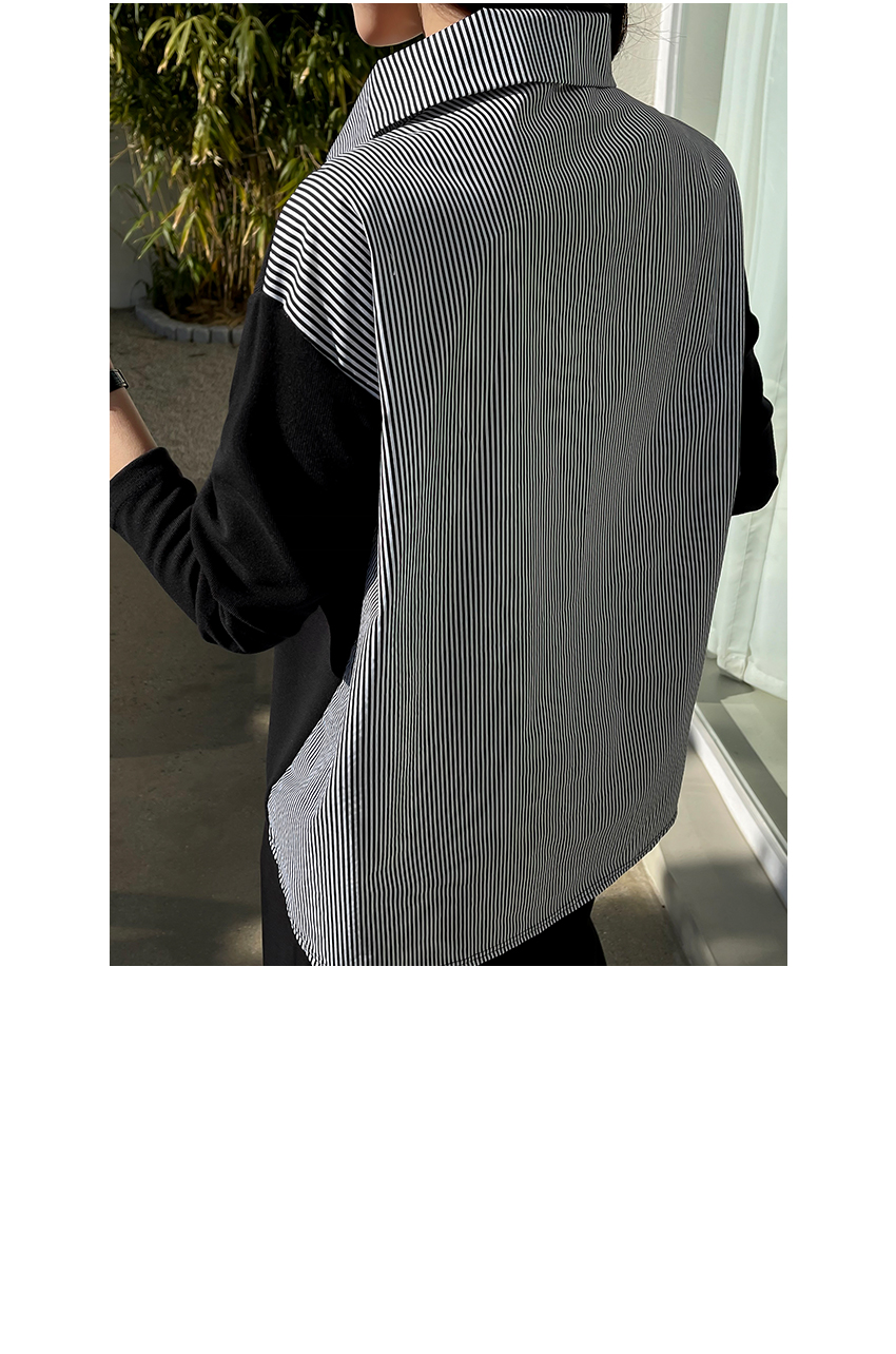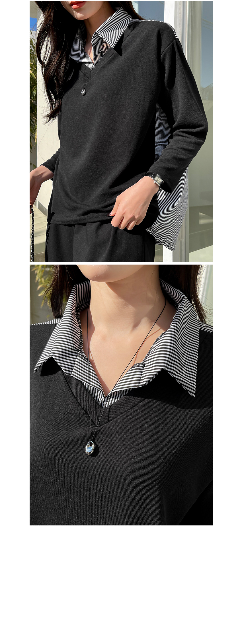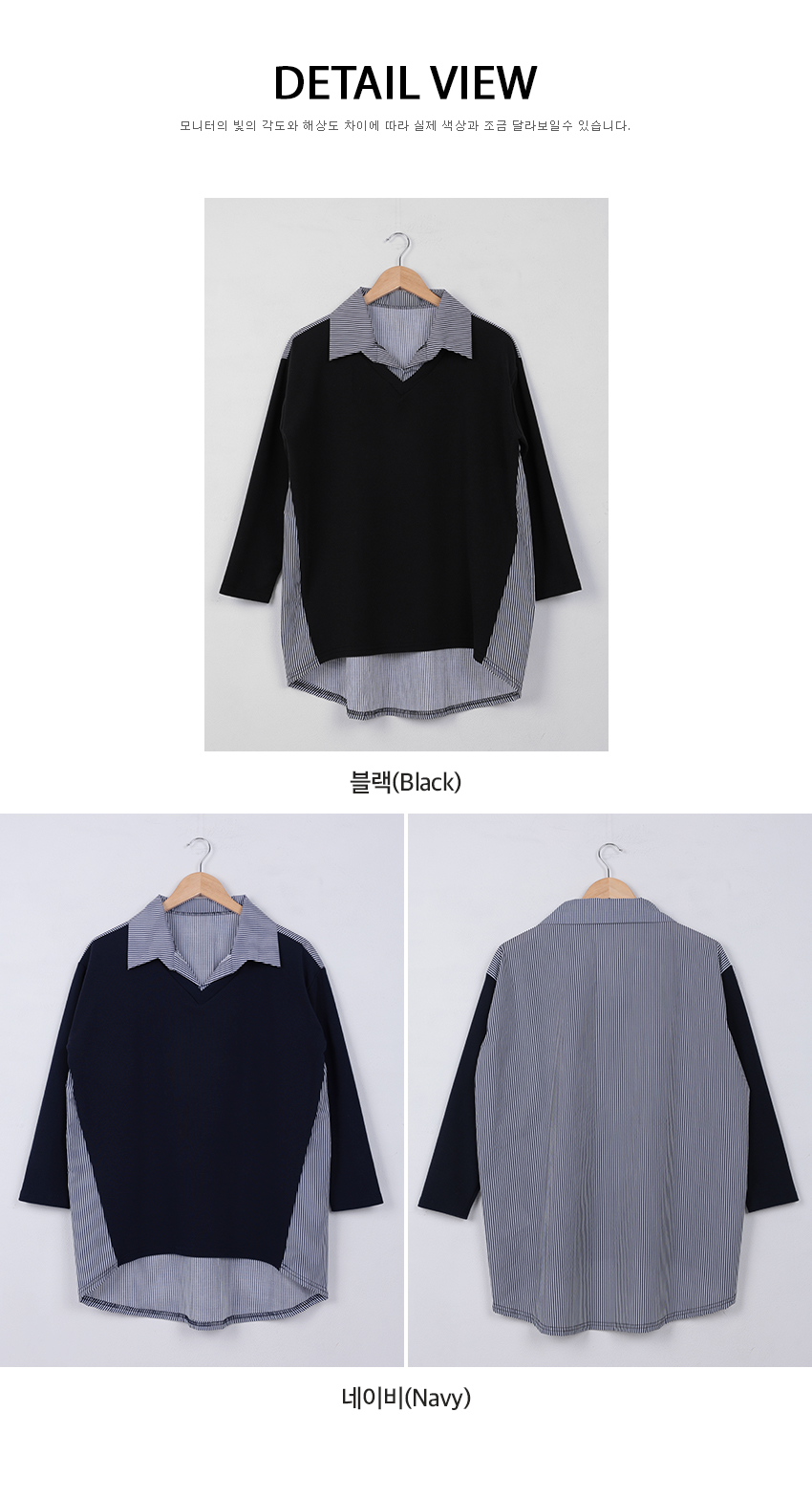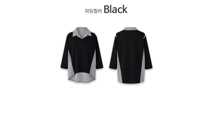 韓國製鬆身拼色斯文返工衫(黑/藍)