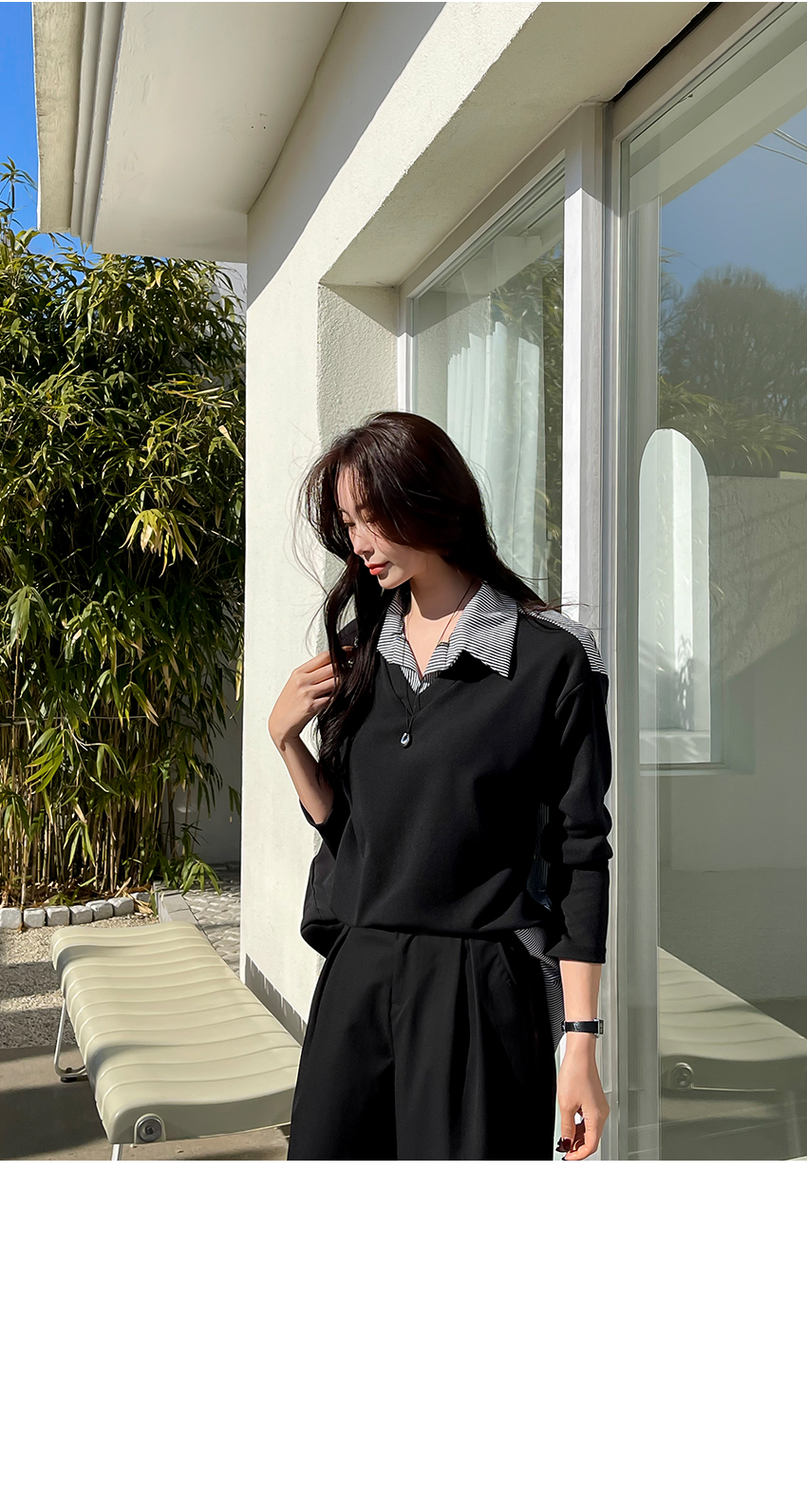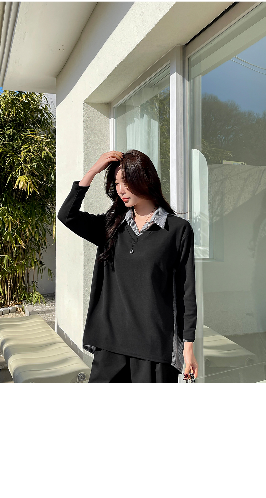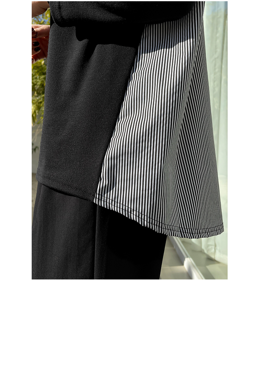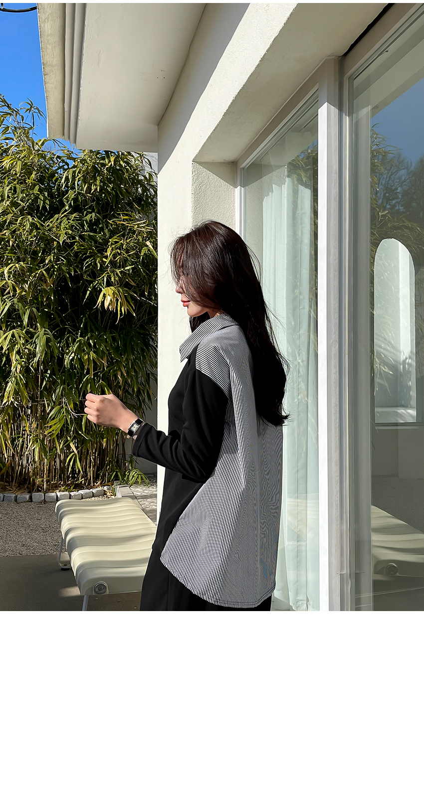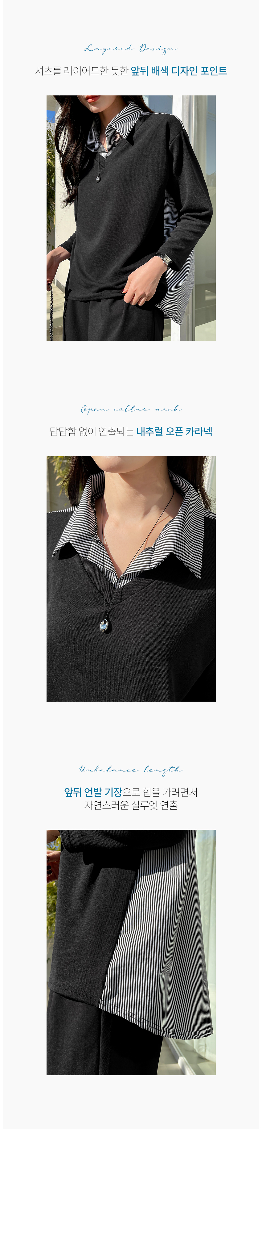 韓國製鬆身拼色斯文返工衫(黑/藍)