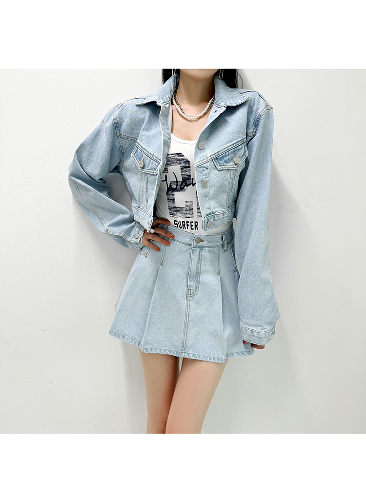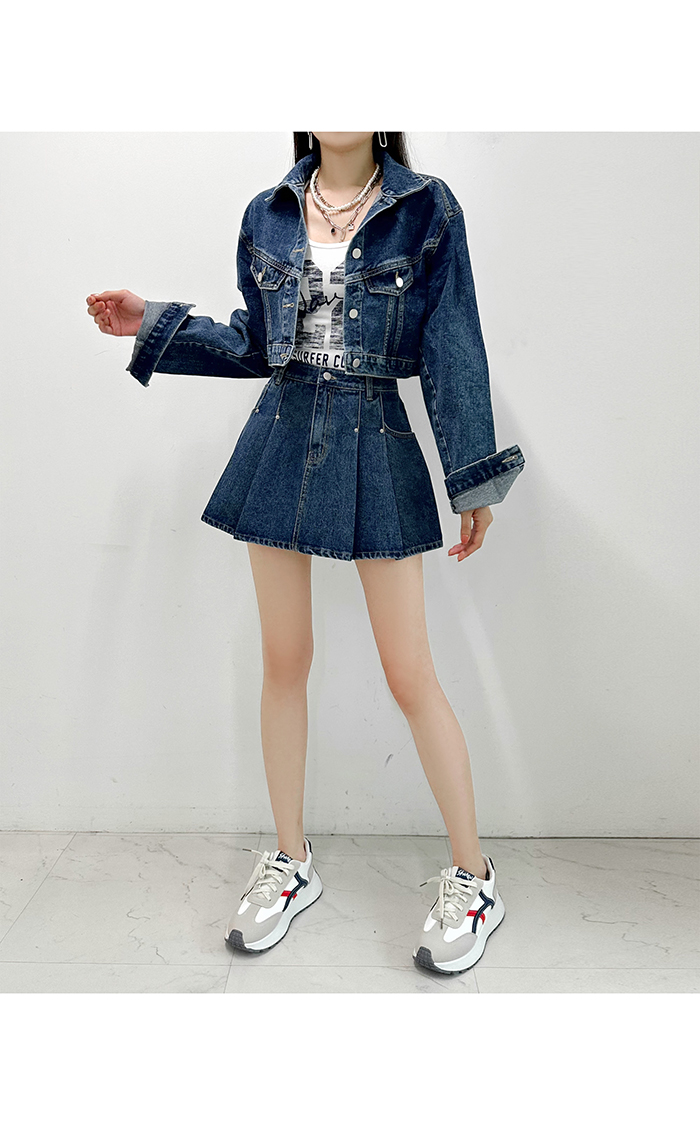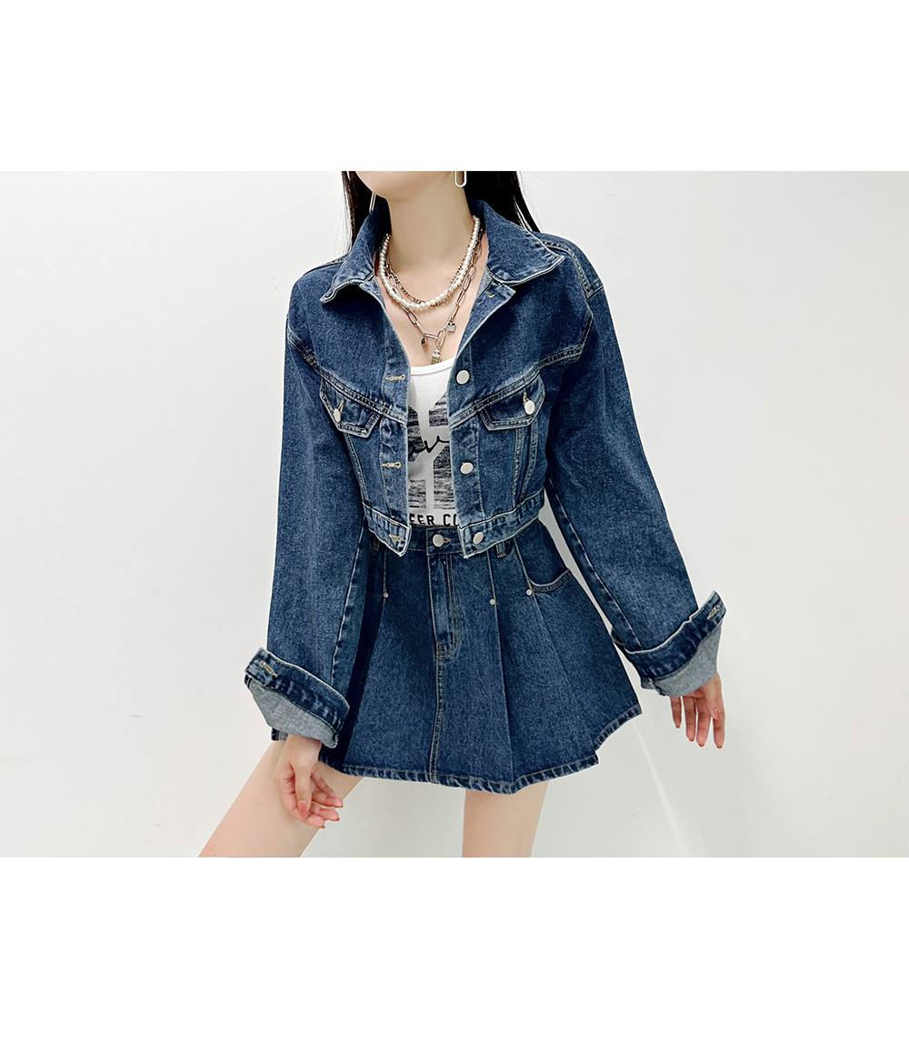 韓國製短身牛仔褸(深藍/淺藍)
