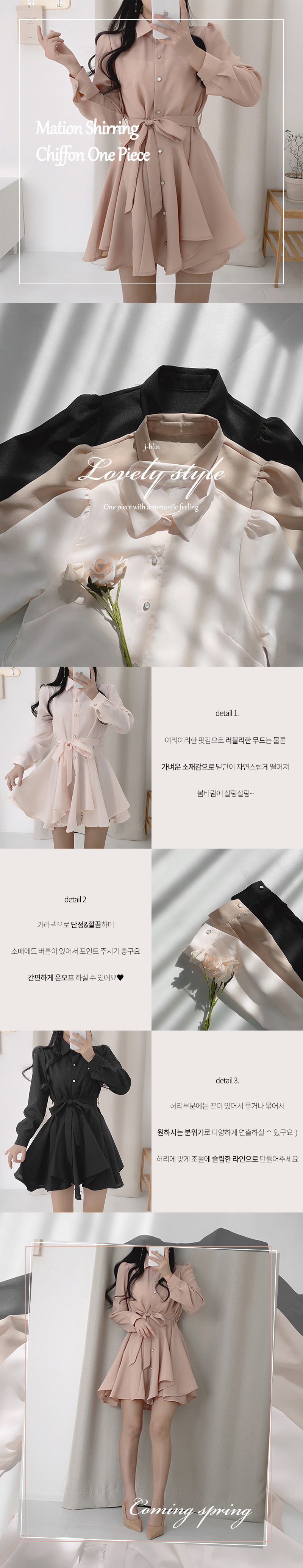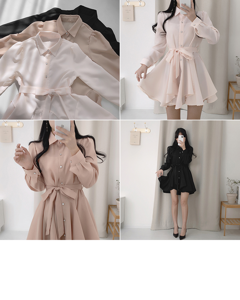 韓國製雪紡仙氣連身裙連腰帶(黑/奶油白/米)