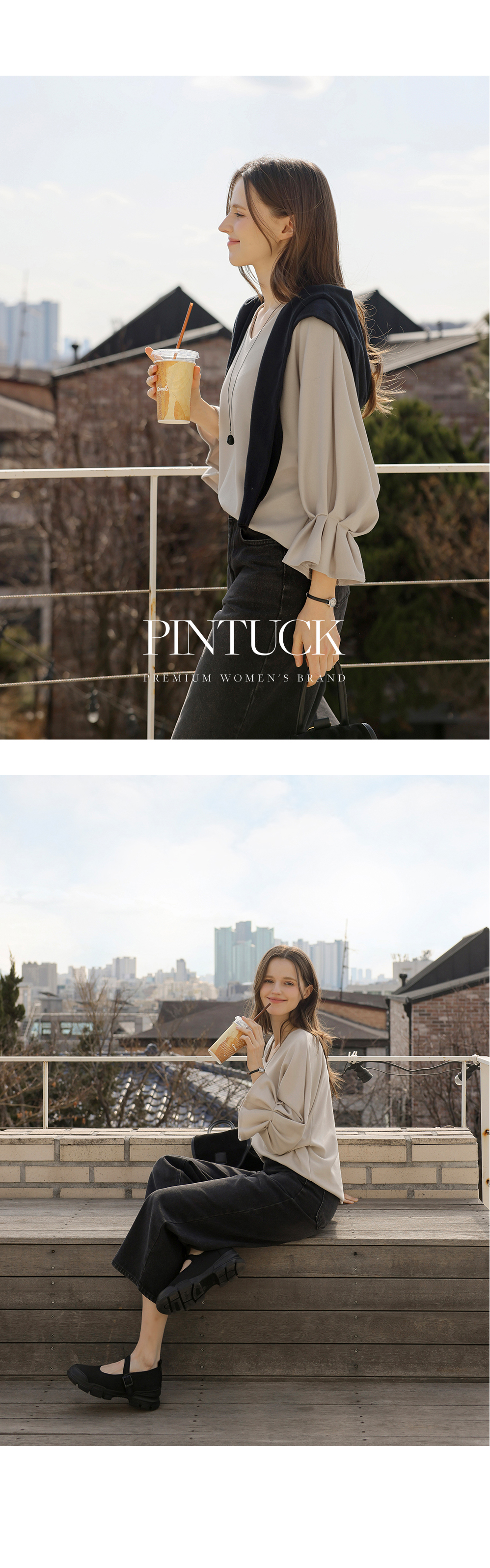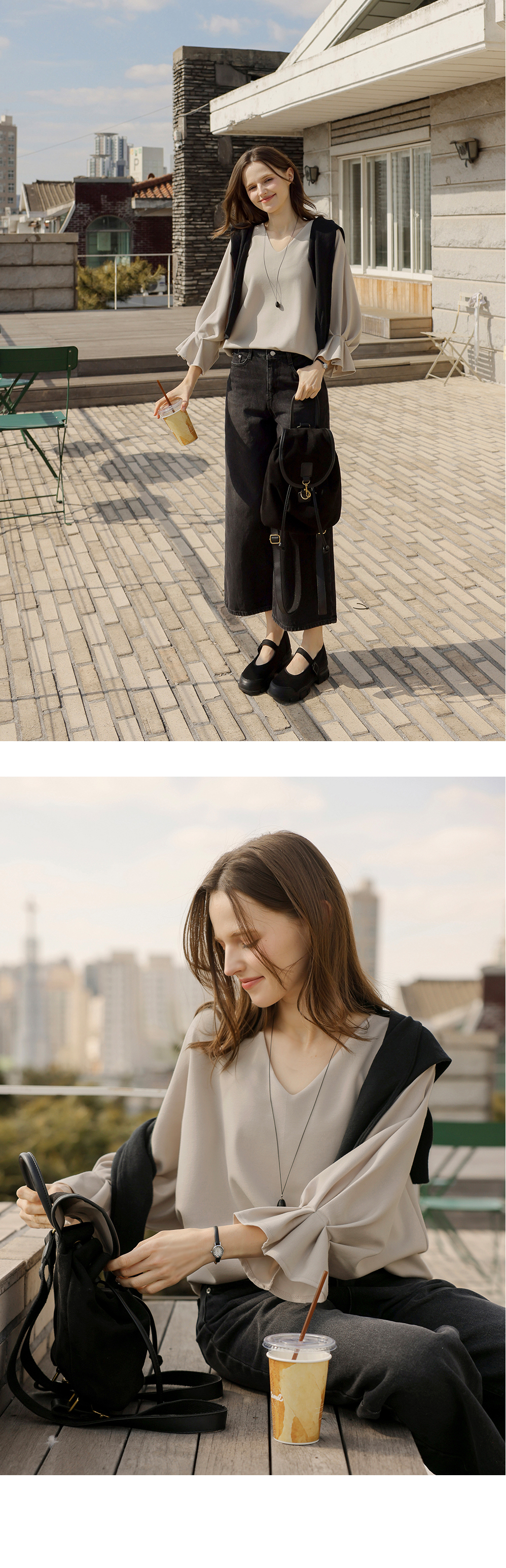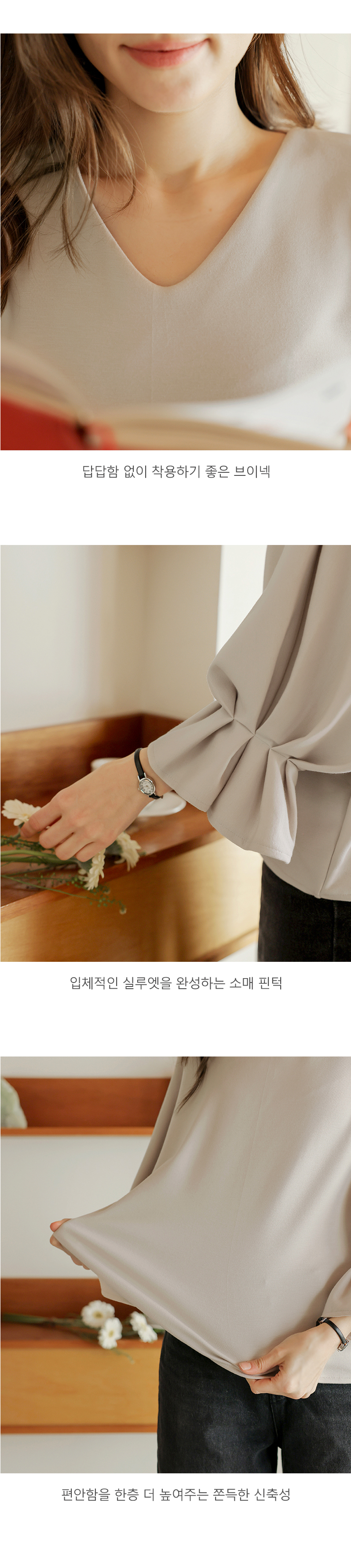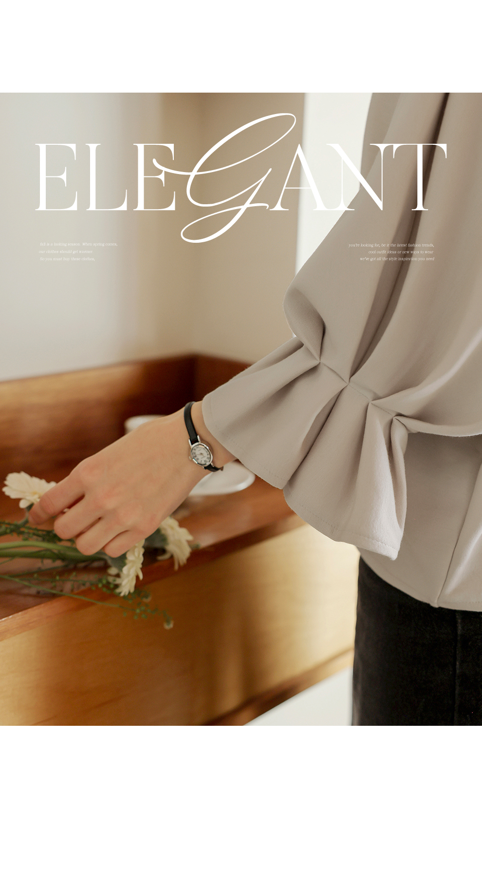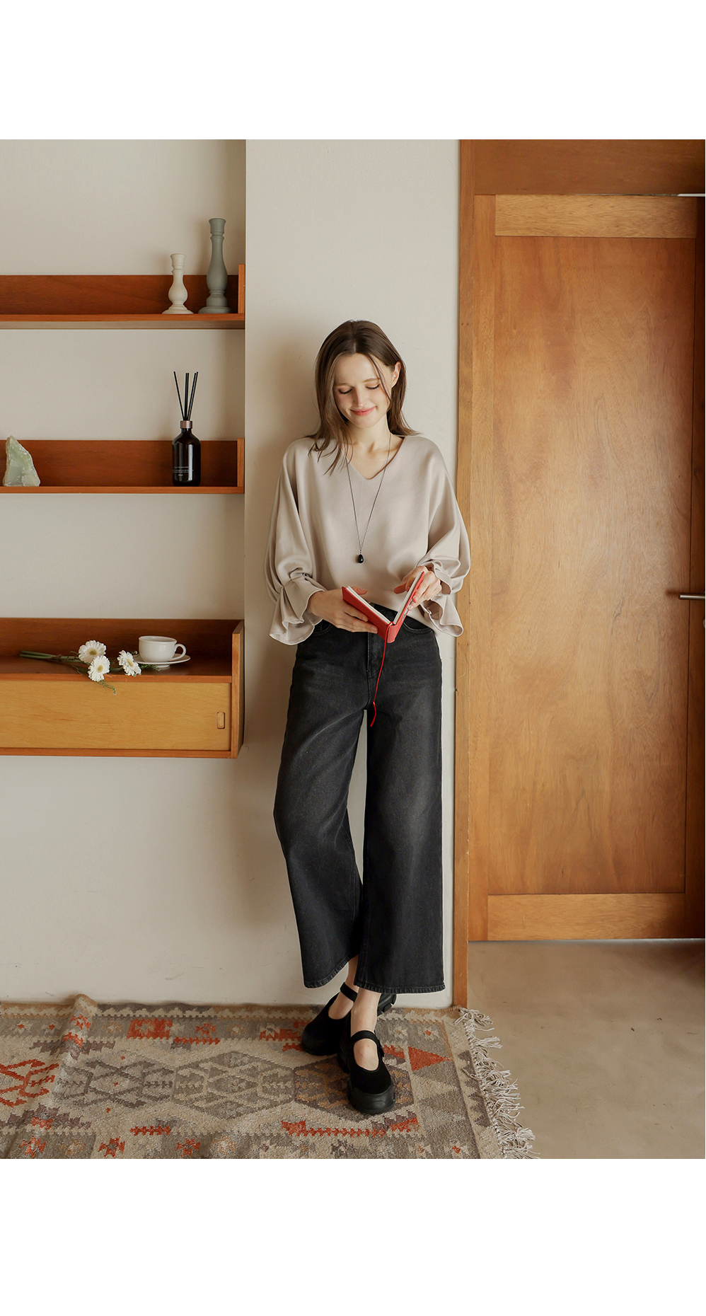 韓國製荷葉褶袖優雅V領長袖衫(黑/白/米/灰)