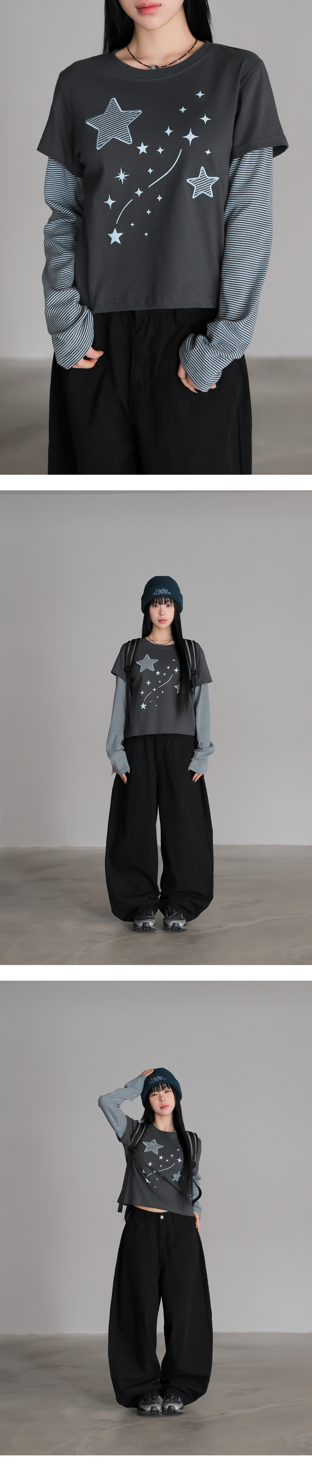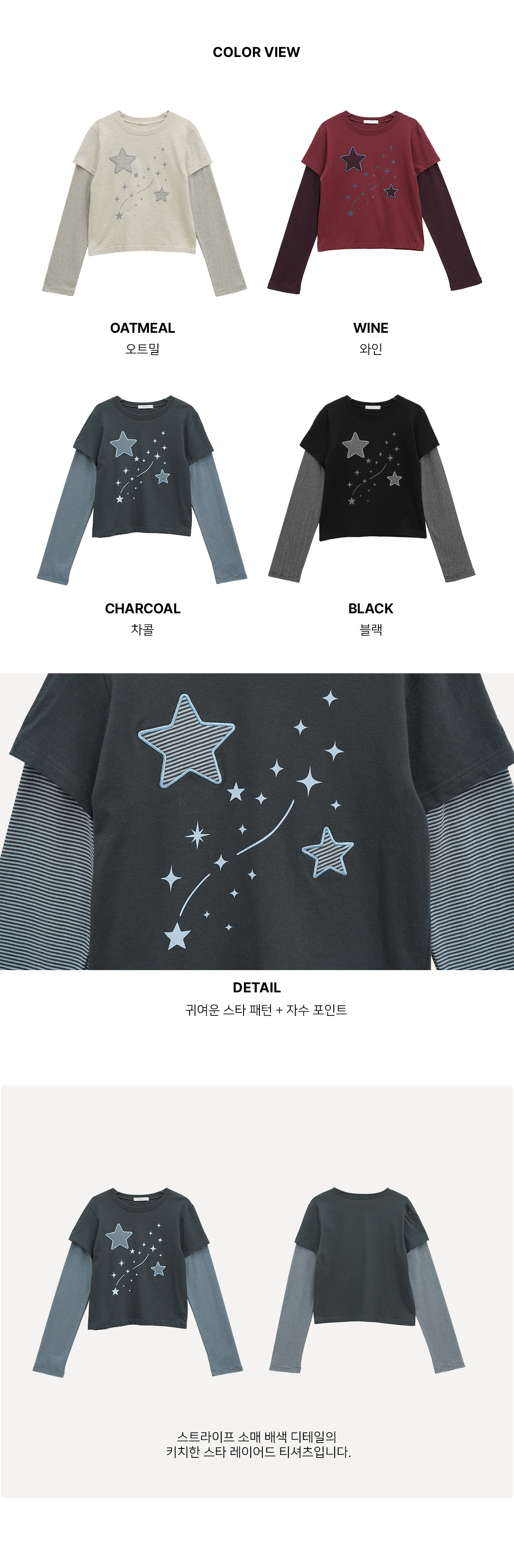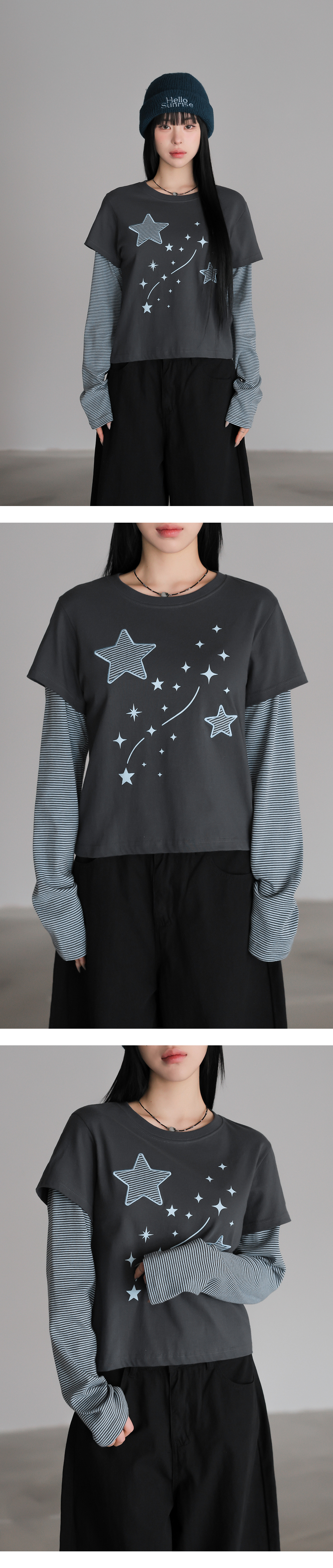 韓國製假兩件星星圖案長袖(黑/木炭/酒紅/燕麥色)