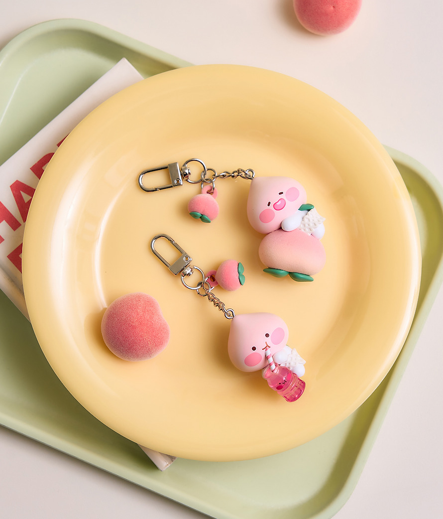 ✅超可愛,一個鎖匙扣有三粒桃:小桃子+Apeach倚靠住一粒大桃子,可愛度翻三倍~