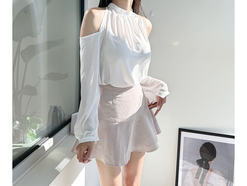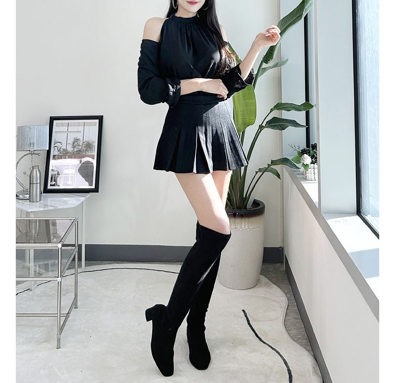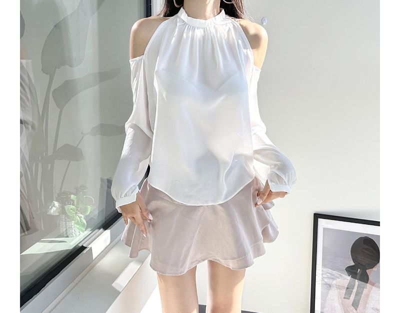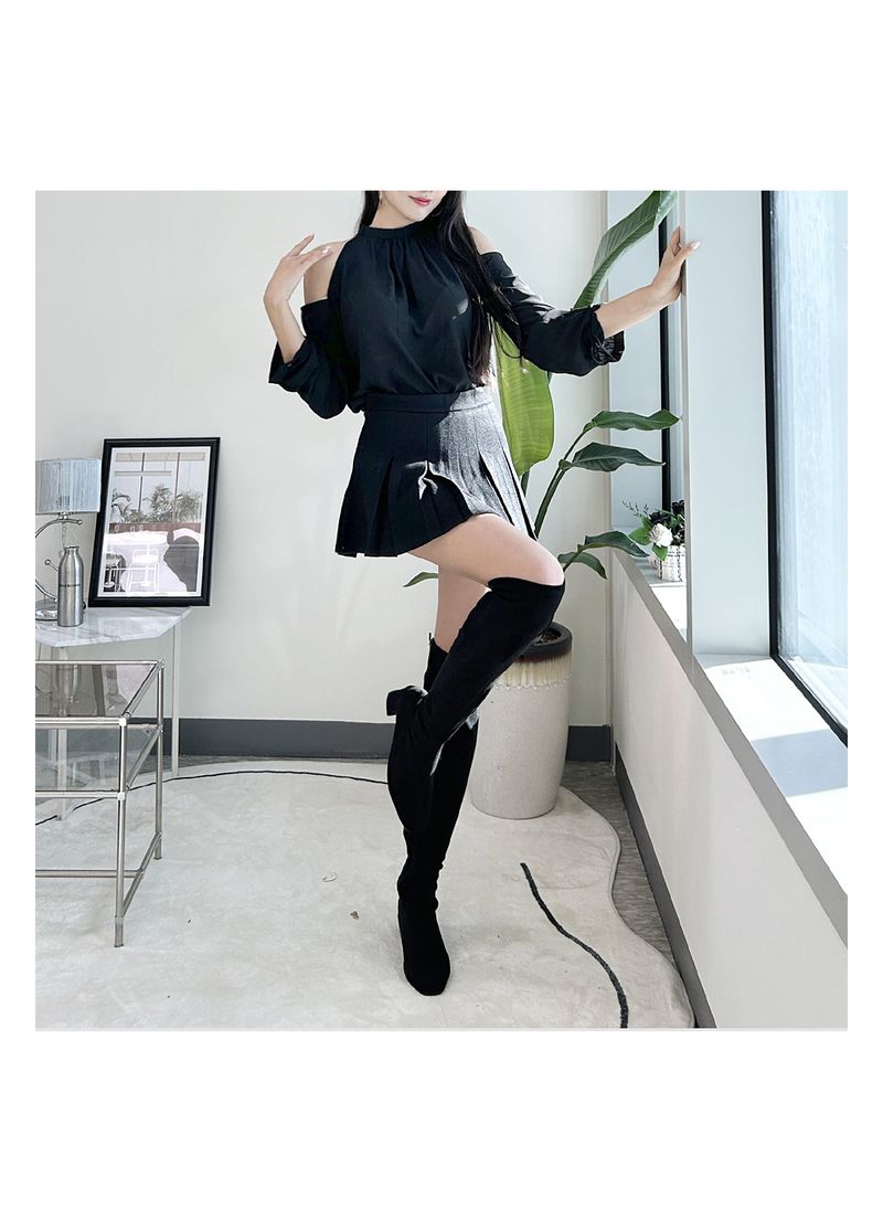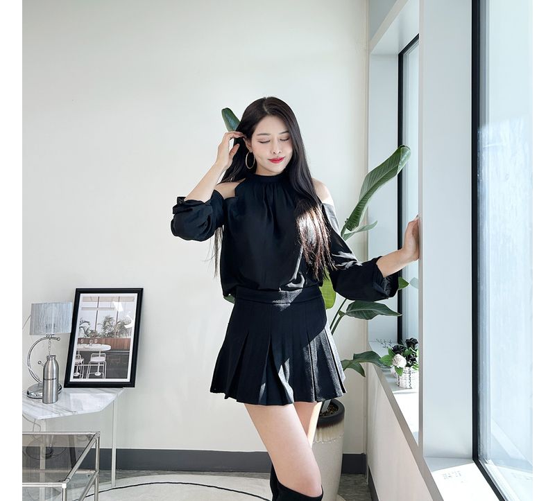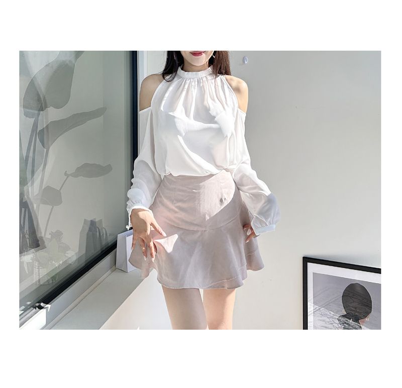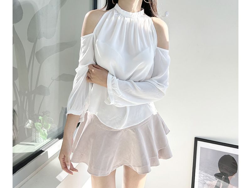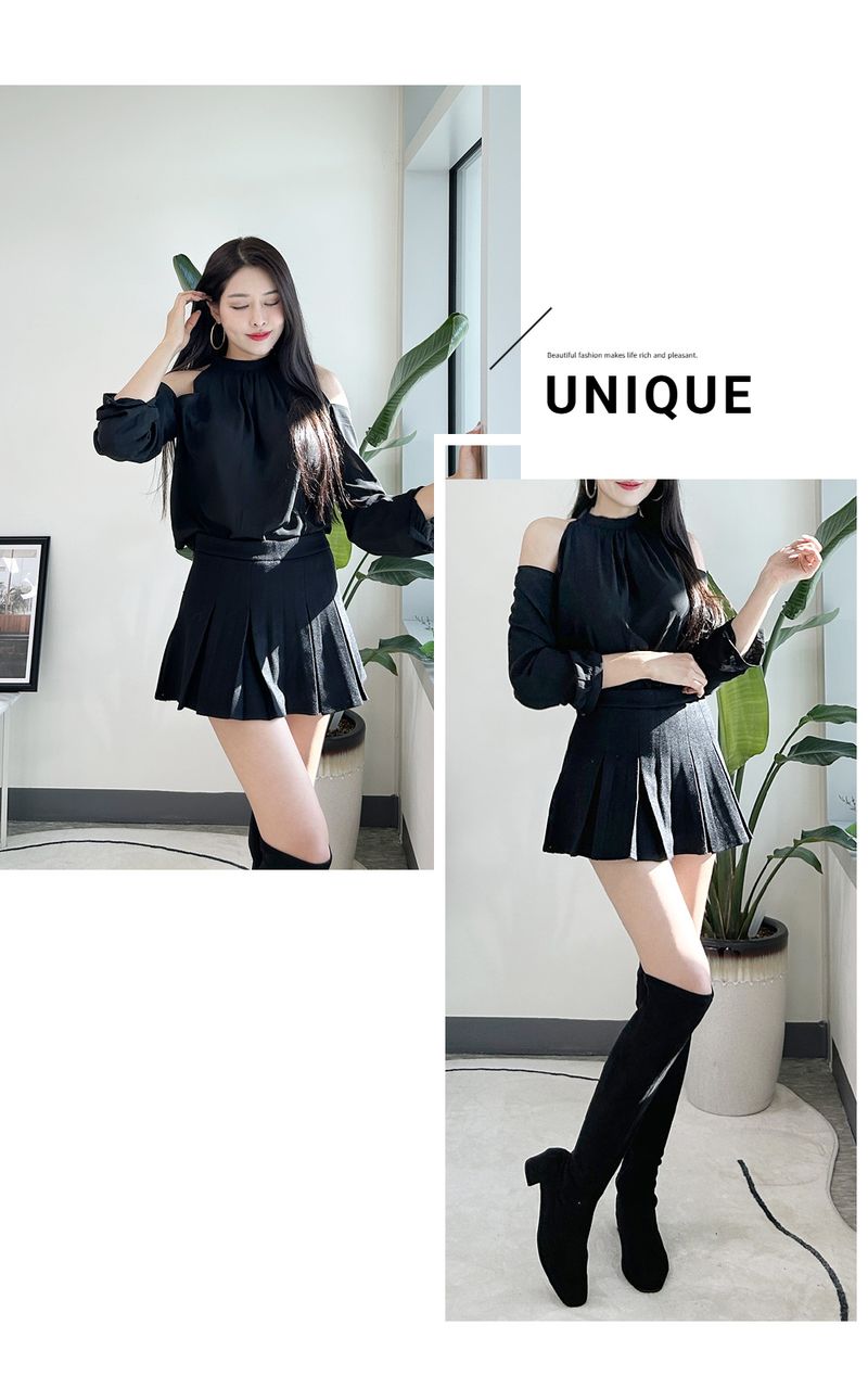 韓國製勁靚掛頸露肩上衣(黑/白)